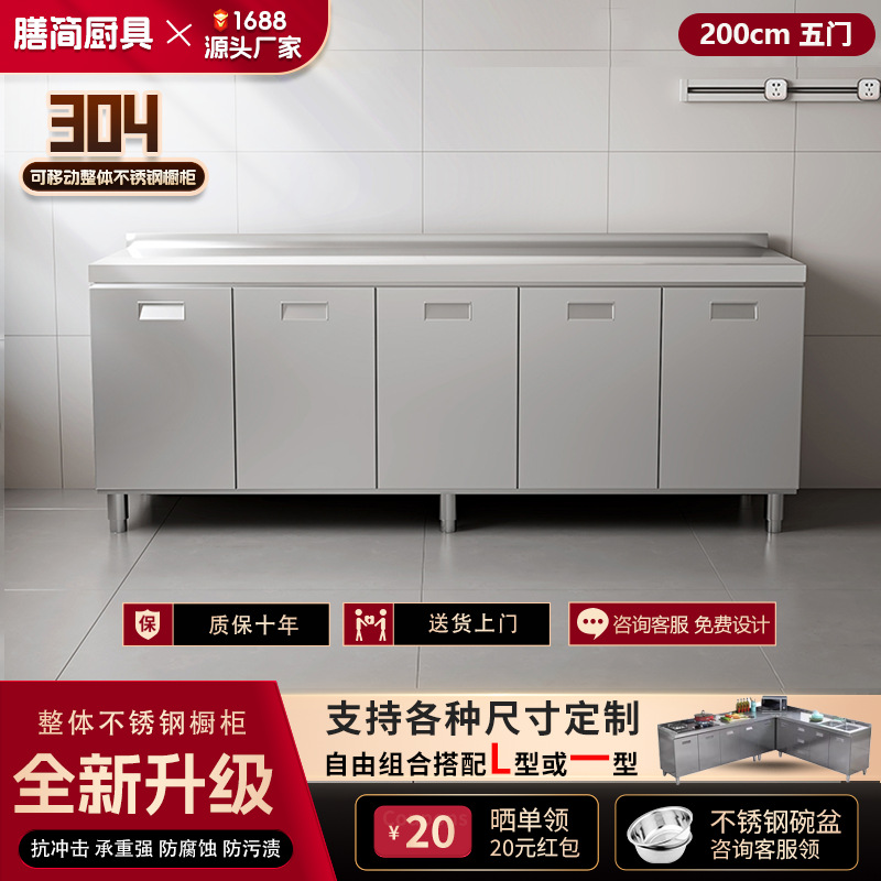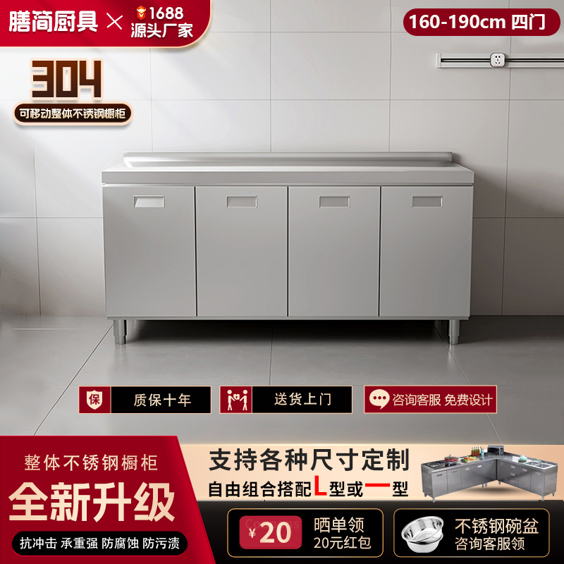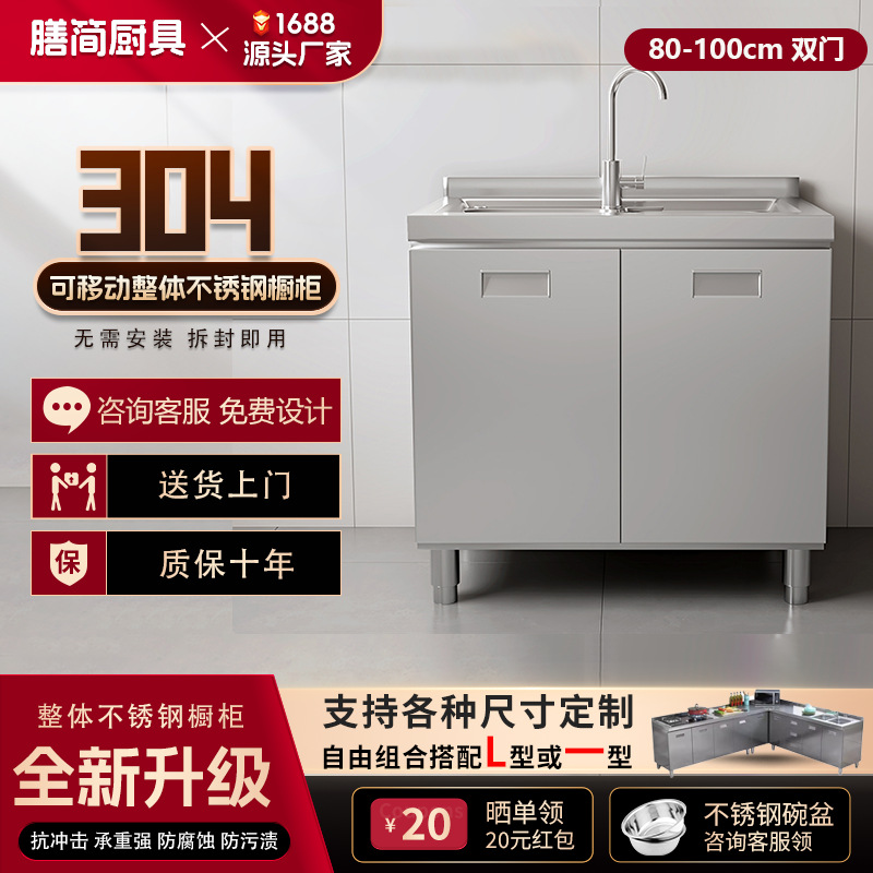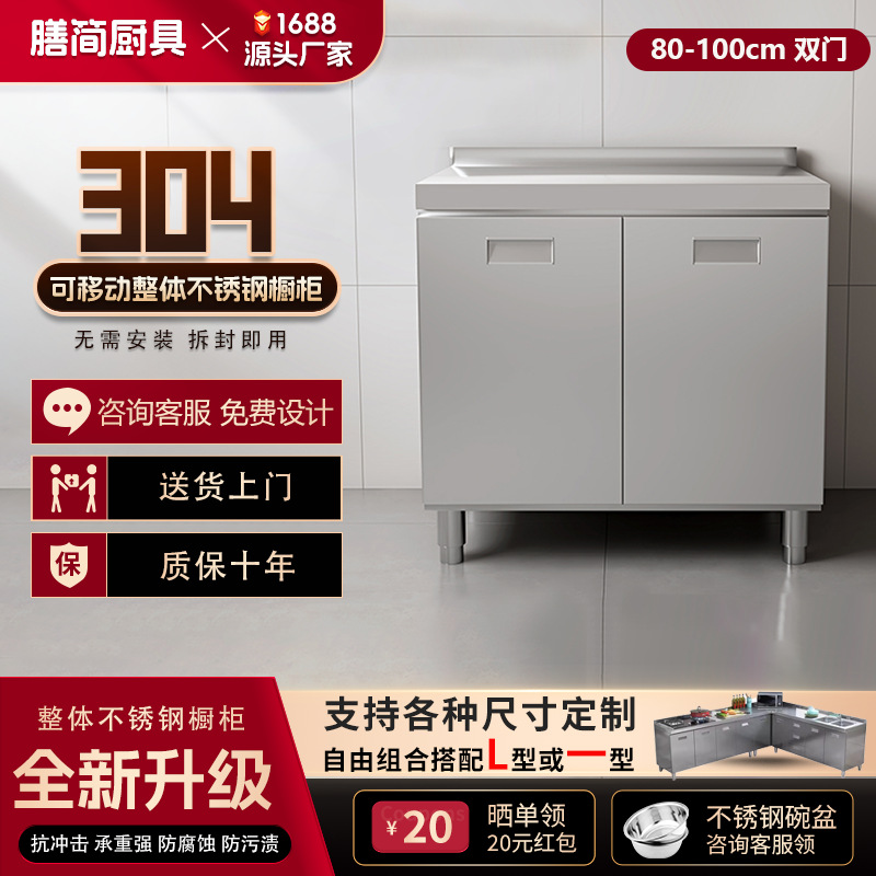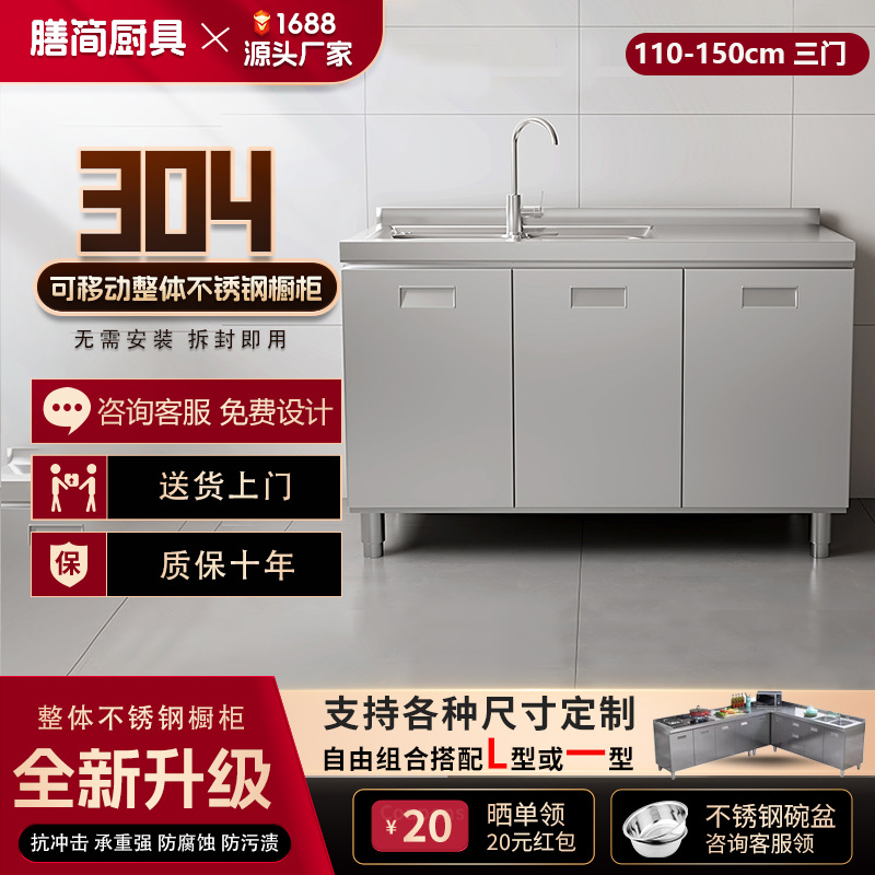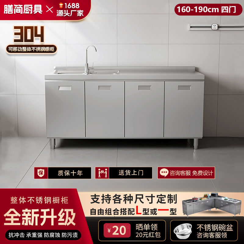 304 통합 모든 스테인레스 스틸 주방 캐비닛 간단한 스토브 통합 스토리지 찬장 가정용 작은 아파트스토어 가기