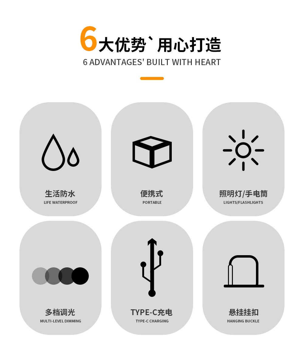 야외 충전식 손전등, 편리한 조명, 캠핑 텐트 조명, 비상 탐조등, 낚시 조명, 고휘도 작업 조명스토어 가기