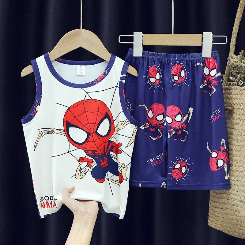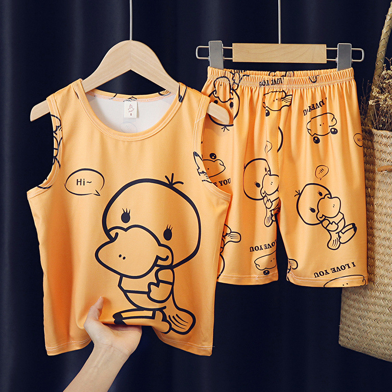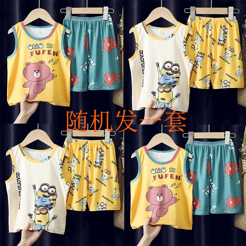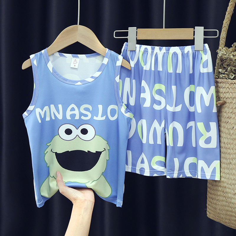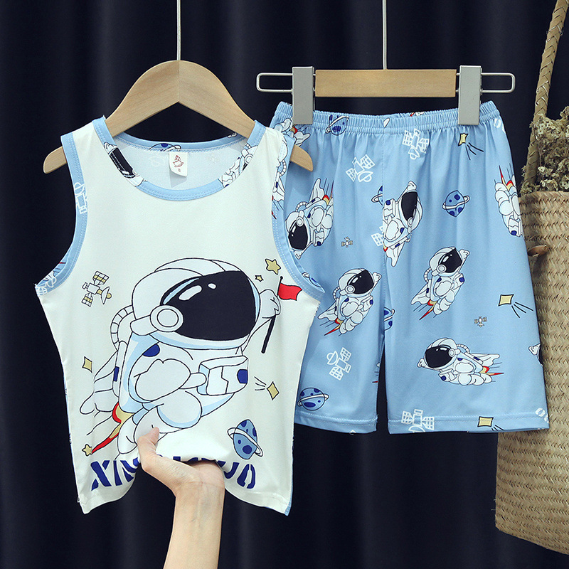 소년, 아기, 어린이를 위한 여름 어린이 잠옷, 중대형 어린이를 위한 민소매 조끼, 초등학생 가정복 세트스토어 가기