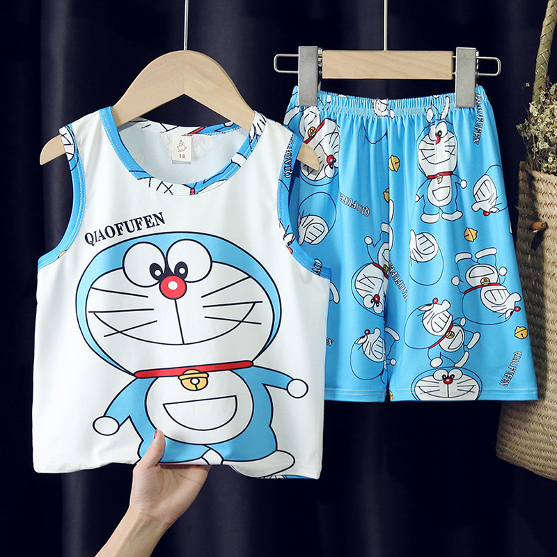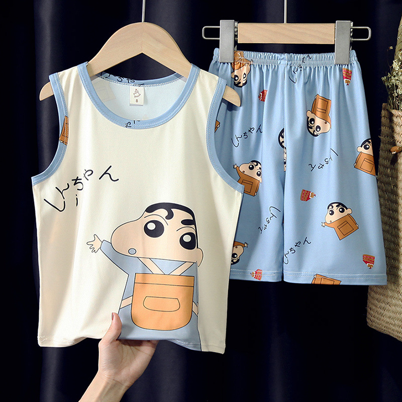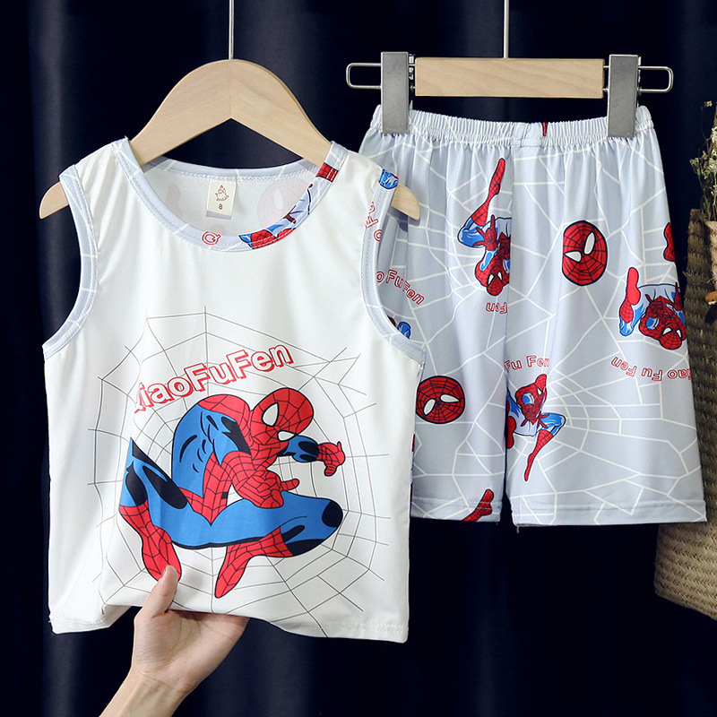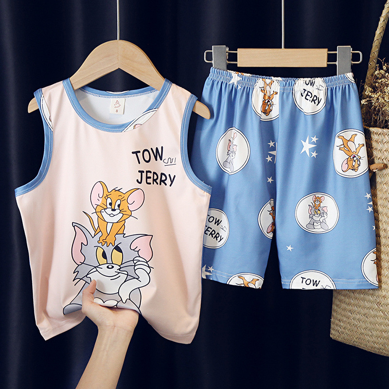 소년, 아기, 어린이를 위한 여름 어린이 잠옷, 중대형 어린이를 위한 민소매 조끼, 초등학생 가정복 세트
