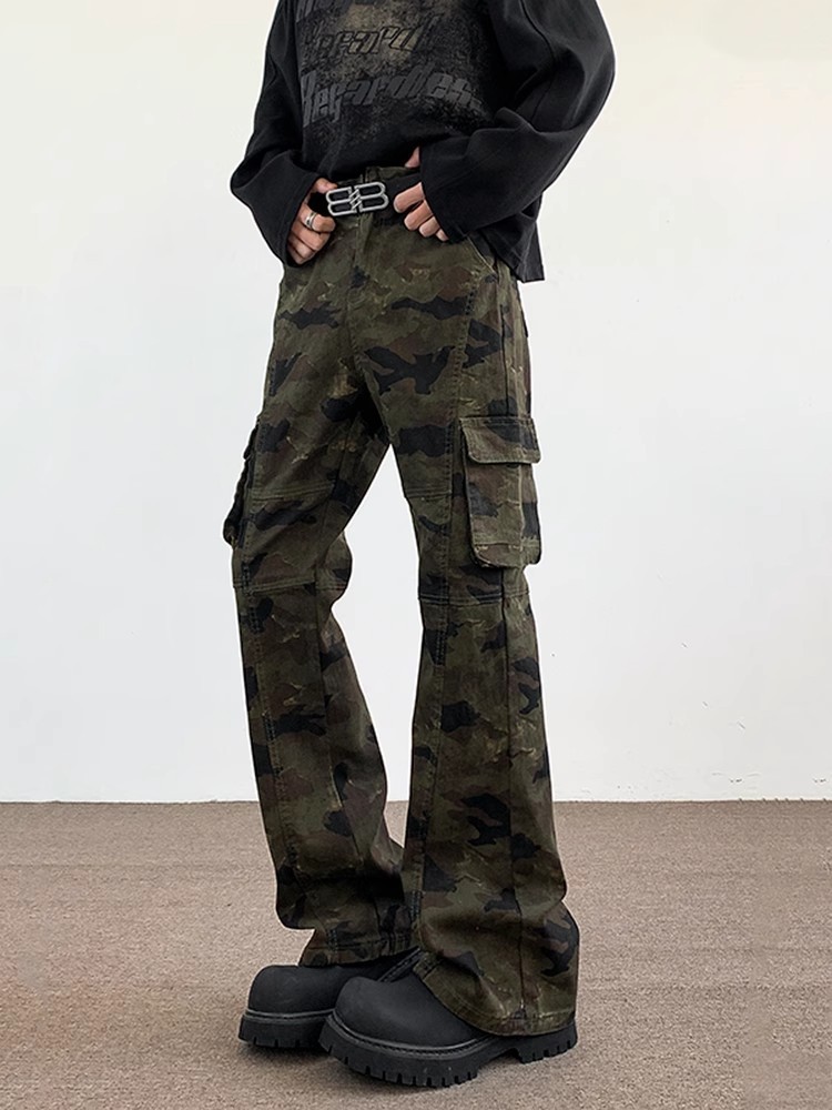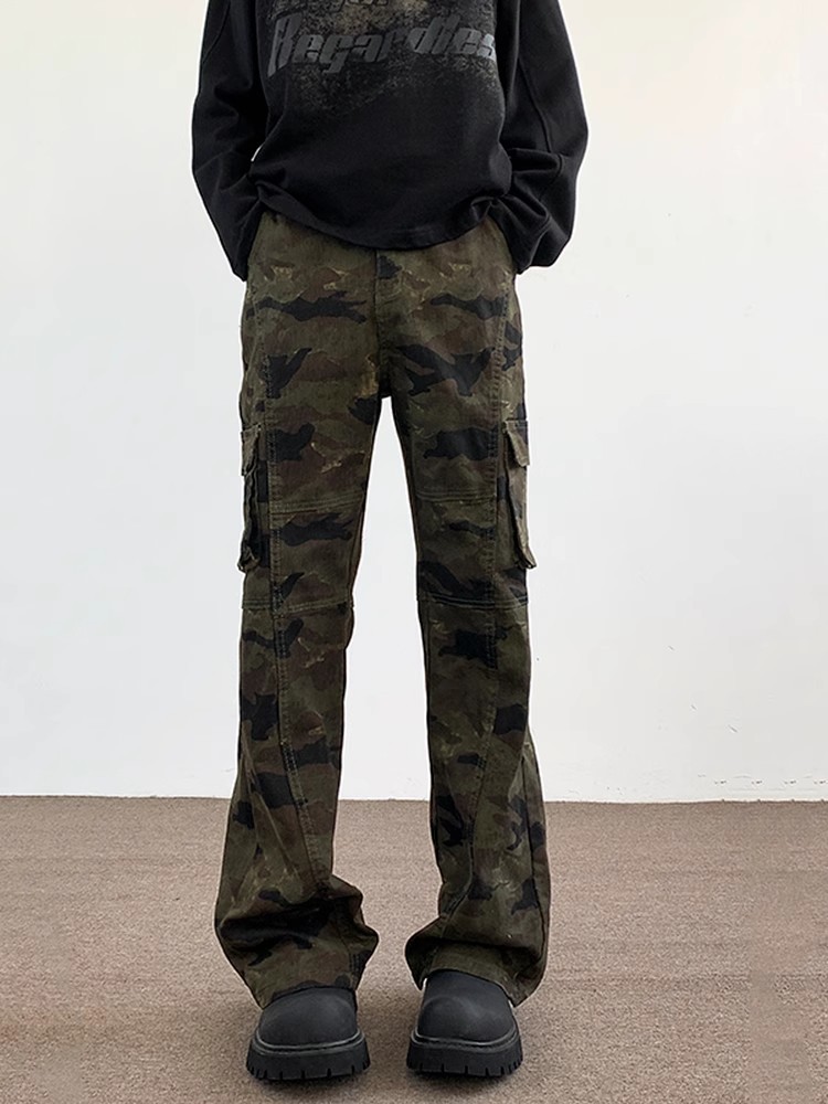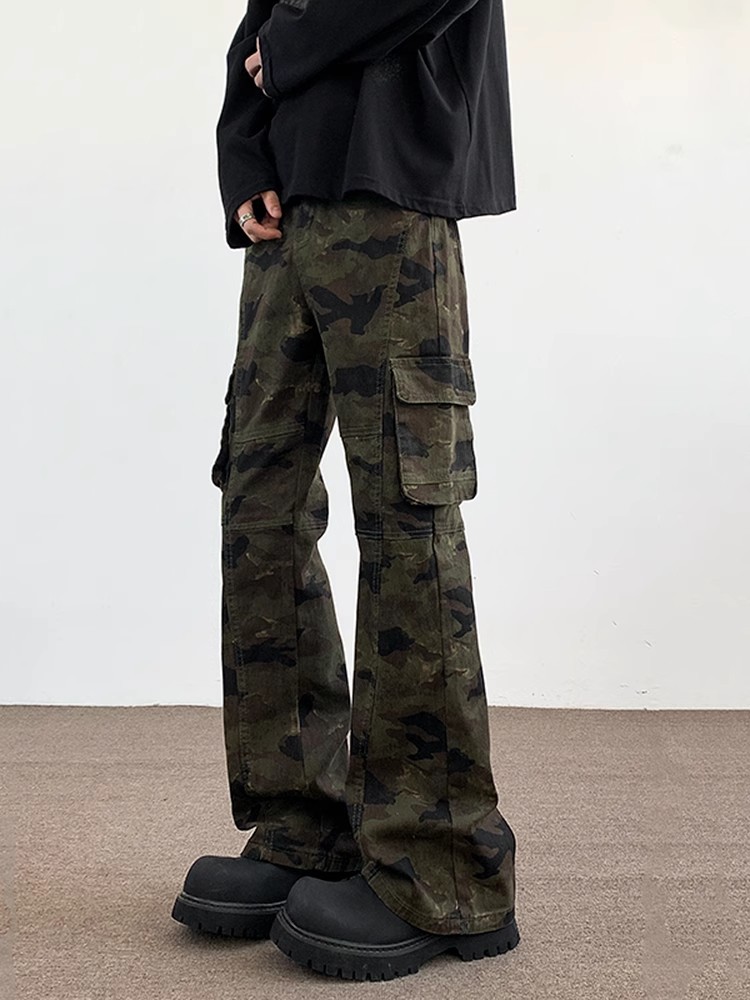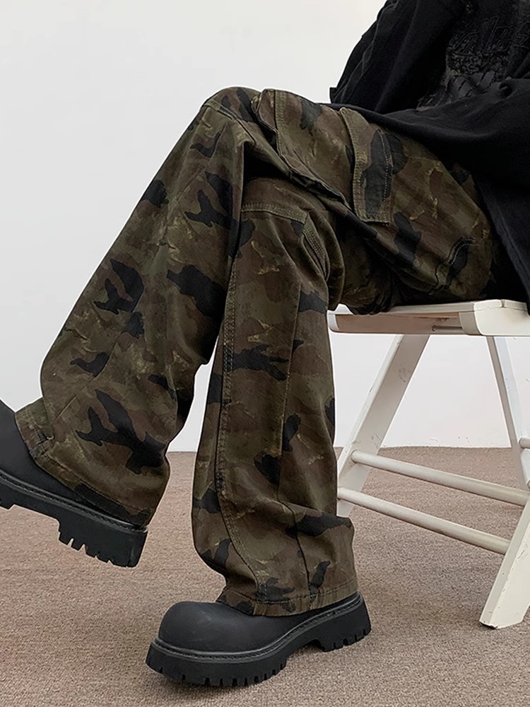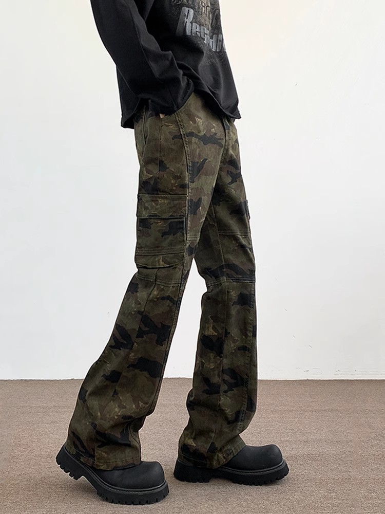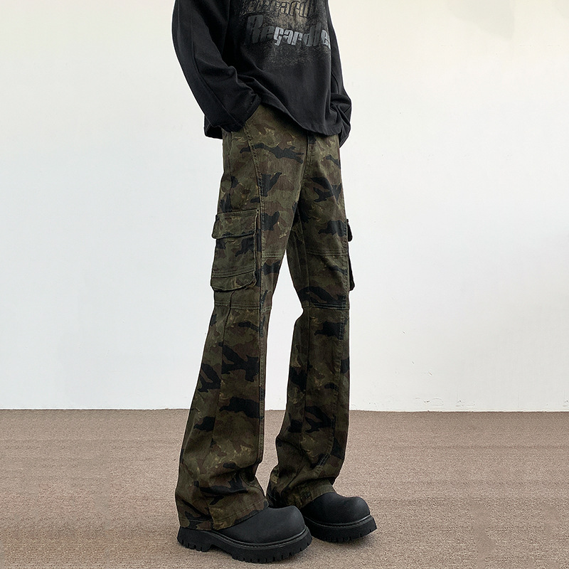 봄 아메리칸 하이 스트리트 마이크로 레그 슬리밍 카모 작업복 스트레치 슬림 청바지 남성과 여성을위한 복고풍 캐주얼 바지스토어 가기