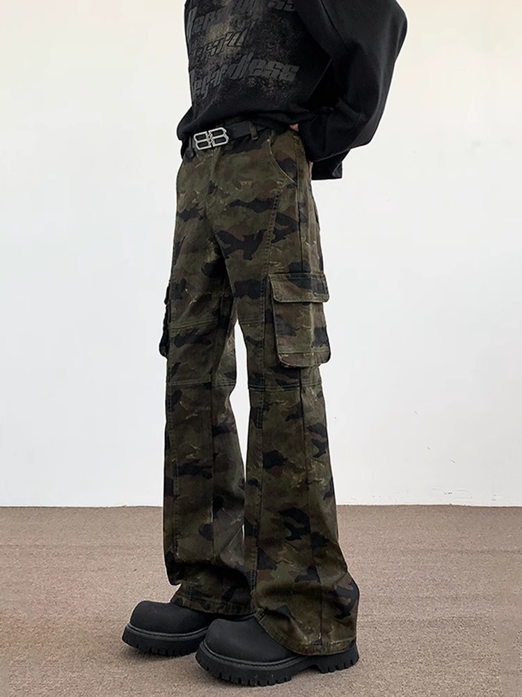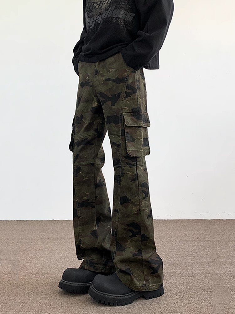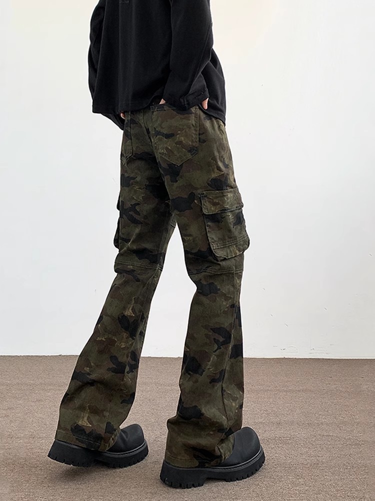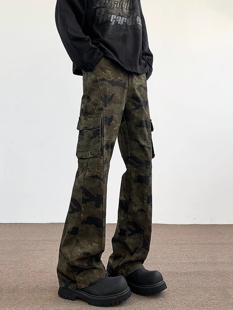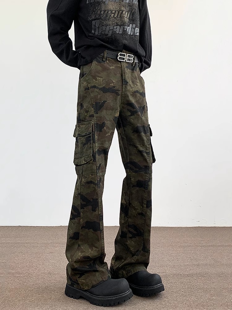 봄 아메리칸 하이 스트리트 마이크로 레그 슬리밍 카모 작업복 스트레치 슬림 청바지 남성과 여성을위한 복고풍 캐주얼 바지스토어 가기