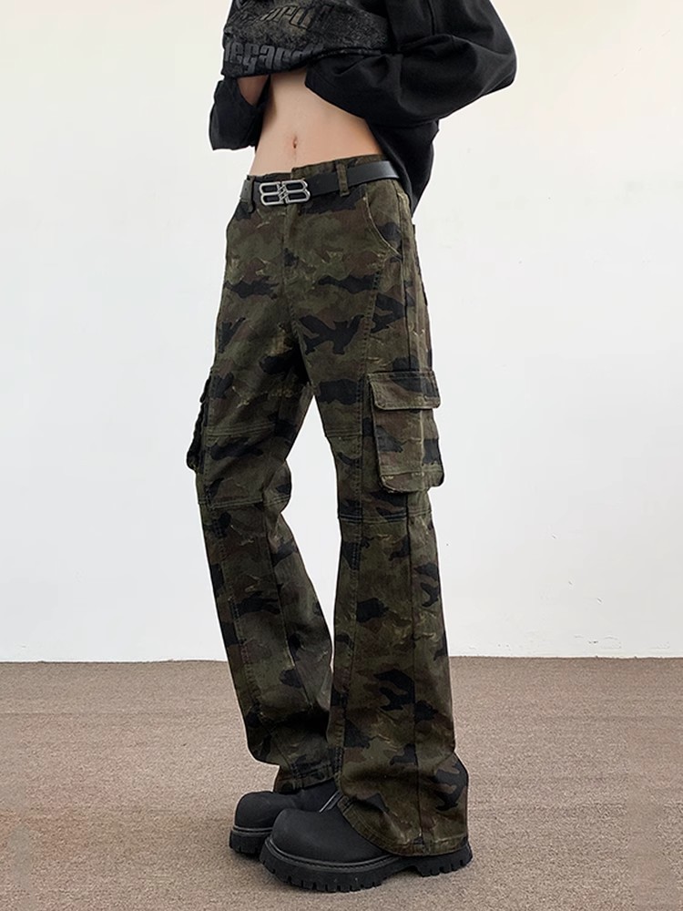 봄 아메리칸 하이 스트리트 마이크로 레그 슬리밍 카모 작업복 스트레치 슬림 청바지 남성과 여성을위한 복고풍 캐주얼 바지