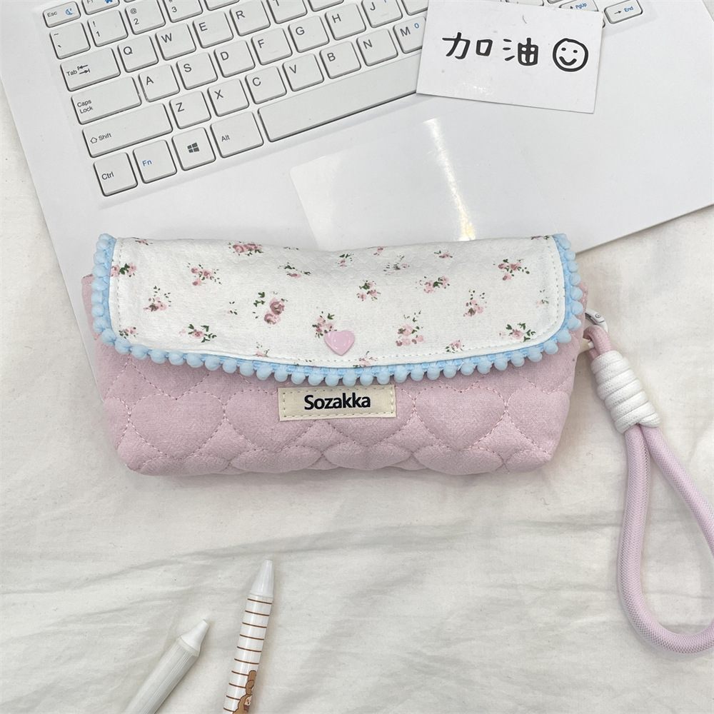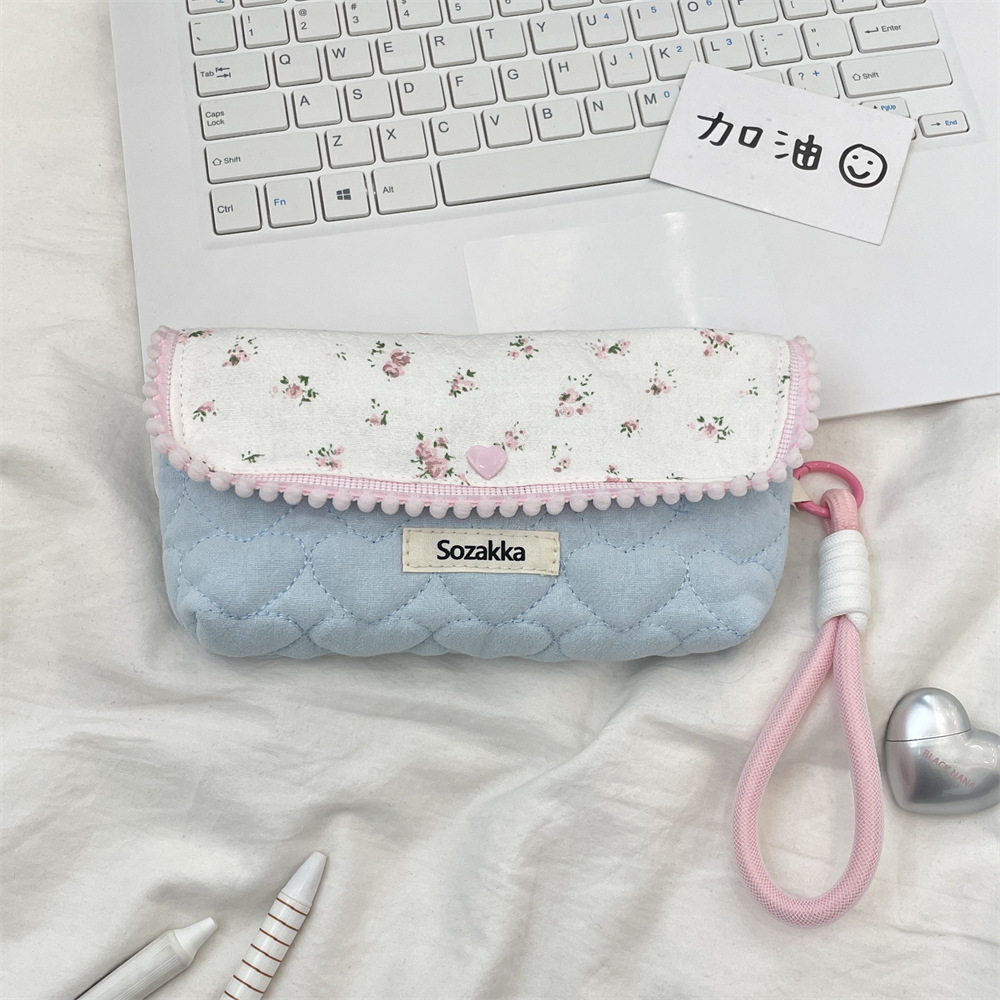 5412 한국 꽃 연필 케이스 보관 가방 높은 값 인 스타일 대용량 학생 문구 상자 다기능