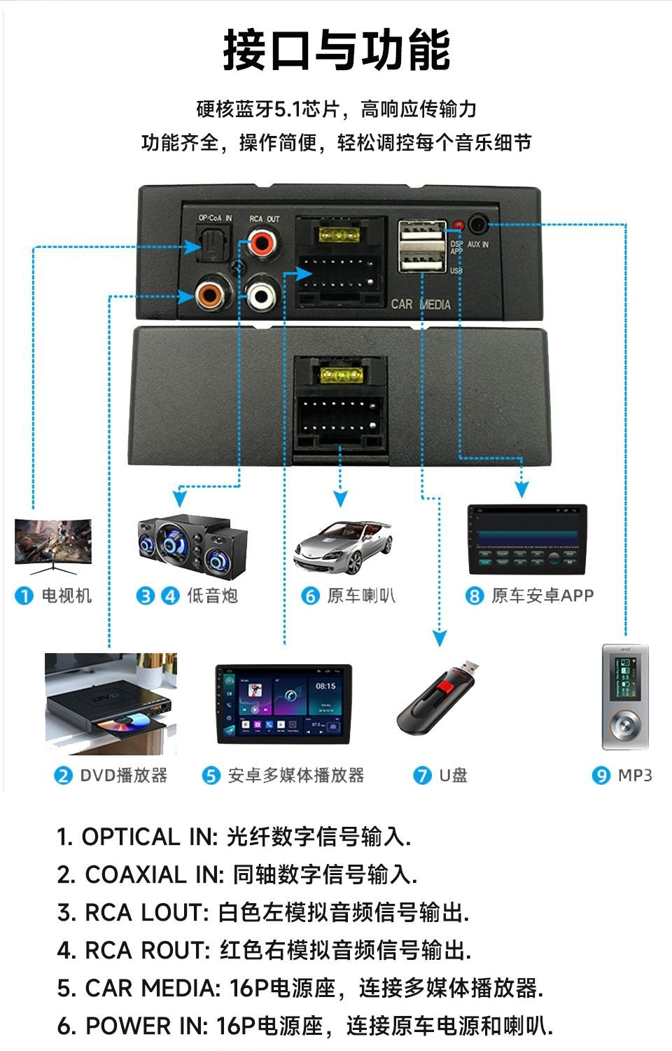 • 후면 장착형 16P 핀 Android 대형 화면에만 적합