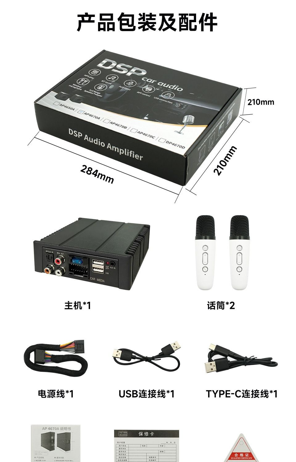 자동차 마이크 국민 KTV 무선 듀얼 마이크 전송 자동차 사운드 효과 증폭기 고출력 DSP 증폭기 상자스토어 가기