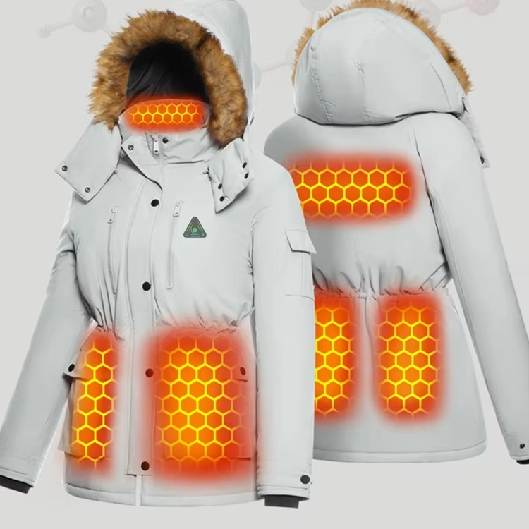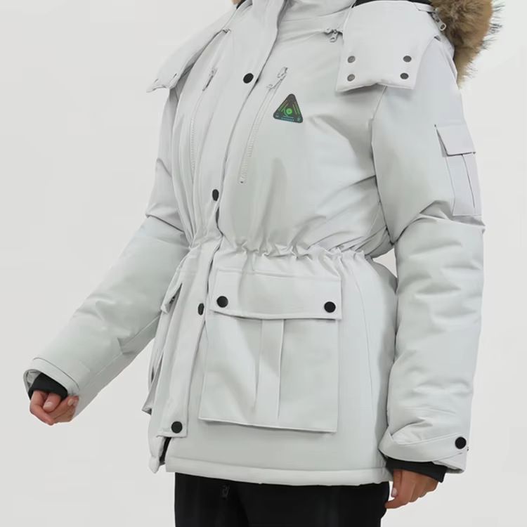 맞춤형 흰색 북유럽 따뜻한 재킷 방수 및 방풍 스마트 가열 재킷 여성 소스 공장스토어 가기