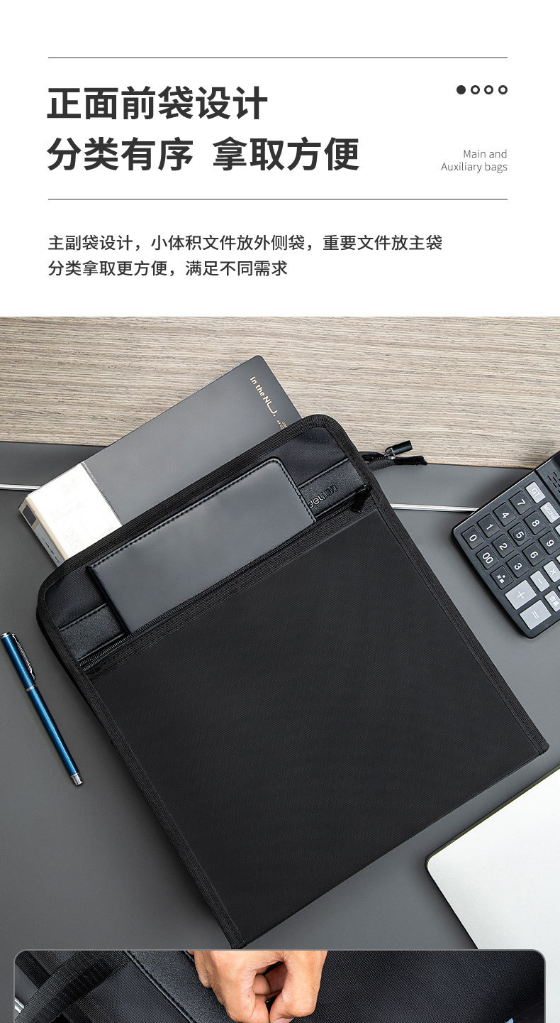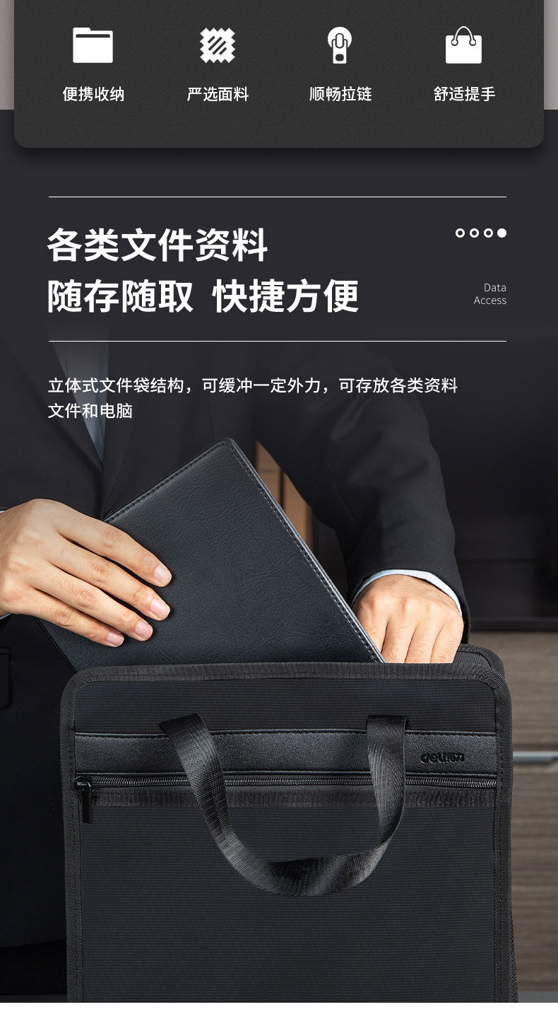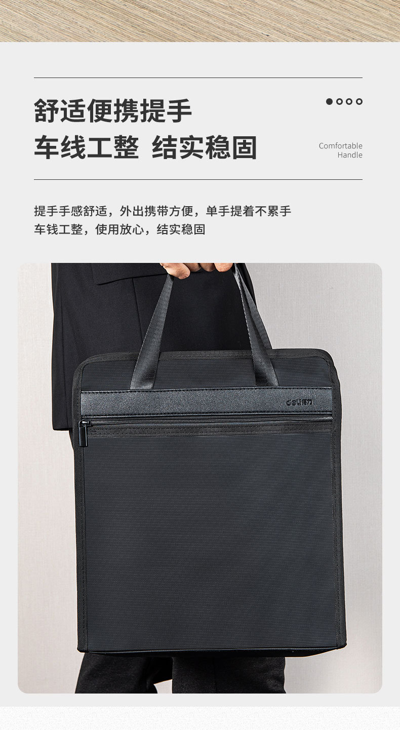 델리 63760 수직 서류가방 더블 레이어 문서 보관 가방 비즈니스 오피스 핸드백 휴대용 가방스토어 가기
