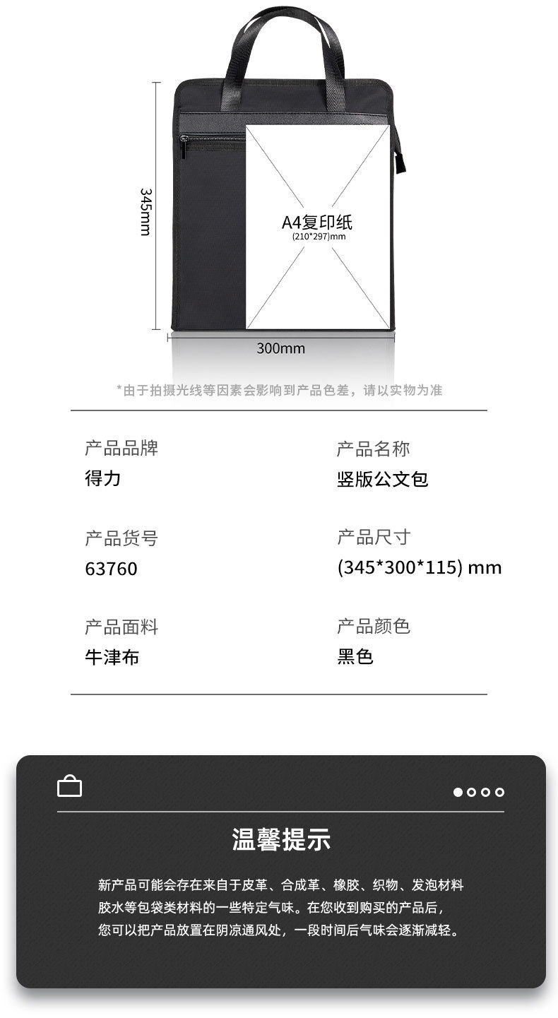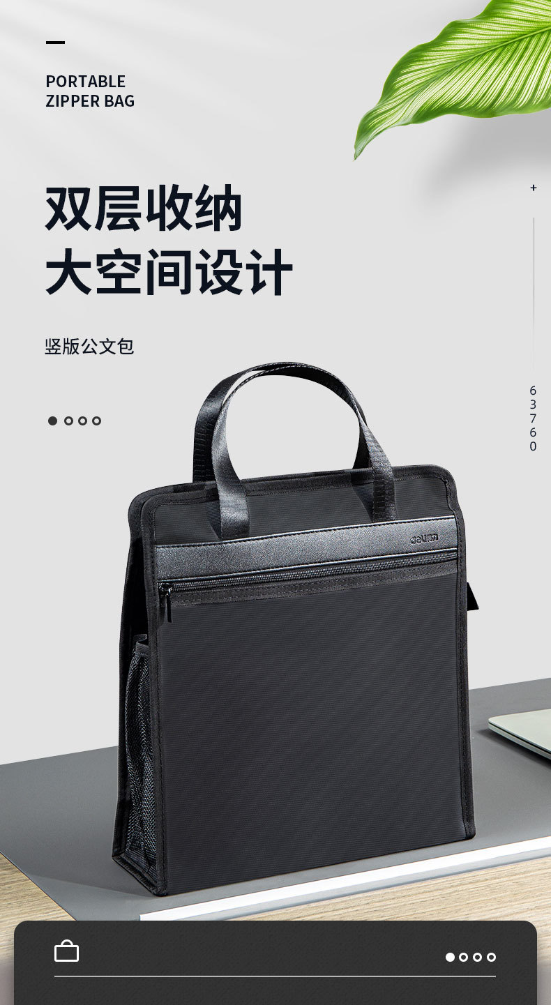 델리 63760 수직 서류가방 더블 레이어 문서 보관 가방 비즈니스 오피스 핸드백 휴대용 가방