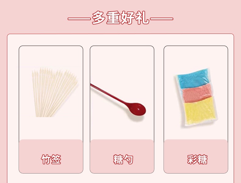 • 귀여운 핑크색 [대나무 막대기 100개, 설탕 10팩, 설탕 스푼 1개]