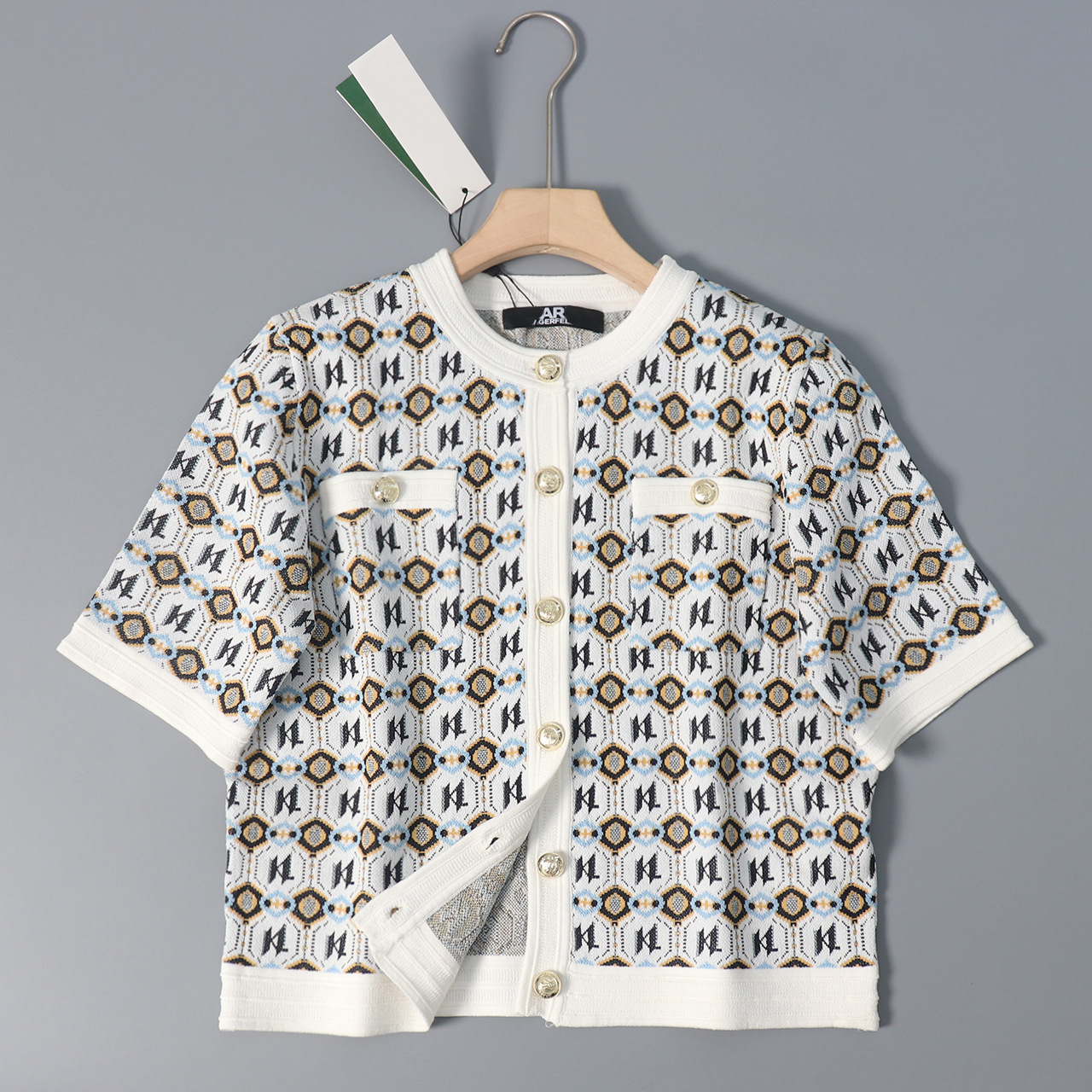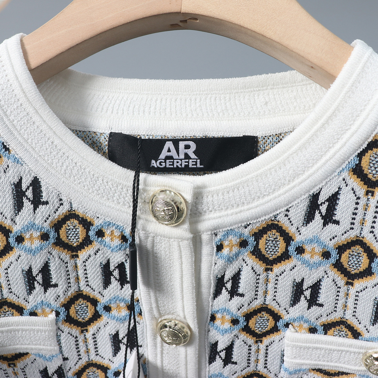 • RC-Kr 인타르시아 니트 가디건 화이트