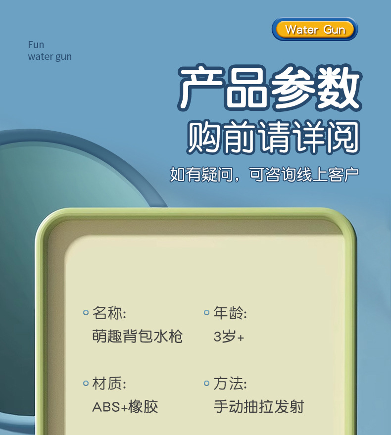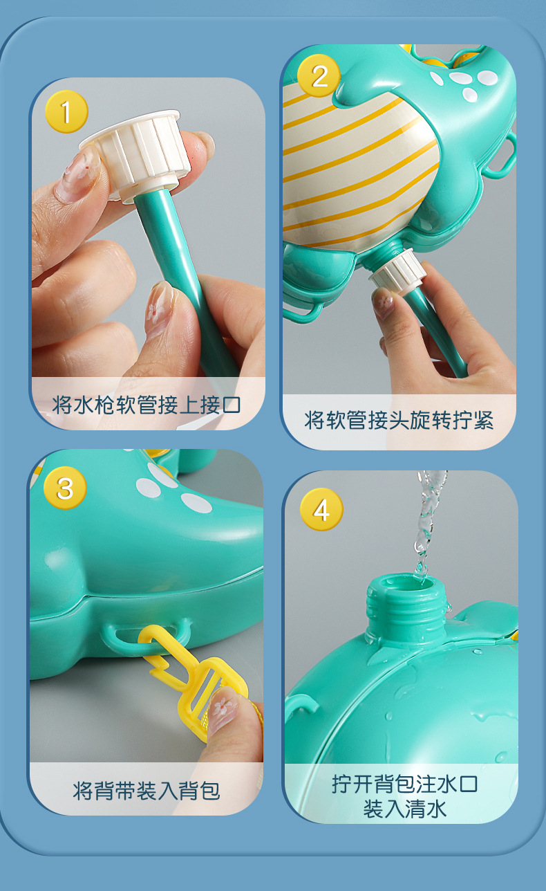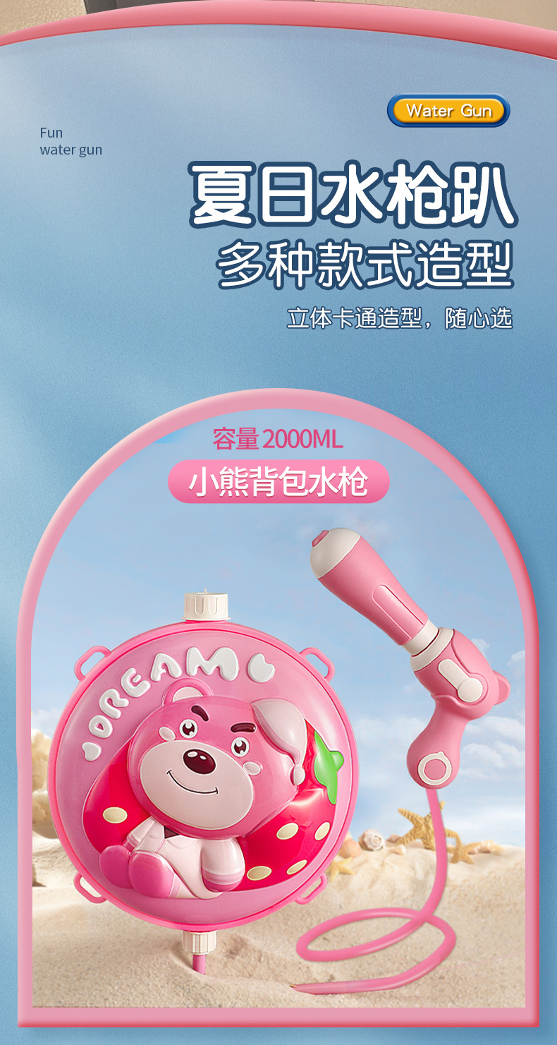 2025 새로운 어린이 만화 배낭 물총 장난감 물 해변 장난감 풀 아웃 형 물총 어린이 도매