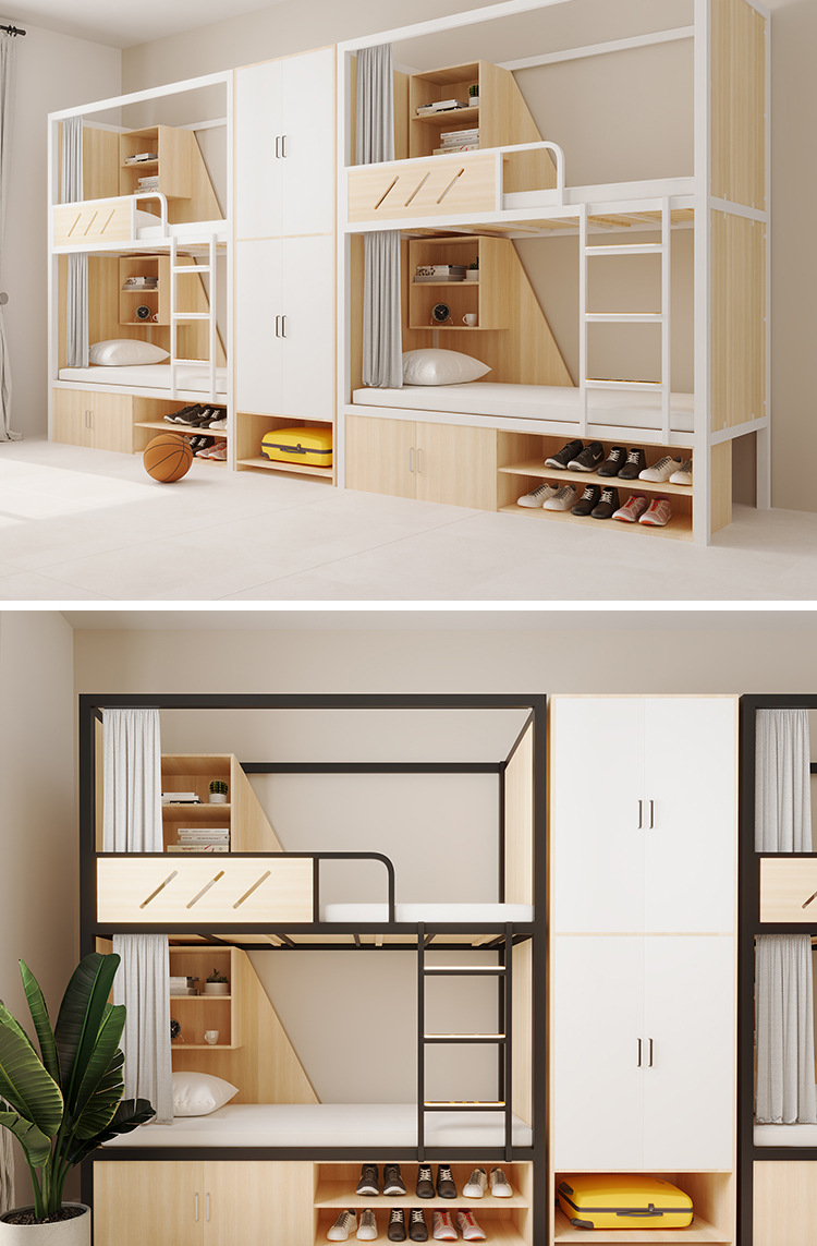 상하 이층 철제 프레임 침대 직원 기숙사 이층 학생 높고 낮은 침대 침대 침대 낮은 테이블 싱글 아파트 조합 침대스토어 가기