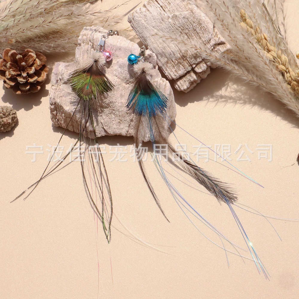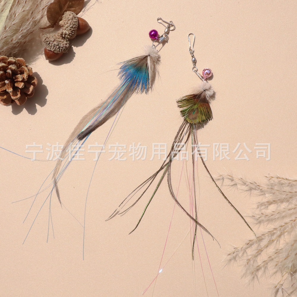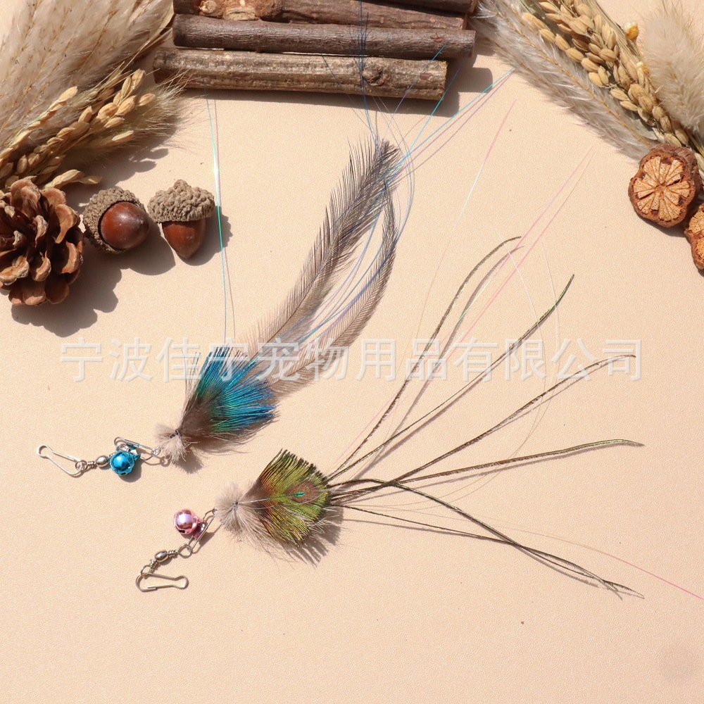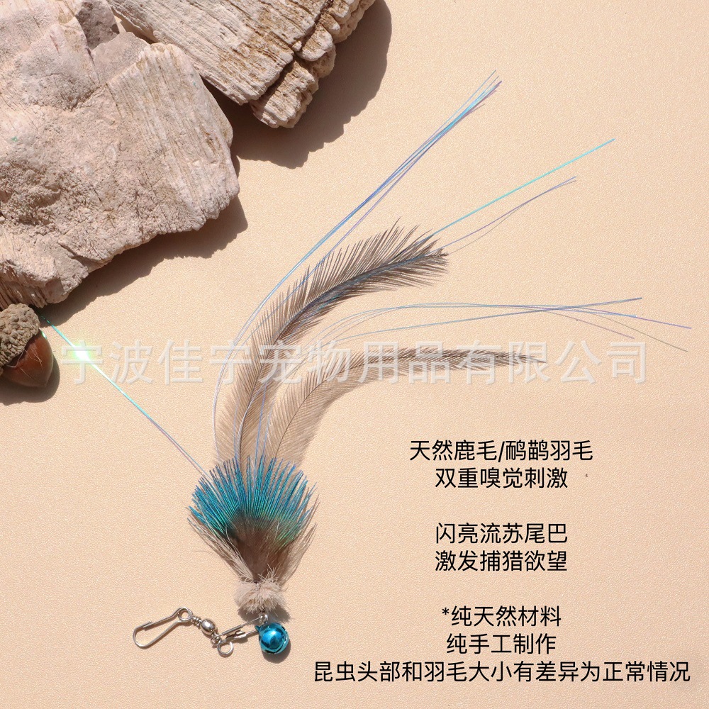순수한 수제 사슴 머리 고양이 스틱 교체 머리 자연 깃털 곤충 고양이 장난감 밝은 실크 술 셀프 하이 애완 동물 용품