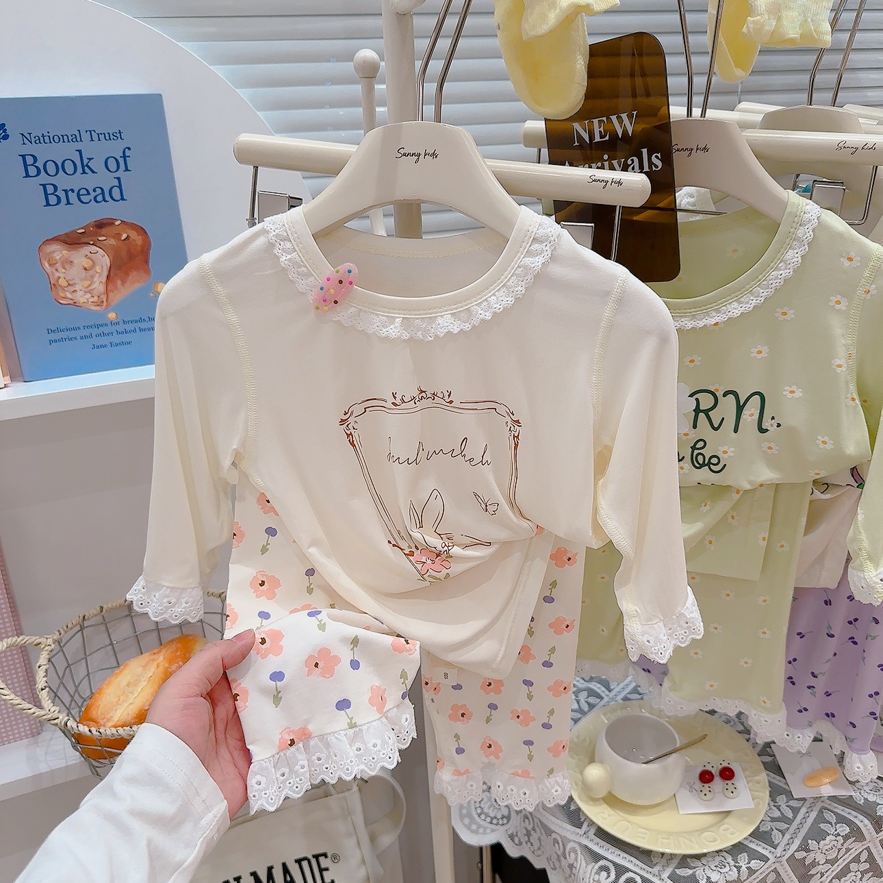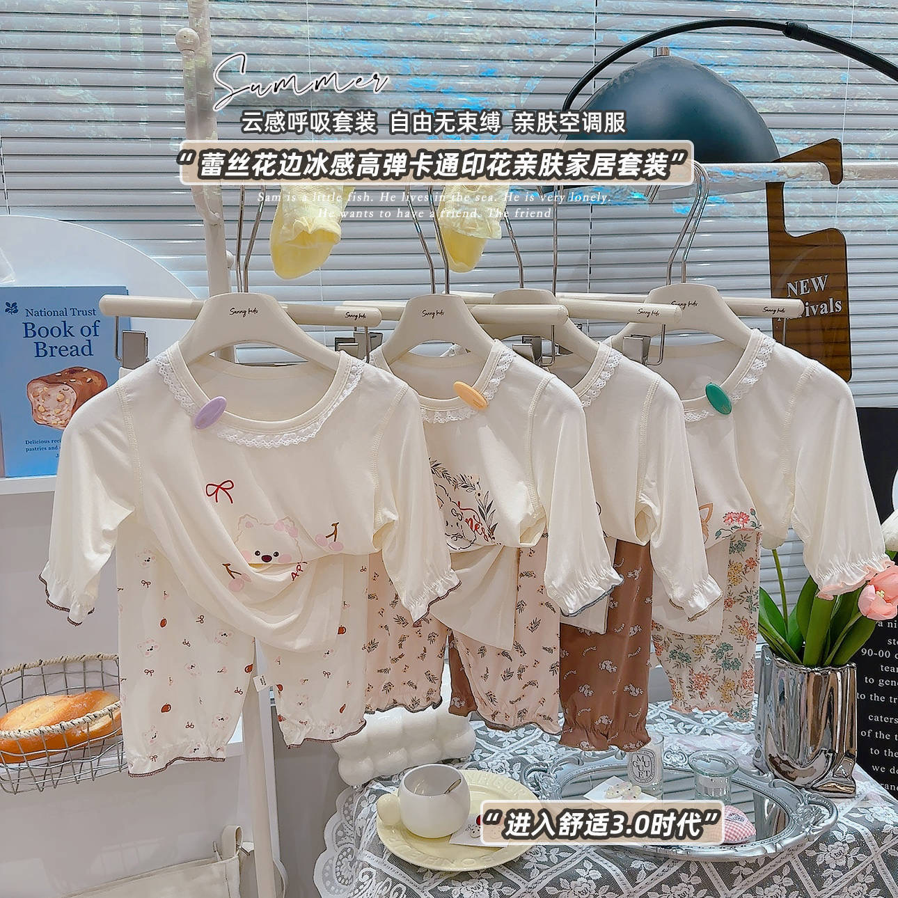 여름 50 Yousi 7 점 소매 세트 소년 소녀 홈 옷 파자마 클래스 얇은 모달 에어컨 옷스토어 가기