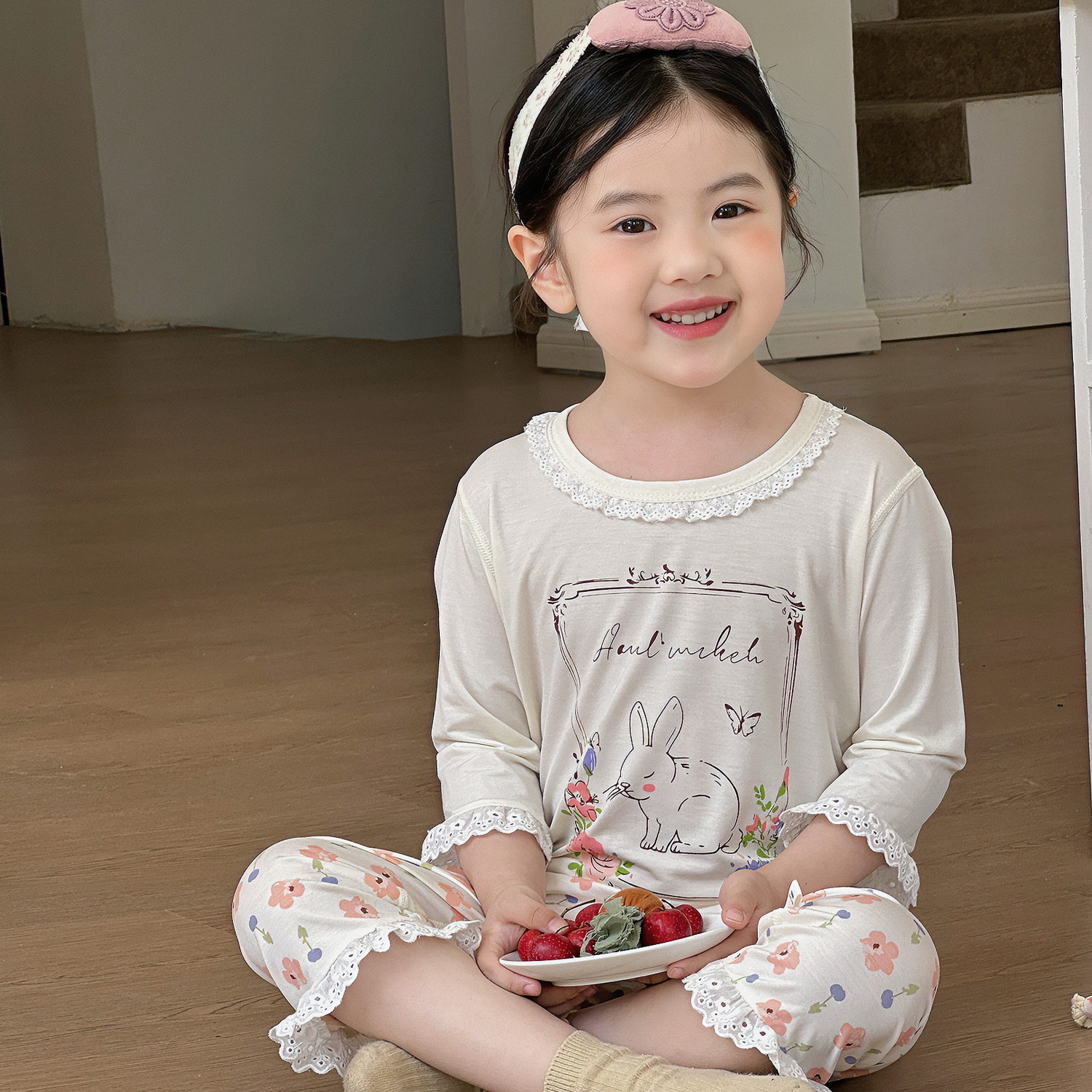 여름 50 Yousi 7 점 소매 세트 소년 소녀 홈 옷 파자마 클래스 얇은 모달 에어컨 옷
