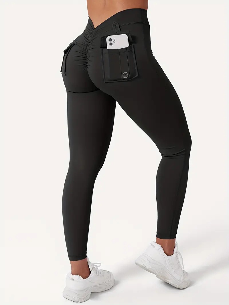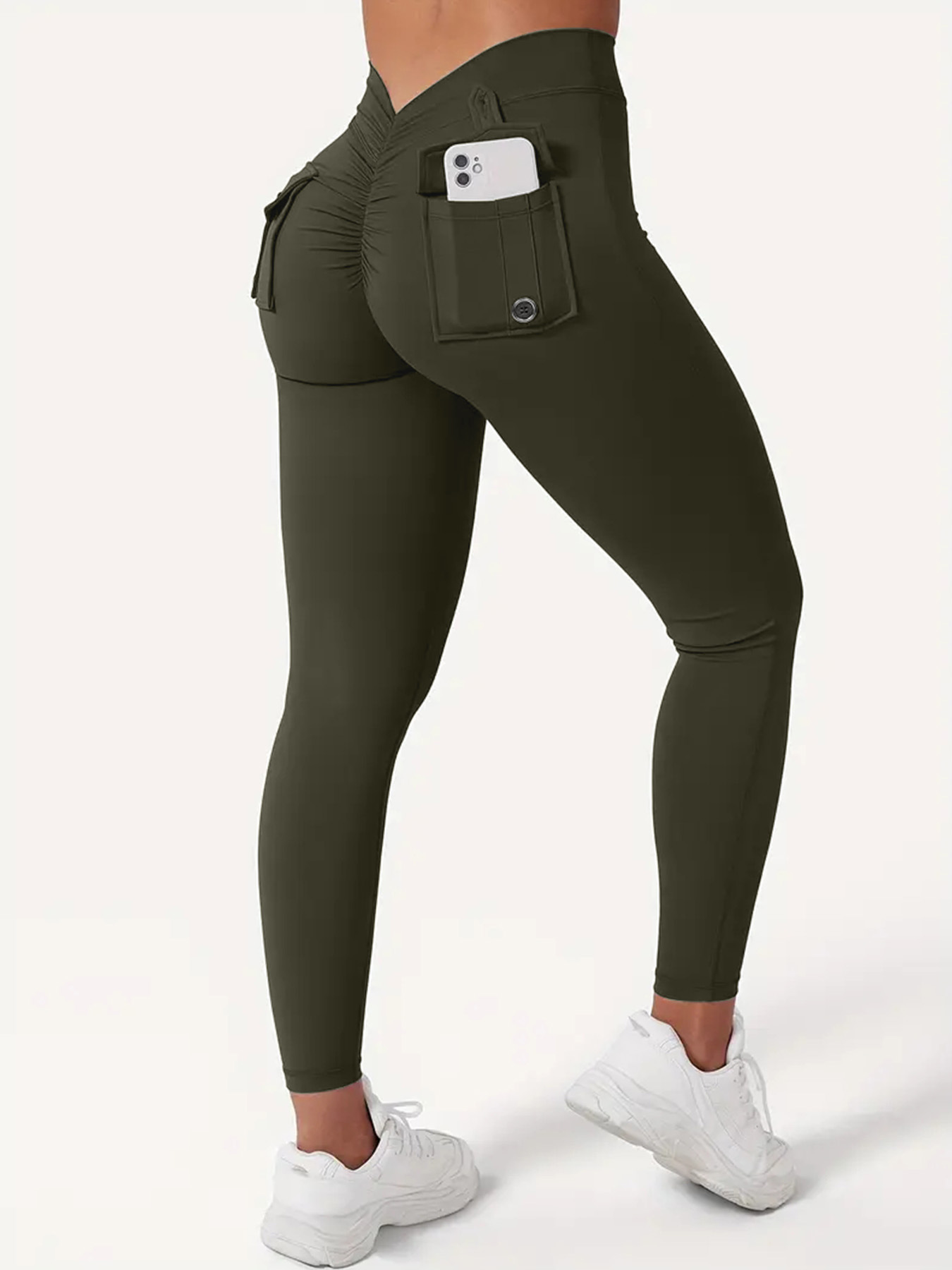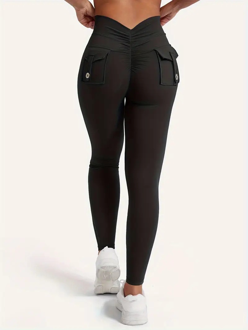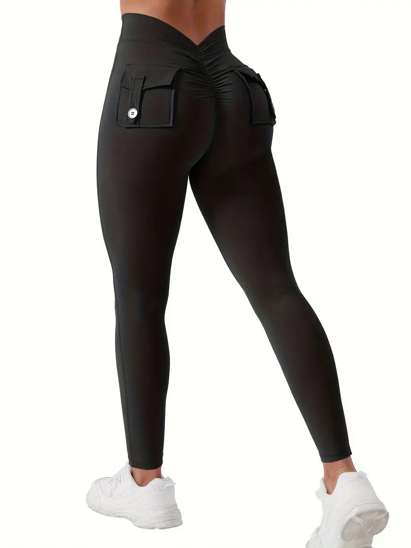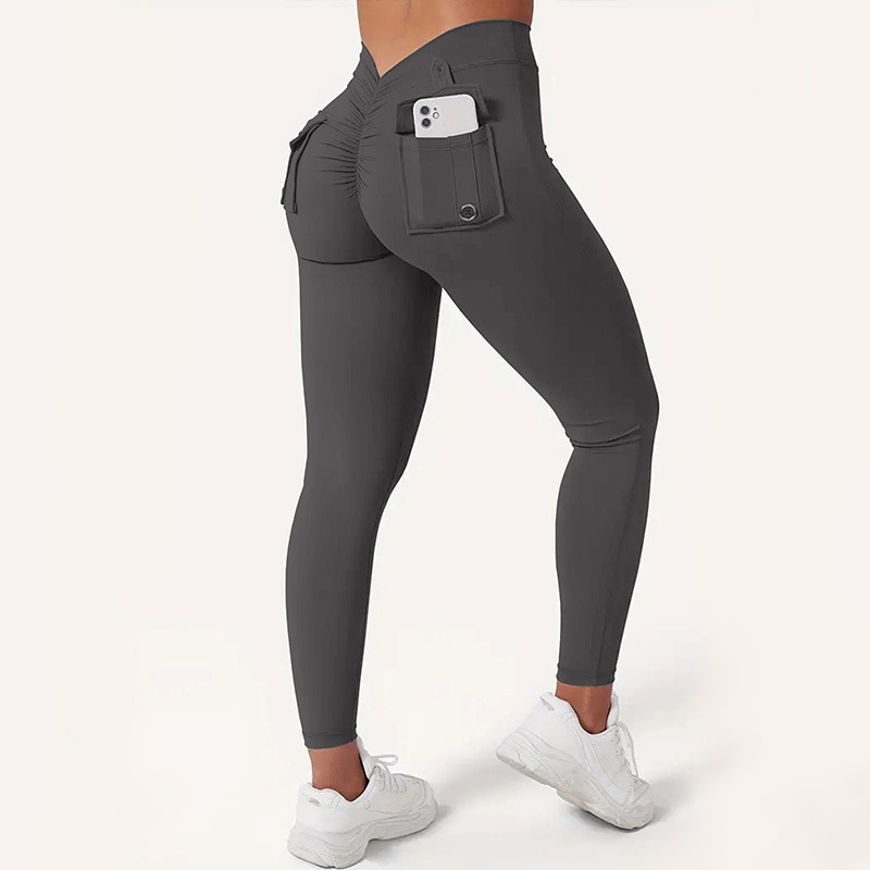 유럽과 미국의 크로스보더 V자형 뒷허리 복숭아 엉덩이 요가 팬츠 포켓 작업복 바지 여성용 하이 웨이스트 엉덩이 리프팅 속건 스포츠 누드