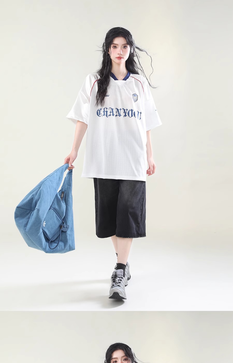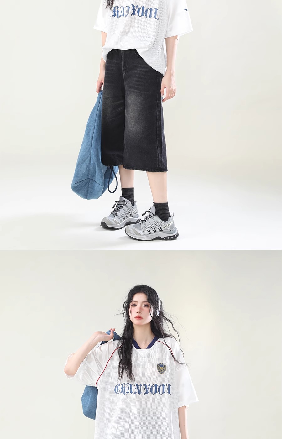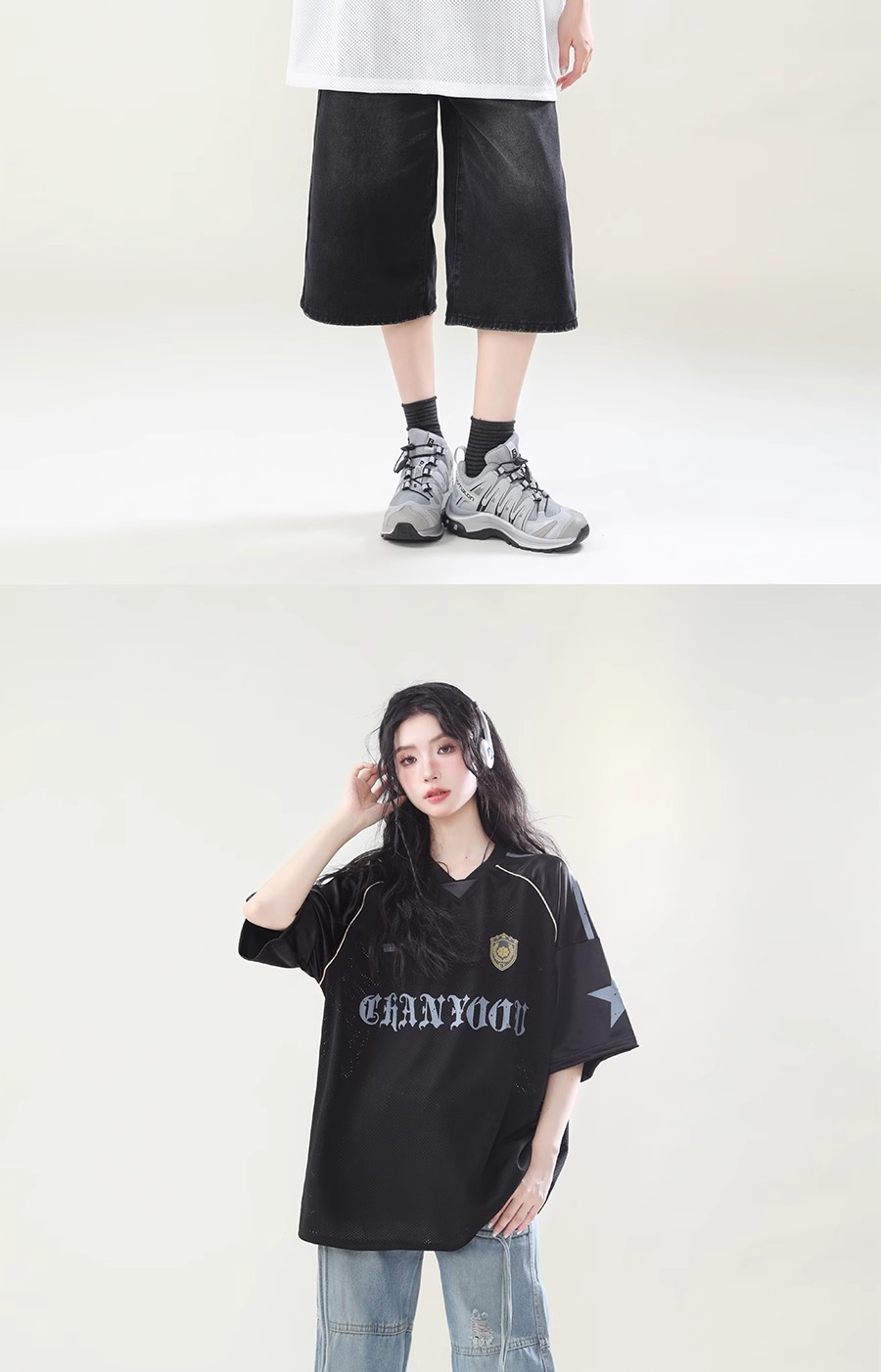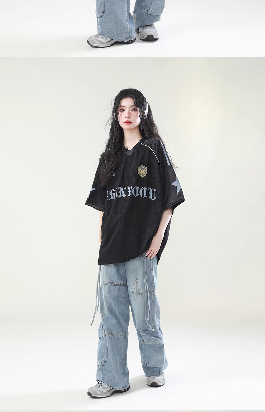 미국 스타일 패션 브랜드 스포츠 할로우 통기성 하이 스트리트 저지 반팔 티셔츠 여성 패션 브랜드 루즈 디자인 센스 탑 인 패션 패션스토어 가기