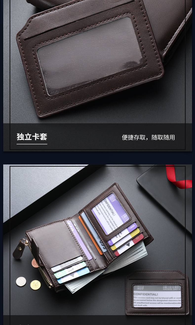 2025 새로운 도착 지갑 남자 짧은 한국 스타일 유행 멀티 카드 지퍼 지갑 대용량 운전 면허증 카드 홀더스토어 가기