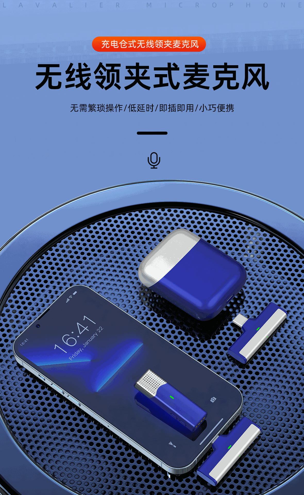 충전함이 포함된 국경 간 공급 무선 라발리에 마이크 Douyin 라이브 인터뷰 짧은 비디오 소음 감소 잔향 마이크스토어 가기