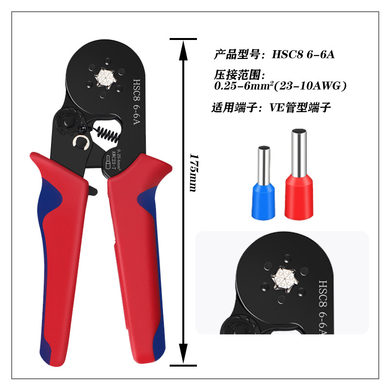 사변형 펜치 파이프 타입 부두 압착 플라이어 HSC8 6-4 핀 터미널 압착 콜드 터미널 압착 펜치