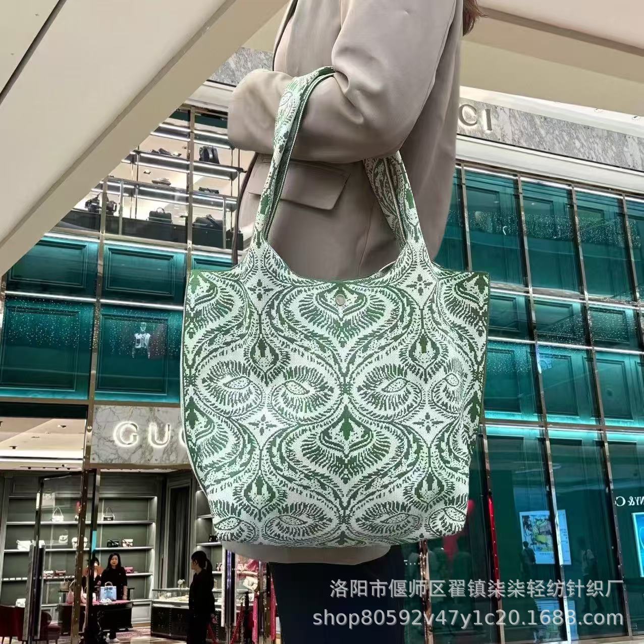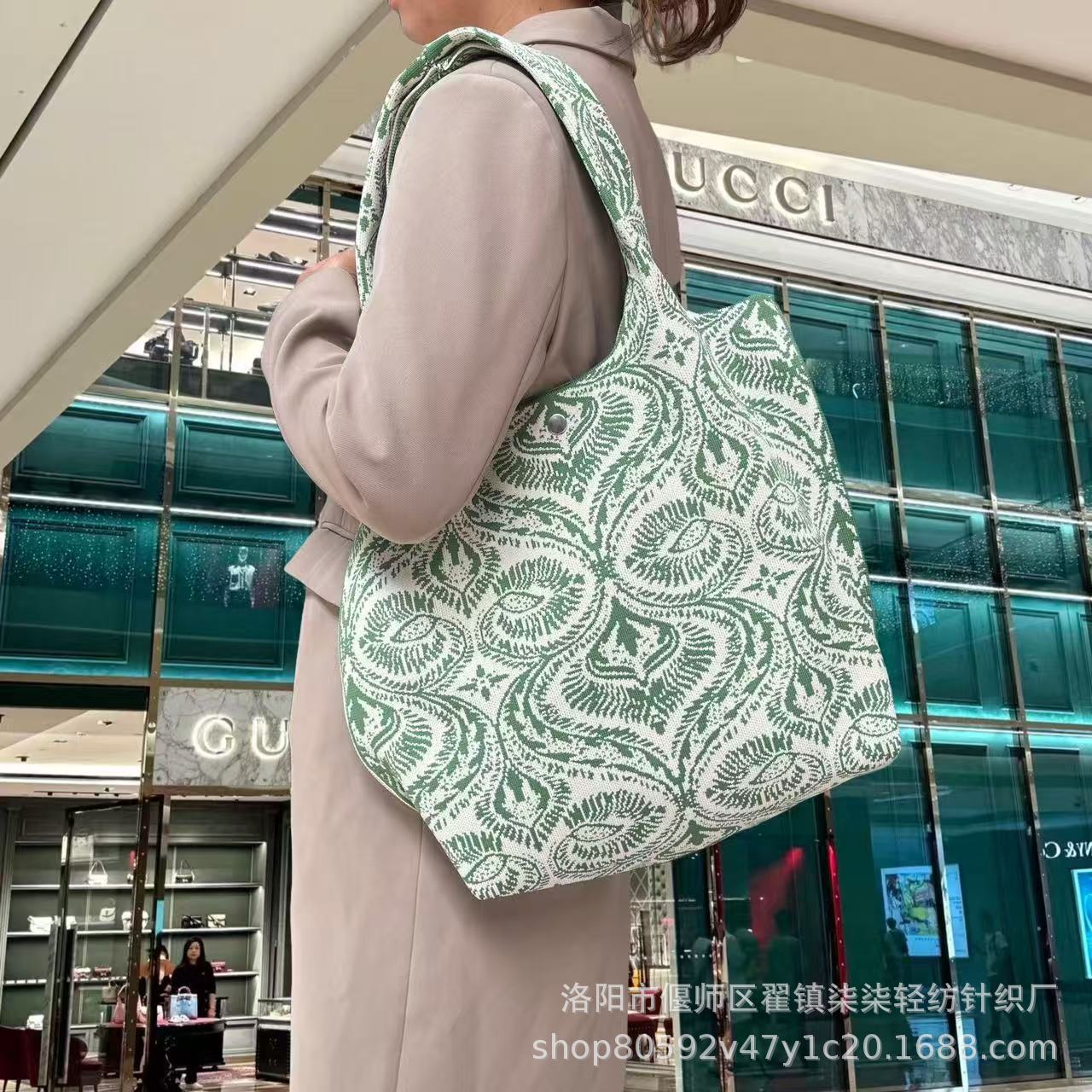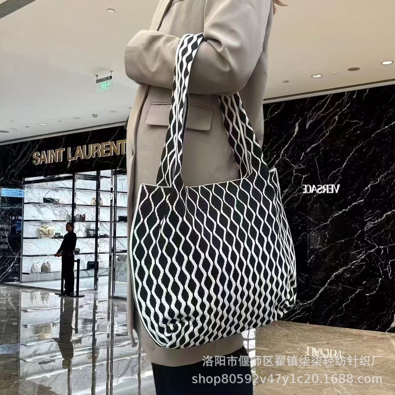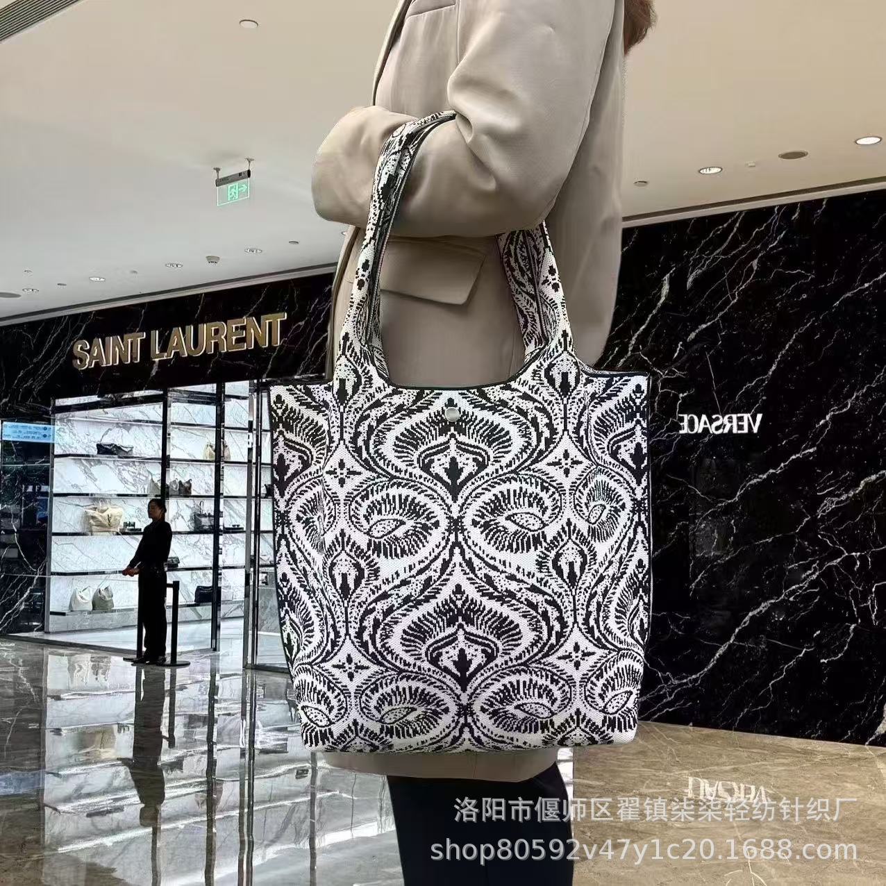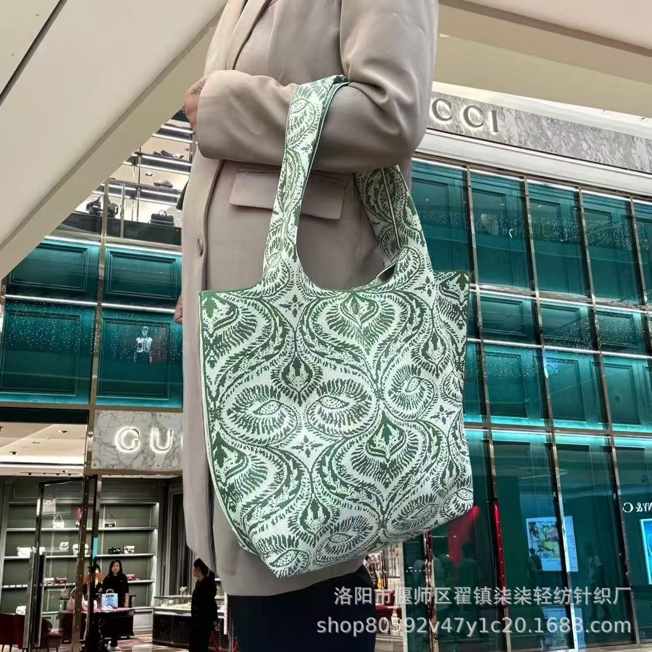새로운 플라잉 위빙 한국 틈새 디자인 니트 핸드백 버킷 백 여성 유행 올 매치 여행 쇼핑핸드백스토어 가기