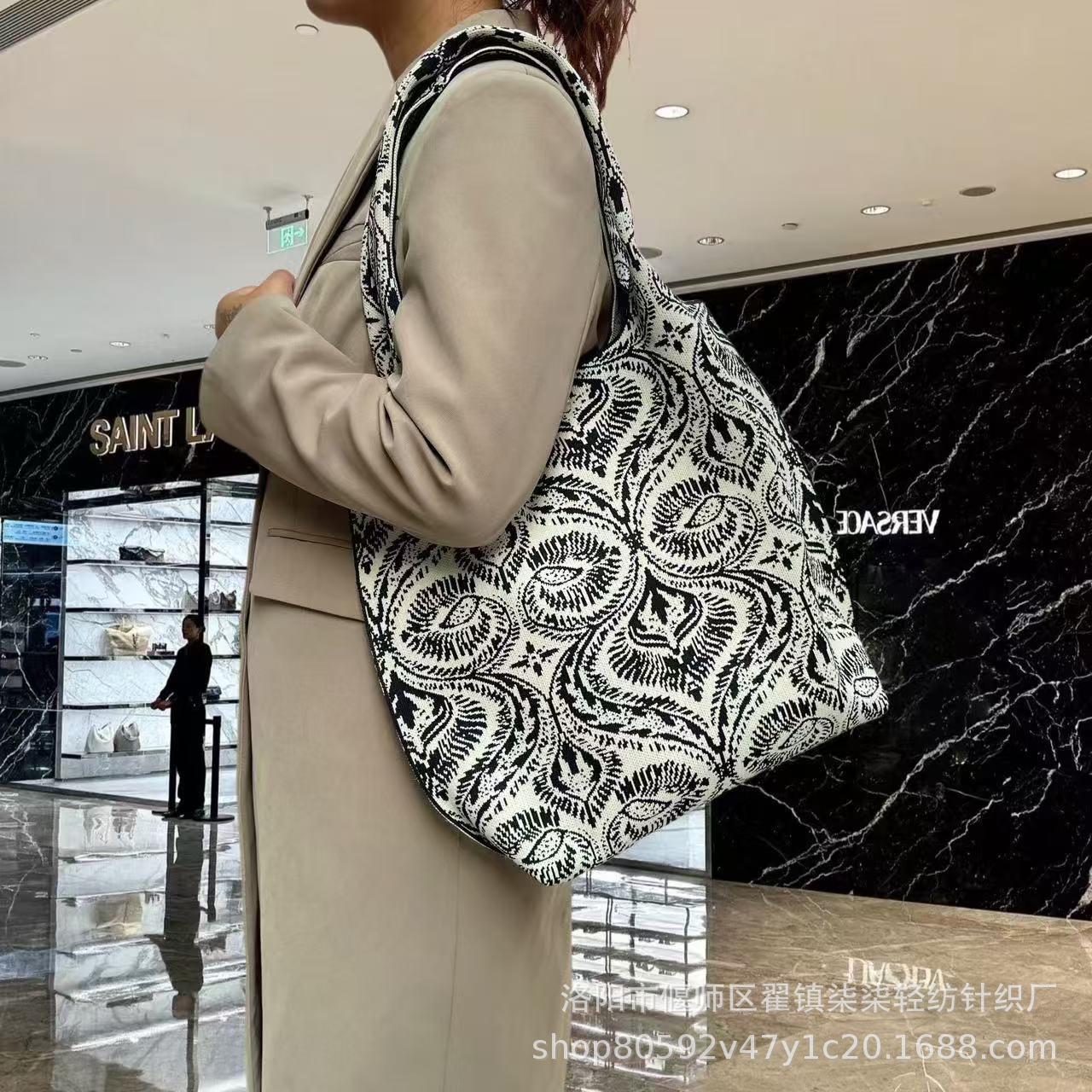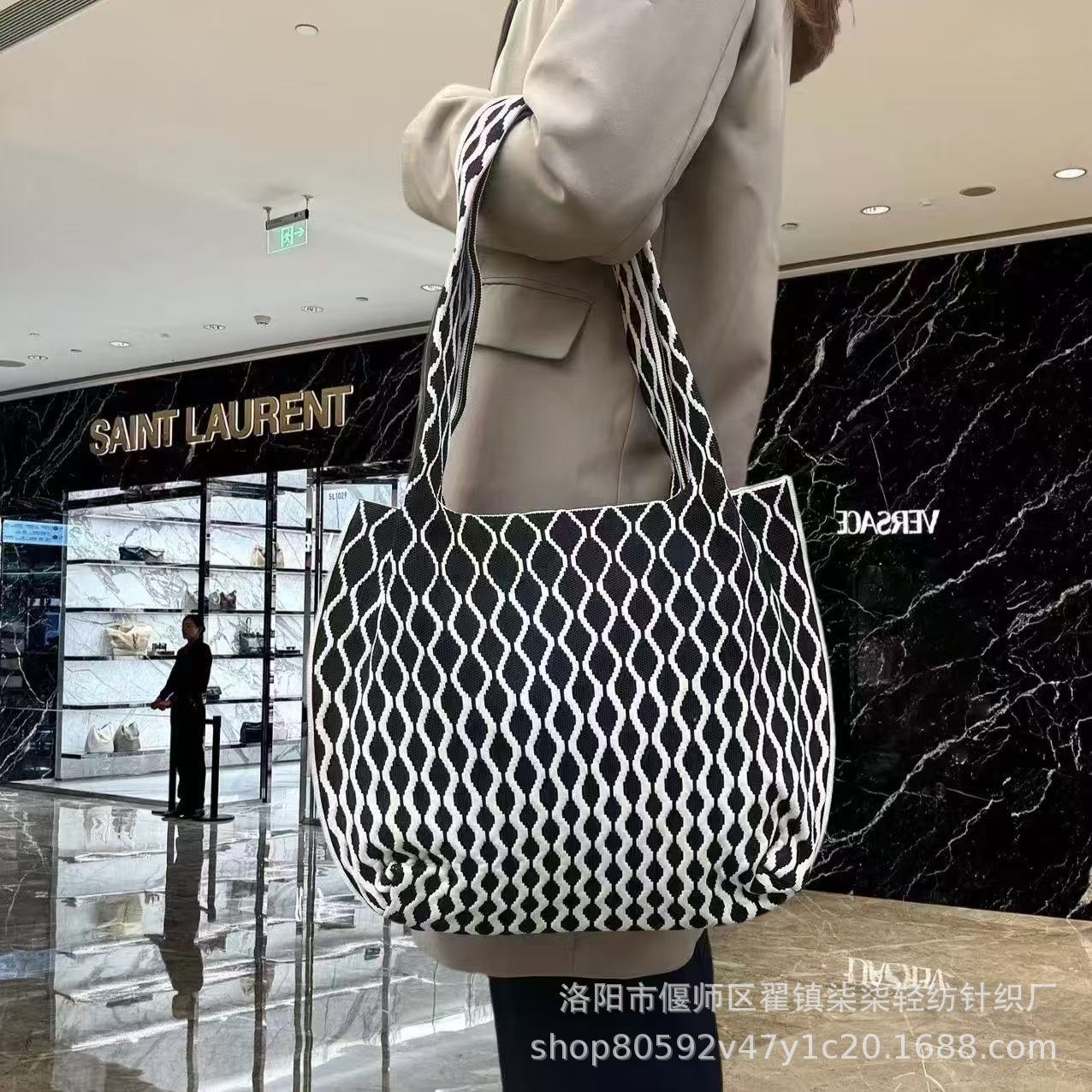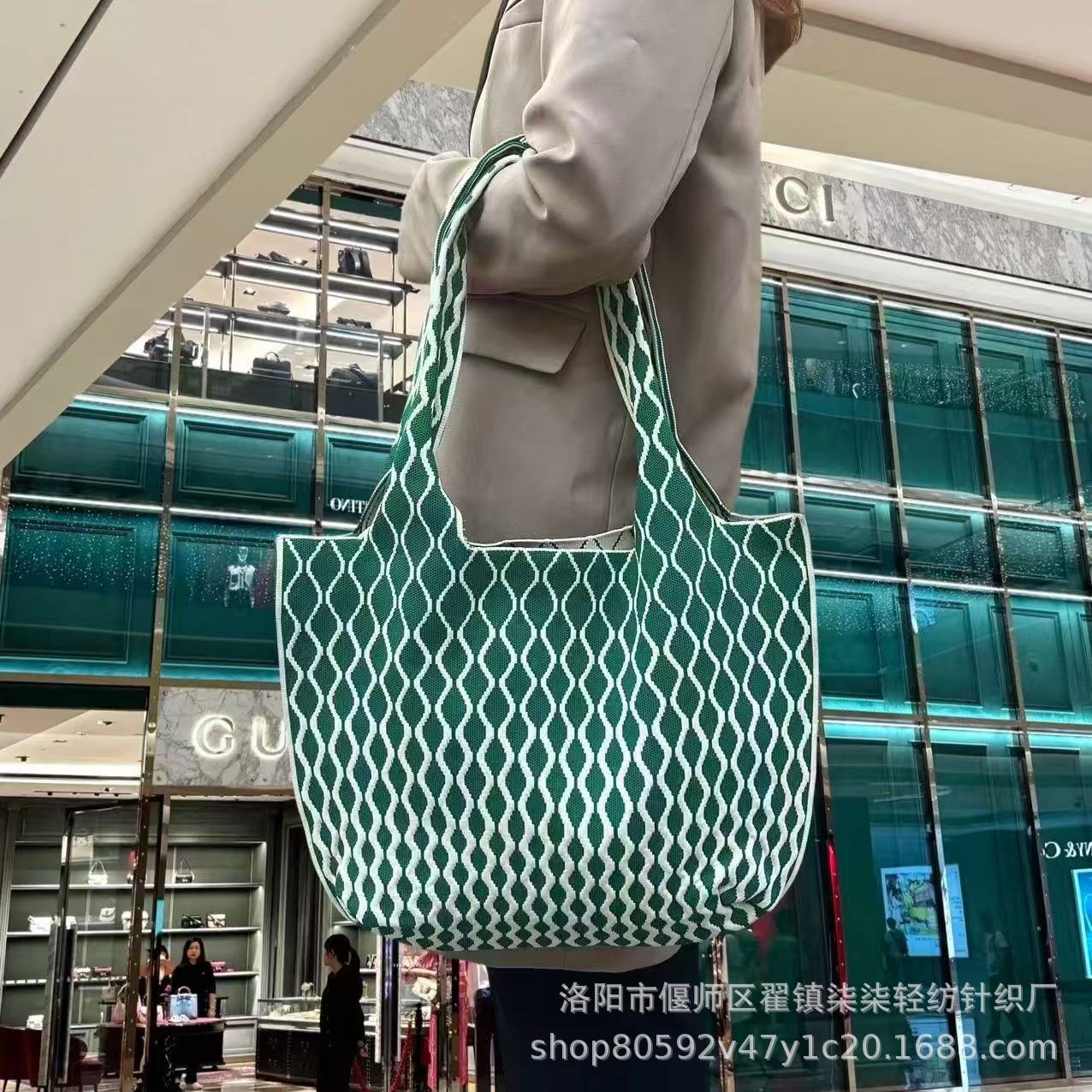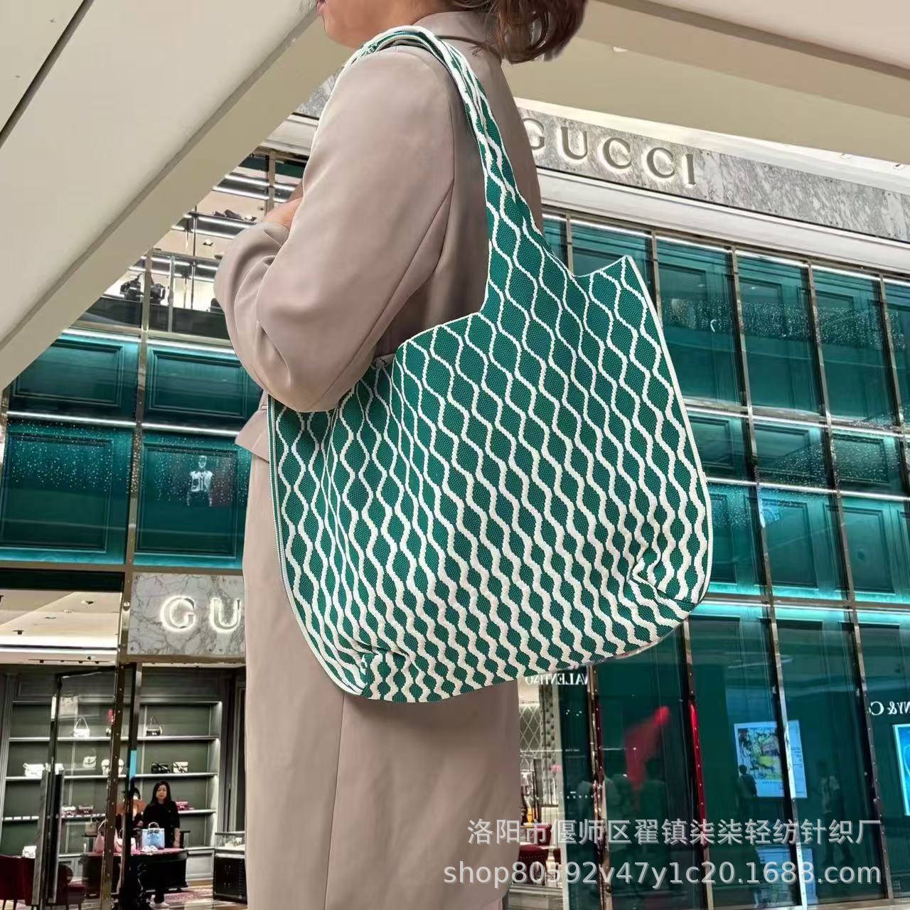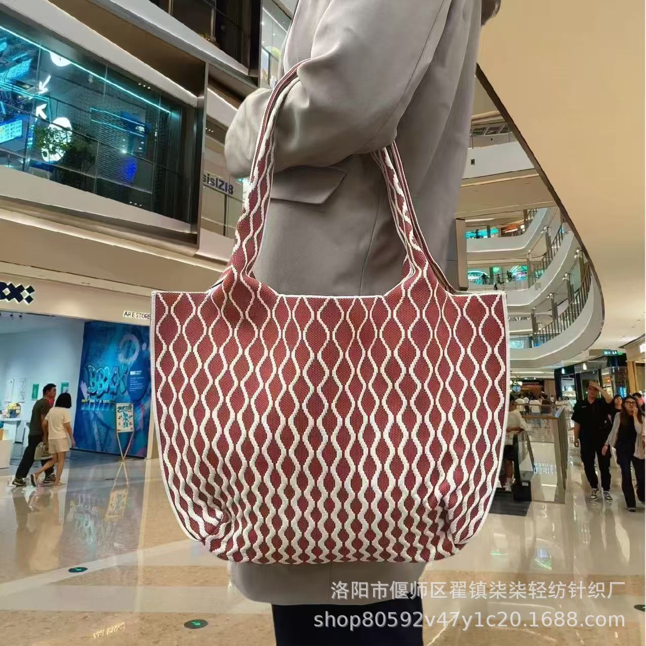 새로운 플라잉 위빙 한국 틈새 디자인 니트 핸드백 버킷 백 여성 유행 올 매치 여행 쇼핑핸드백스토어 가기