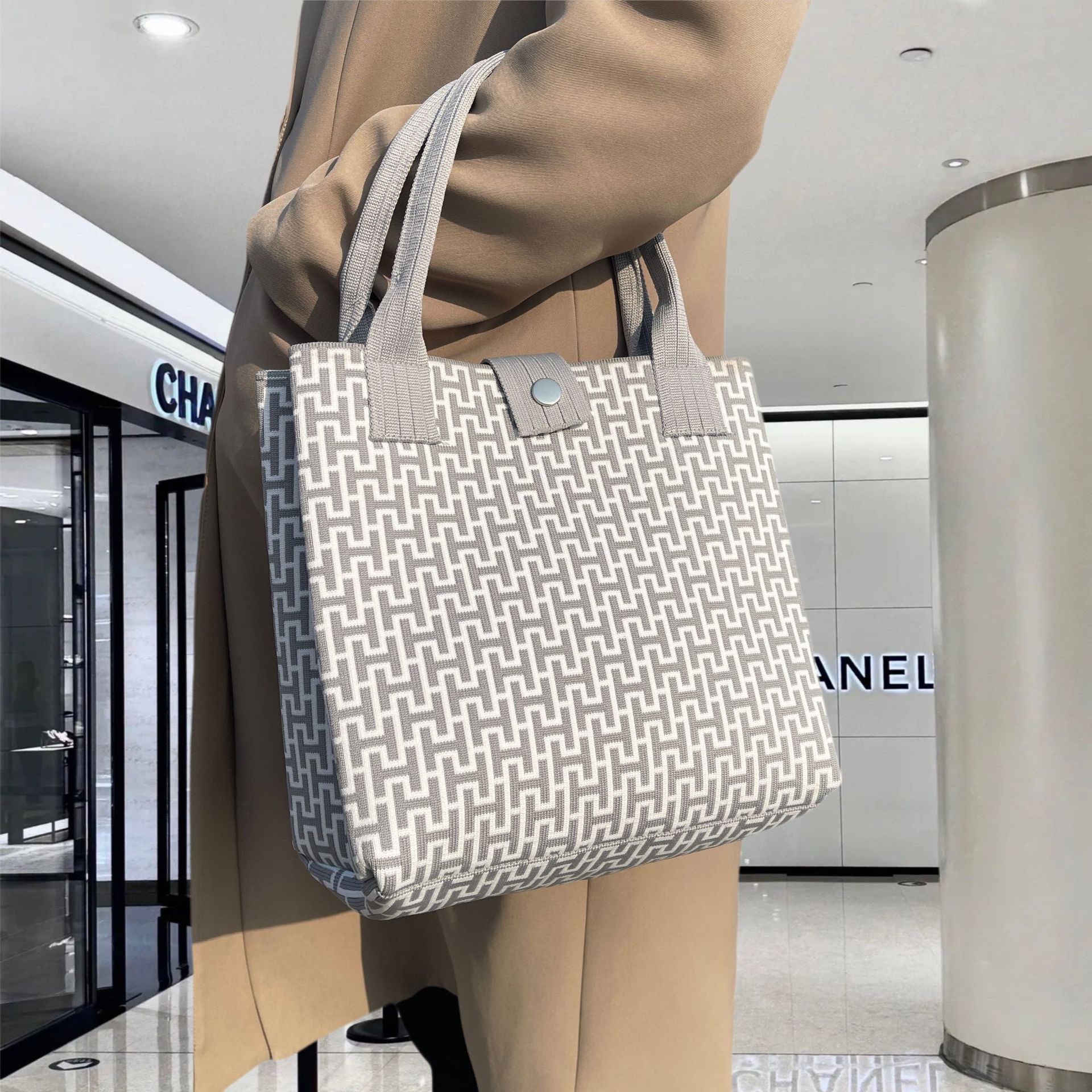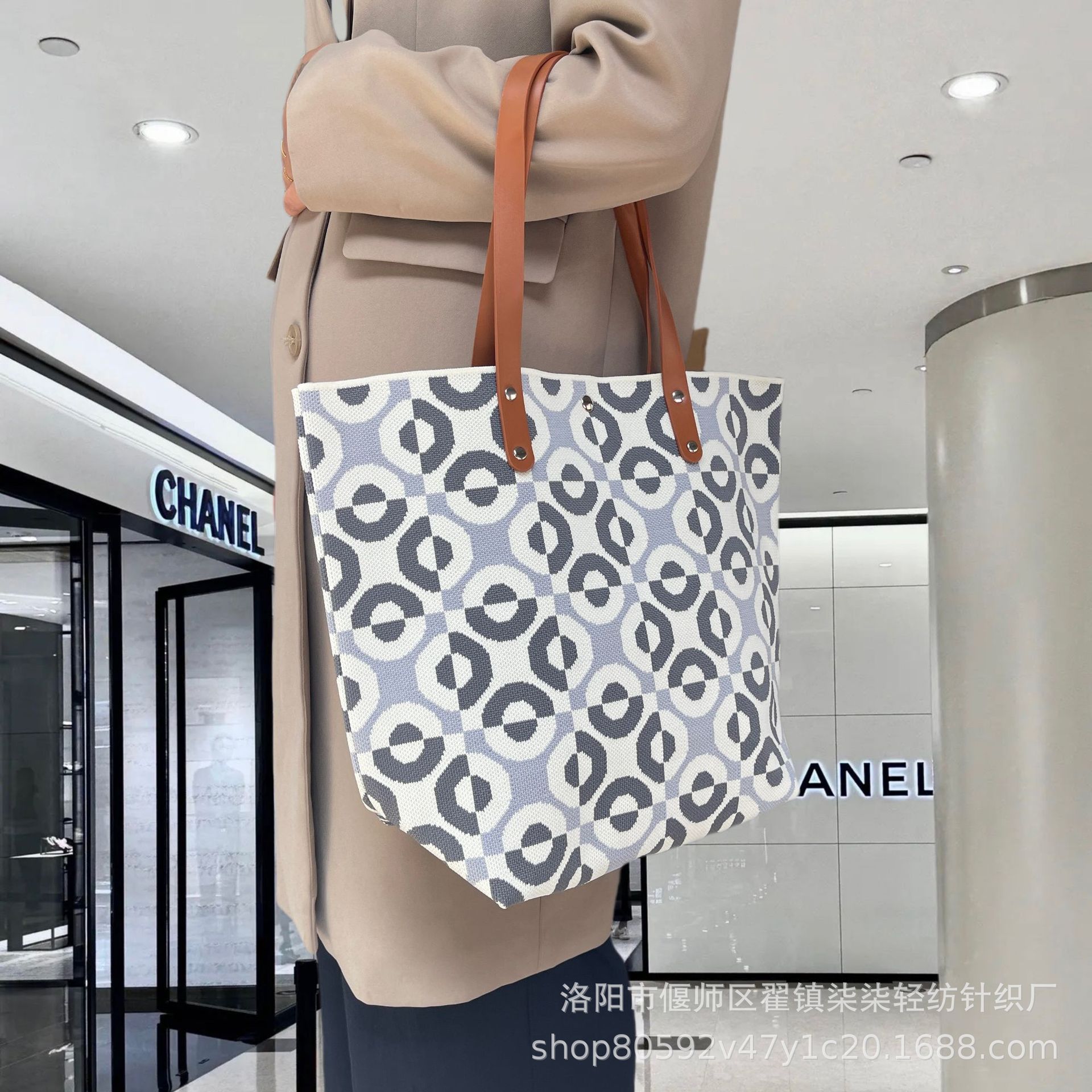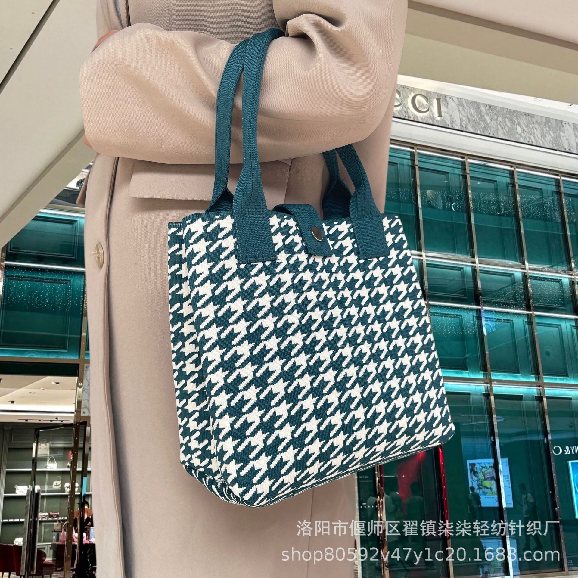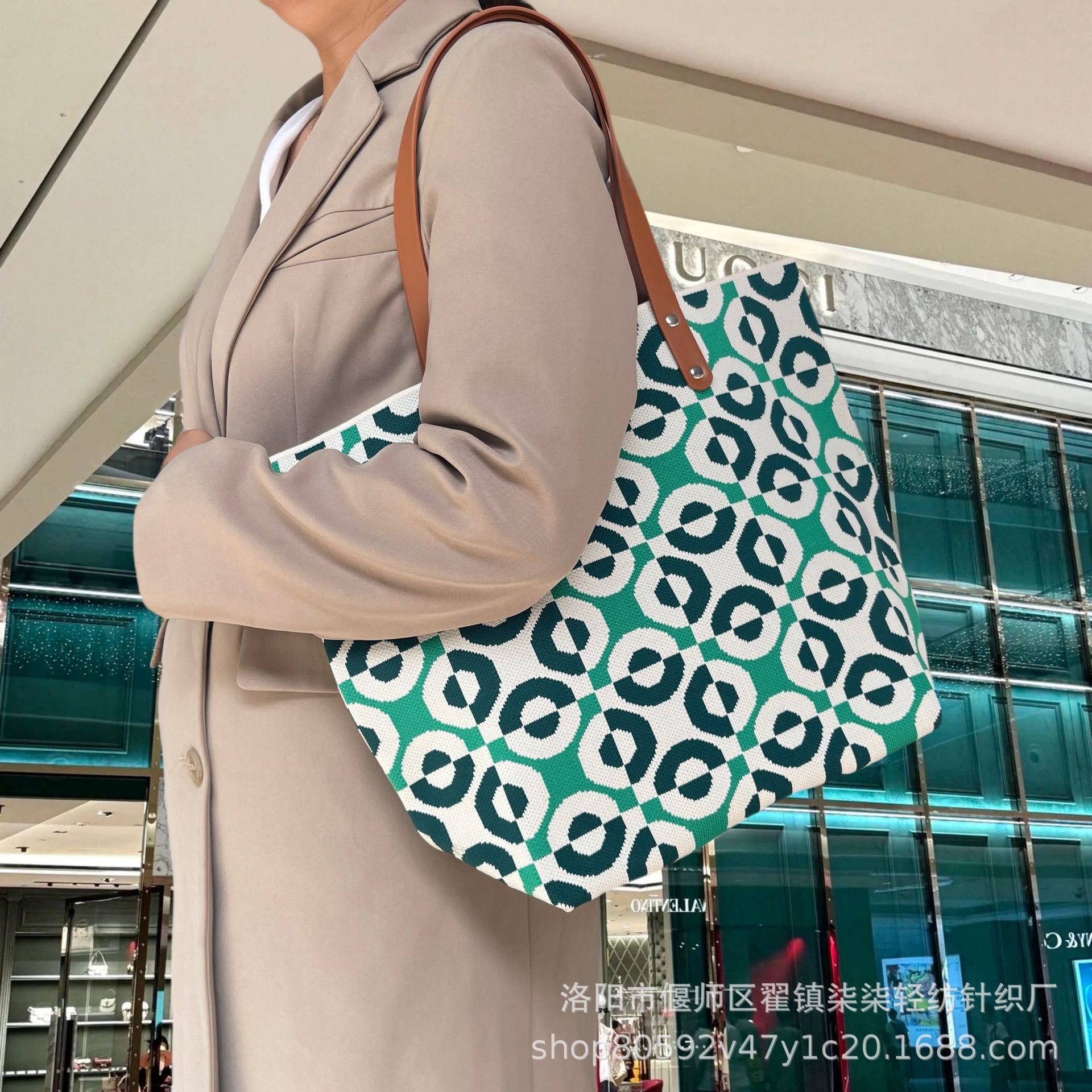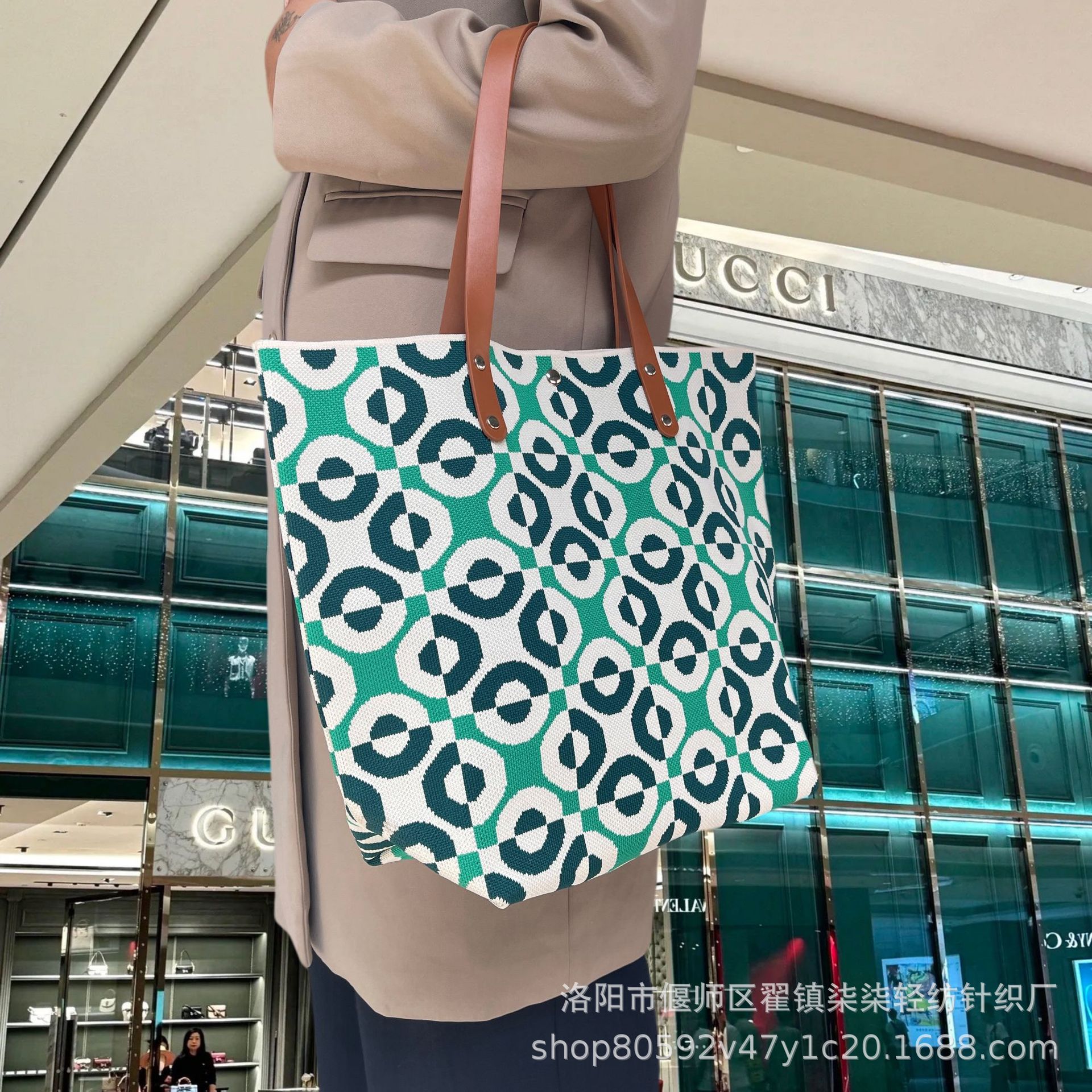 새로운 플라잉 위빙 한국 틈새 디자인 니트 핸드백 버킷 백 여성 유행 올 매치 여행 쇼핑핸드백스토어 가기
