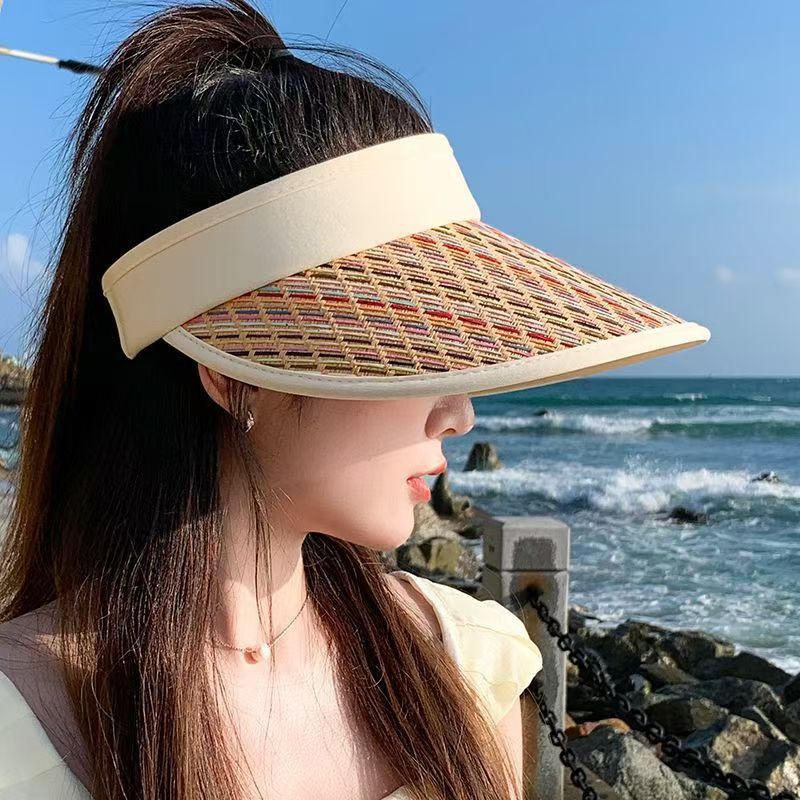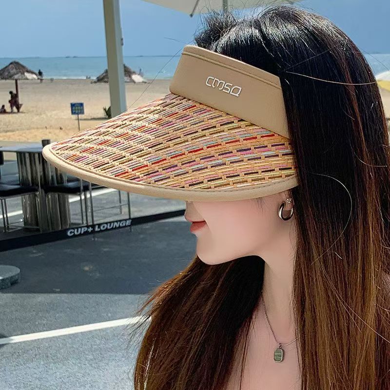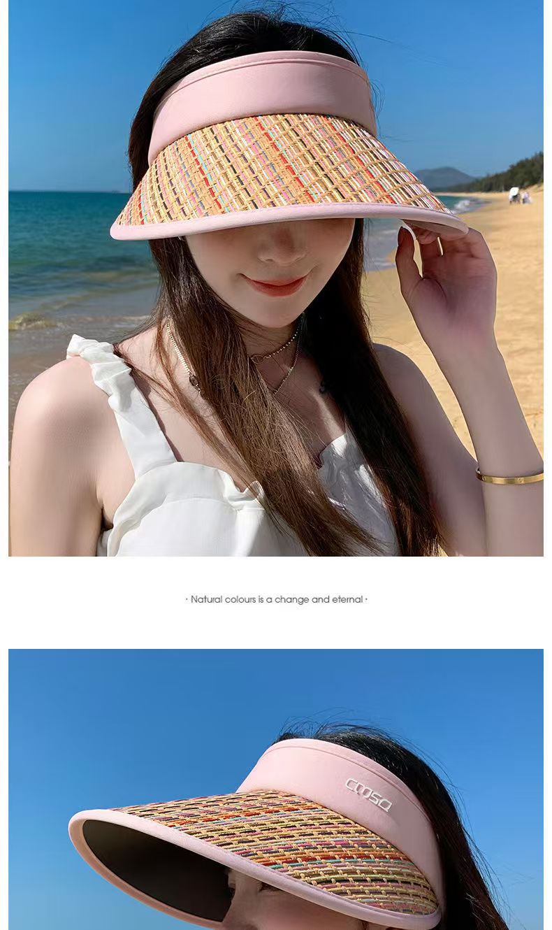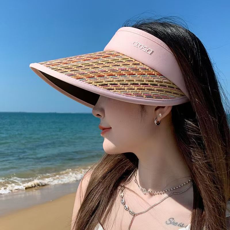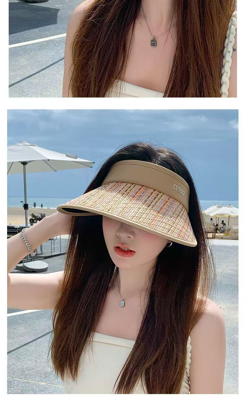 빈 탑 UV 선 스크린 모자 여성의 여름 안티-UV 빅 브림 비치 햇빛 밀짚 모자 야외 태양 모자스토어 가기
