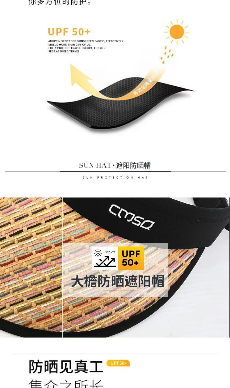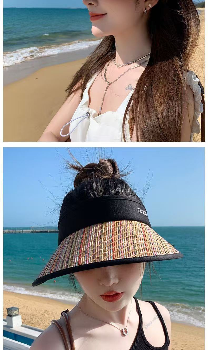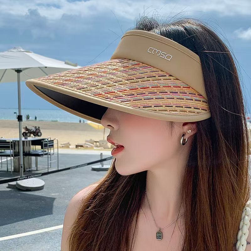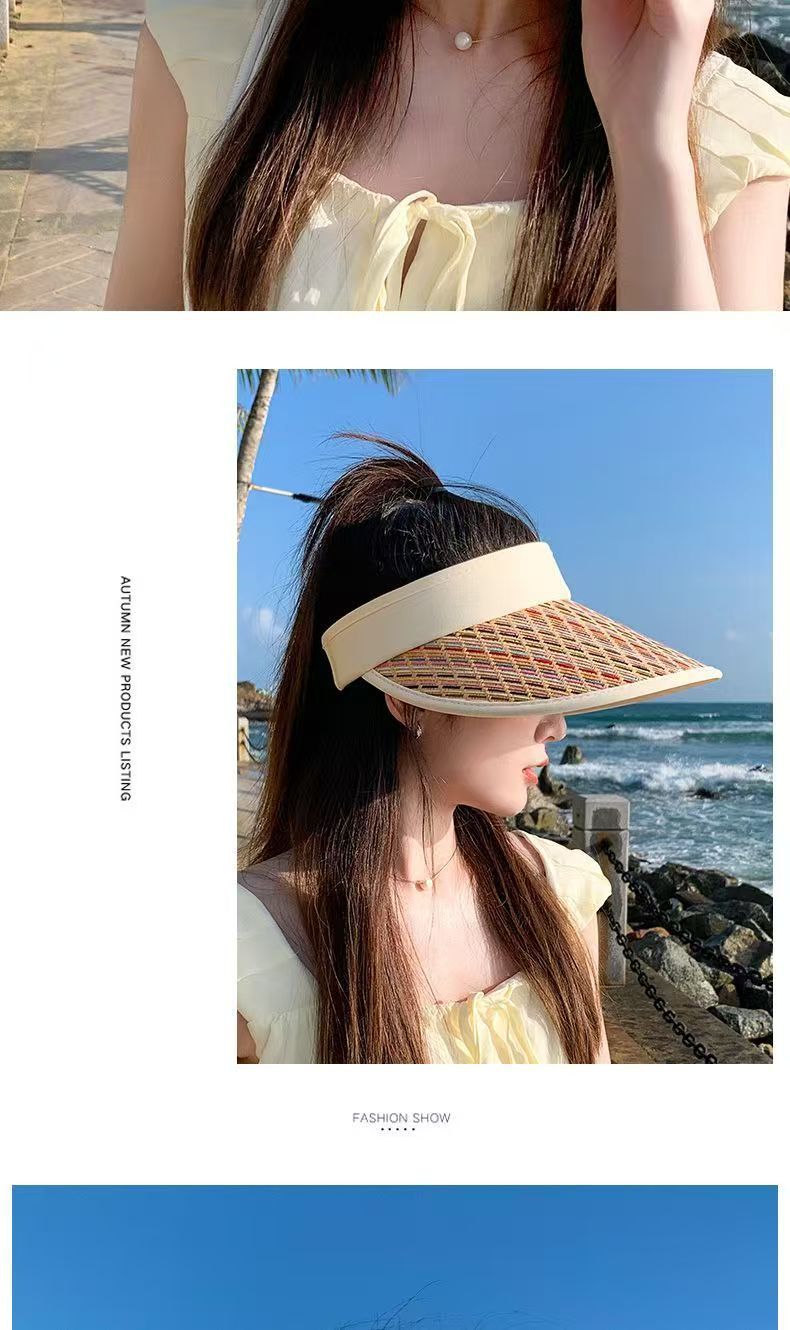 빈 탑 UV 선 스크린 모자 여성의 여름 안티-UV 빅 브림 비치 햇빛 밀짚 모자 야외 태양 모자스토어 가기