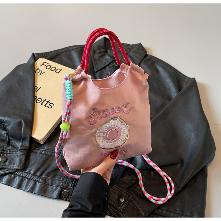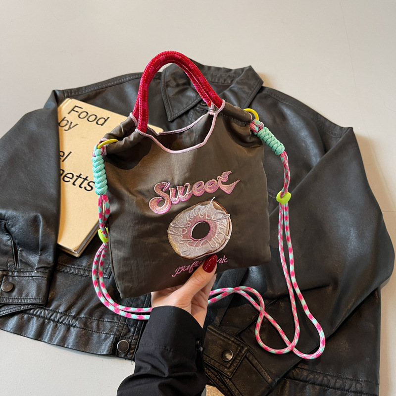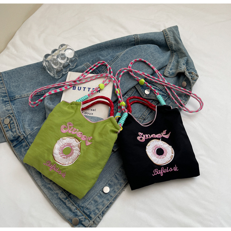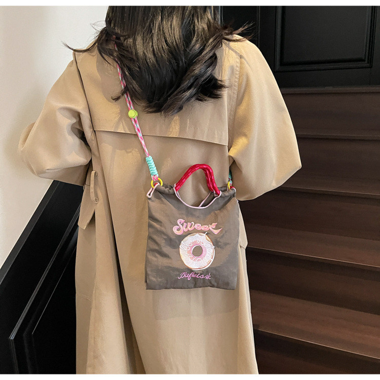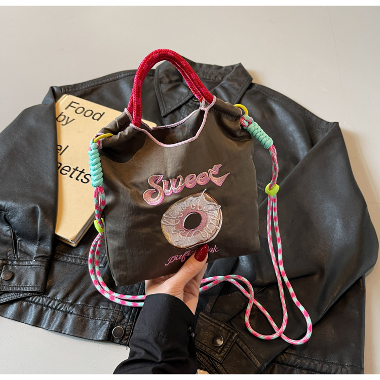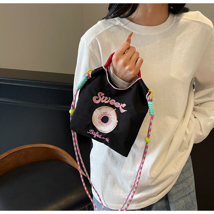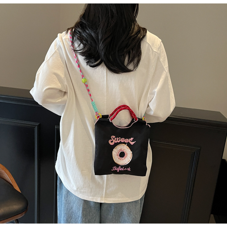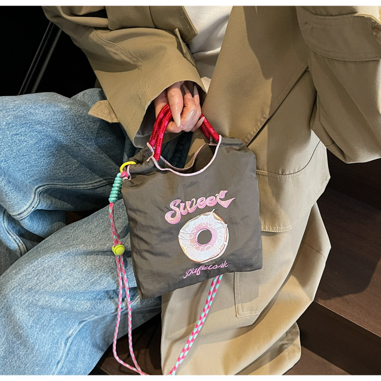 일본 스타일 Ins 수 놓은 도넛 나일론 가방 2025 새로운 패션 미니 통근 가방 어깨 크로스 바디 작은 가방