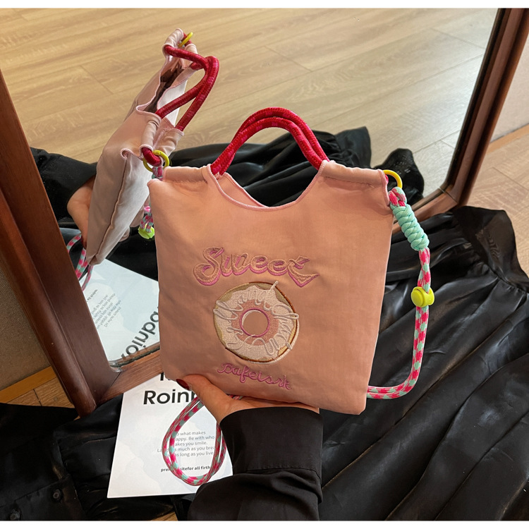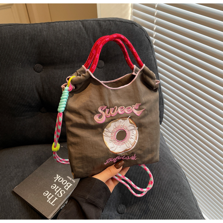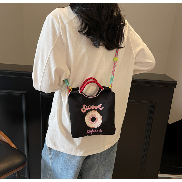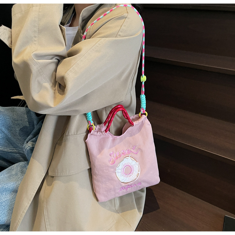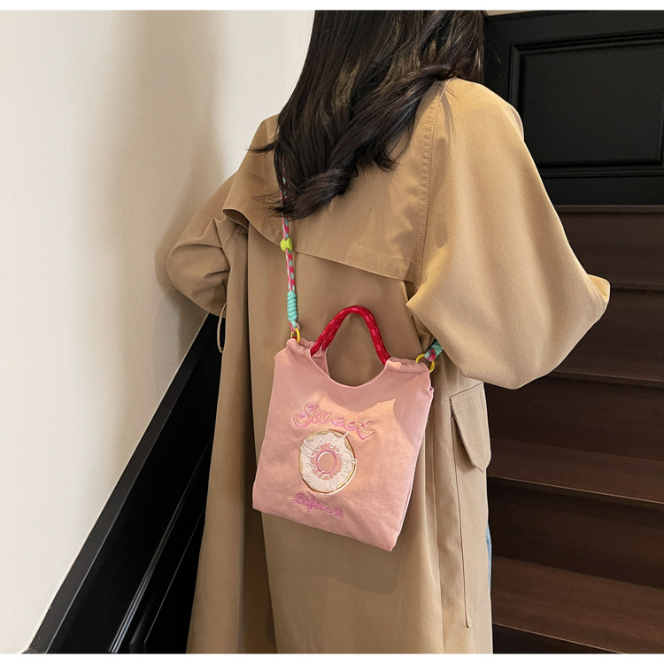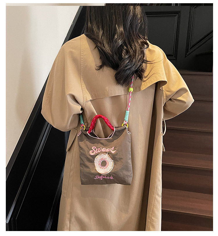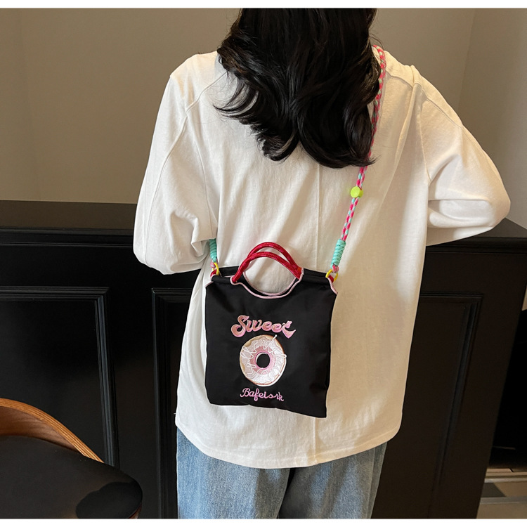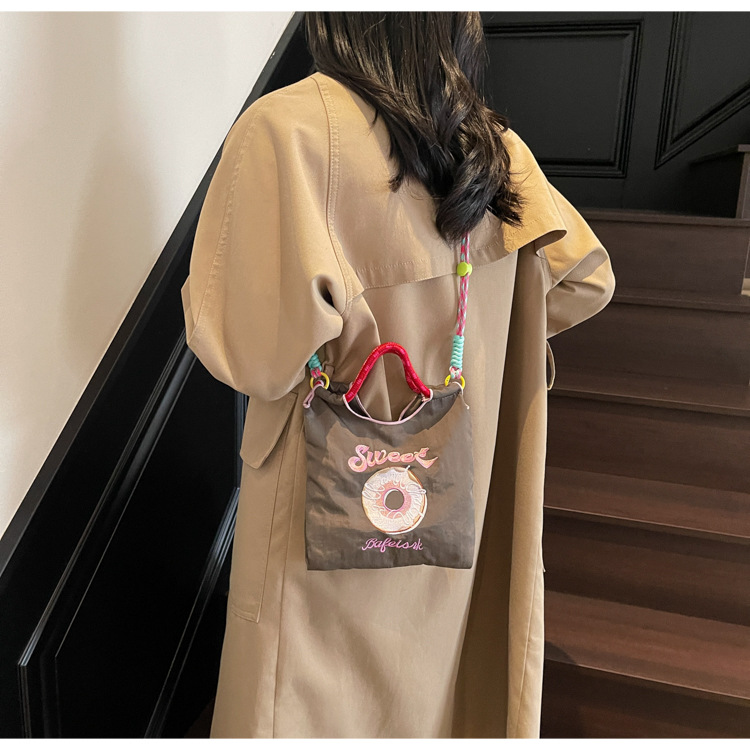 일본 스타일 Ins 수 놓은 도넛 나일론 가방 2025 새로운 패션 미니 통근 가방 어깨 크로스 바디 작은 가방