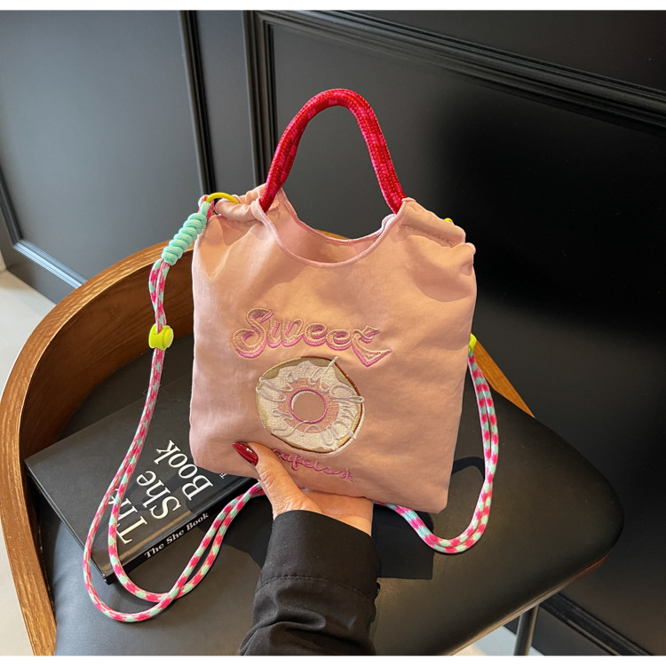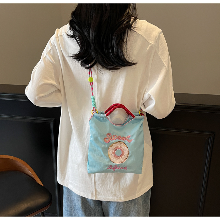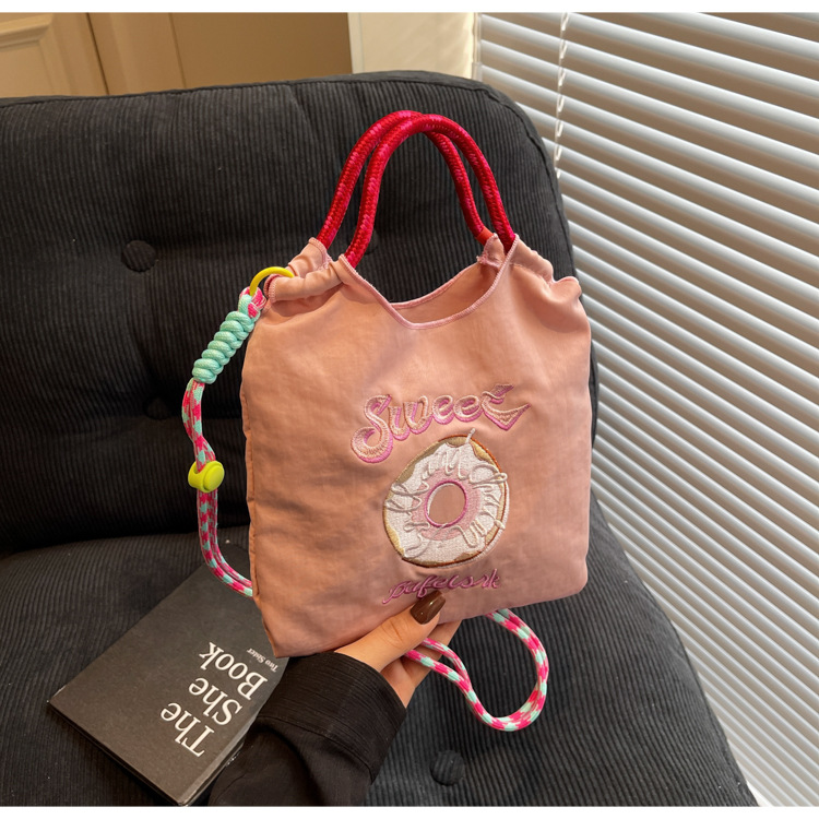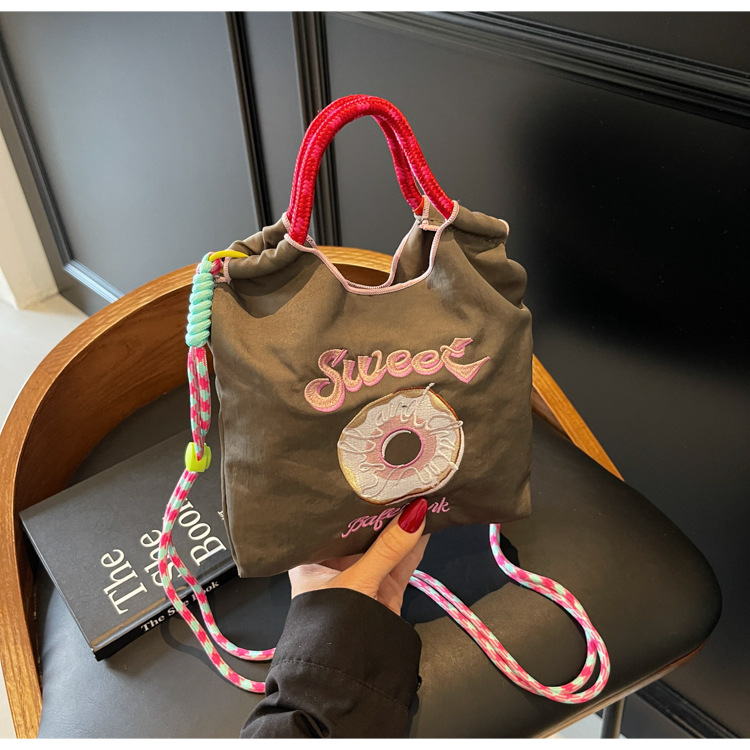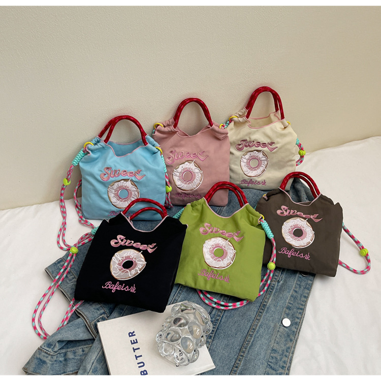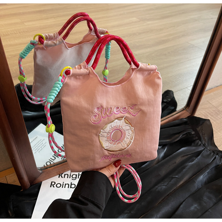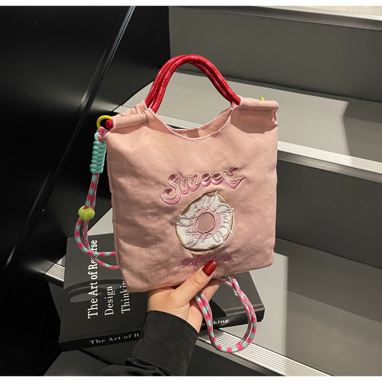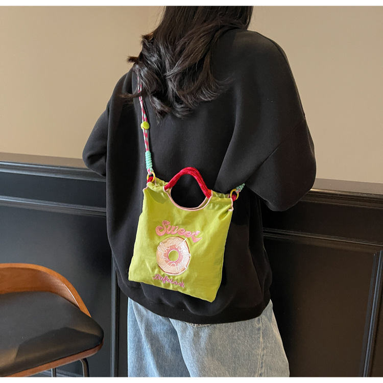 일본 스타일 Ins 수 놓은 도넛 나일론 가방 2025 새로운 패션 미니 통근 가방 어깨 크로스 바디 작은 가방