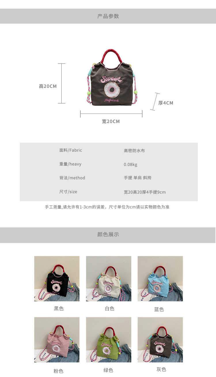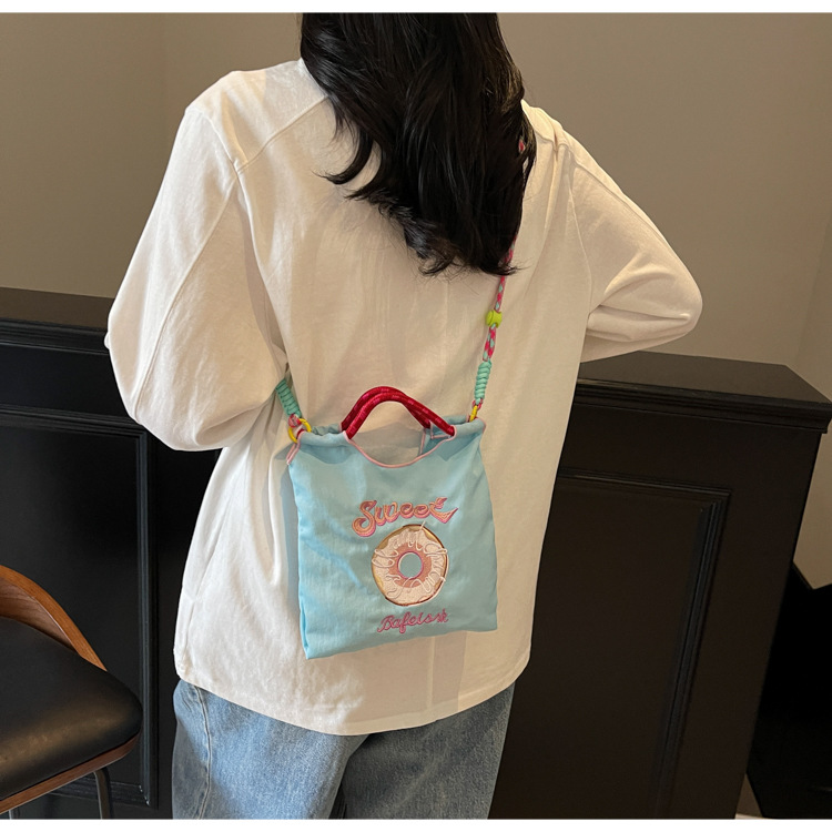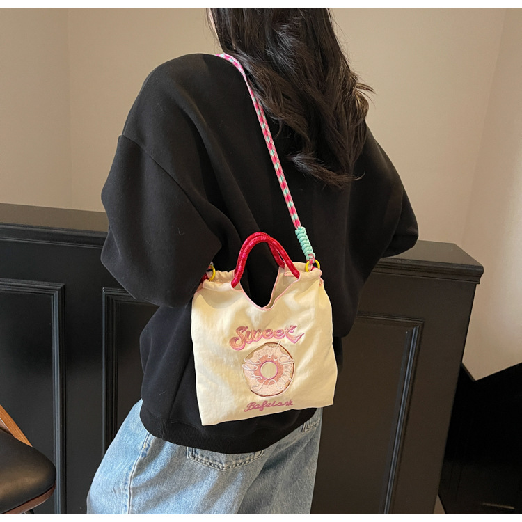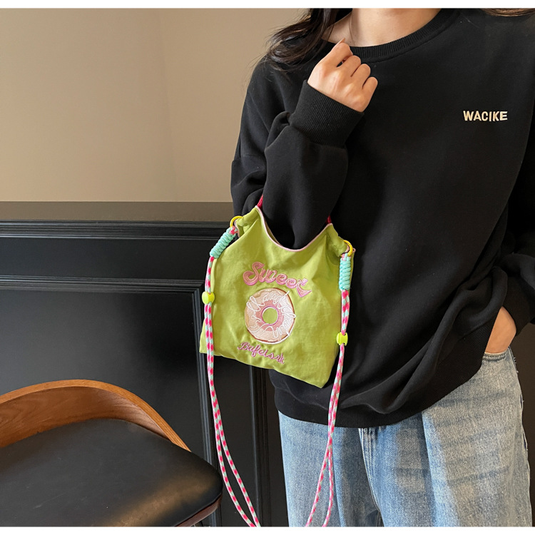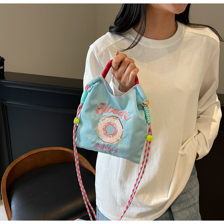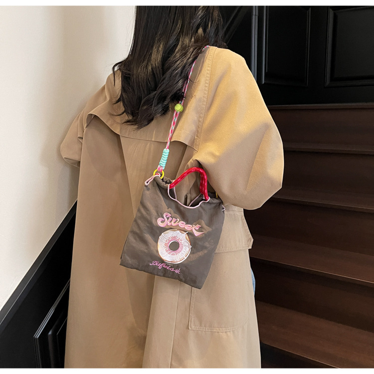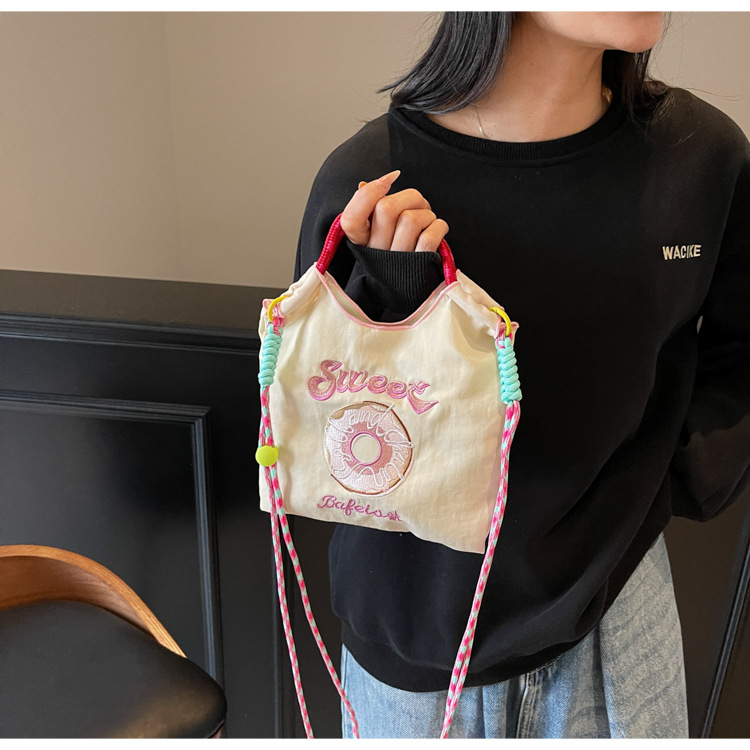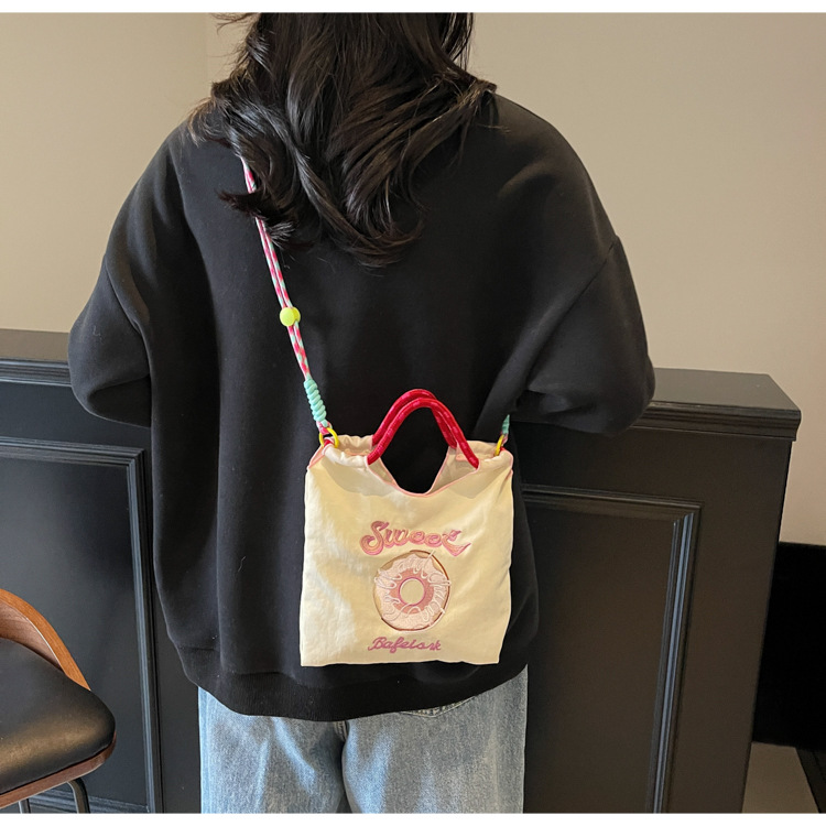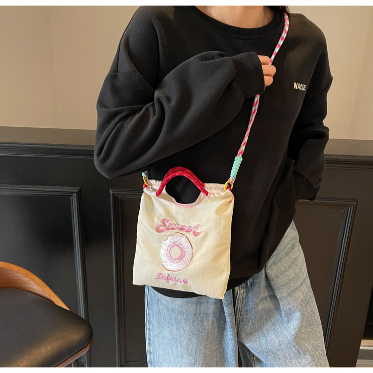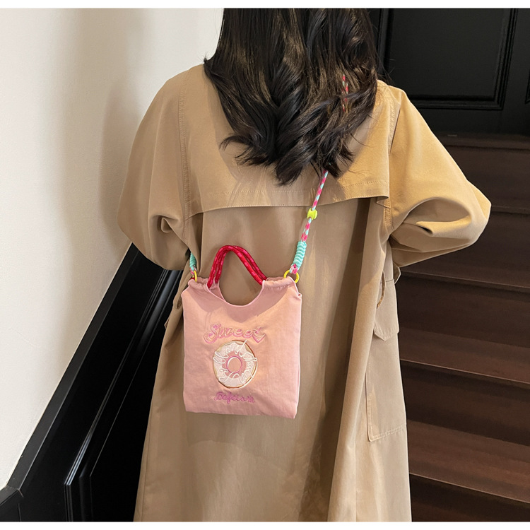 일본 스타일 Ins 수 놓은 도넛 나일론 가방 2025 새로운 패션 미니 통근 가방 어깨 크로스 바디 작은 가방스토어 가기