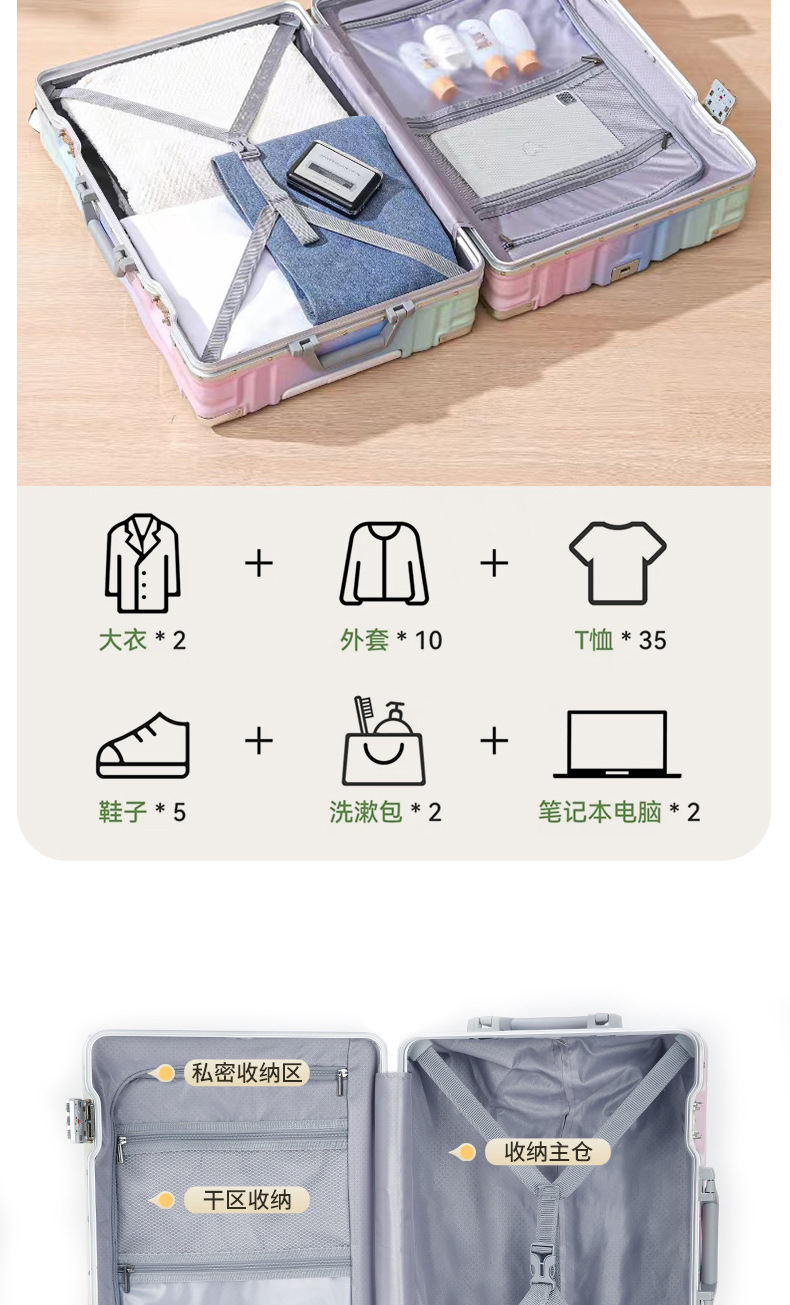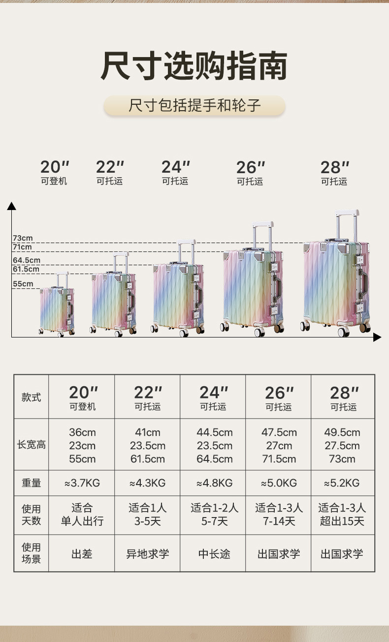 20inch 기내 반입 가능 알루미늄 프레임 신형 여행가방 대용량 24inch 트롤리 케이스 두껍고 내구성 있는 여행용 비밀번호 가방스토어 가기