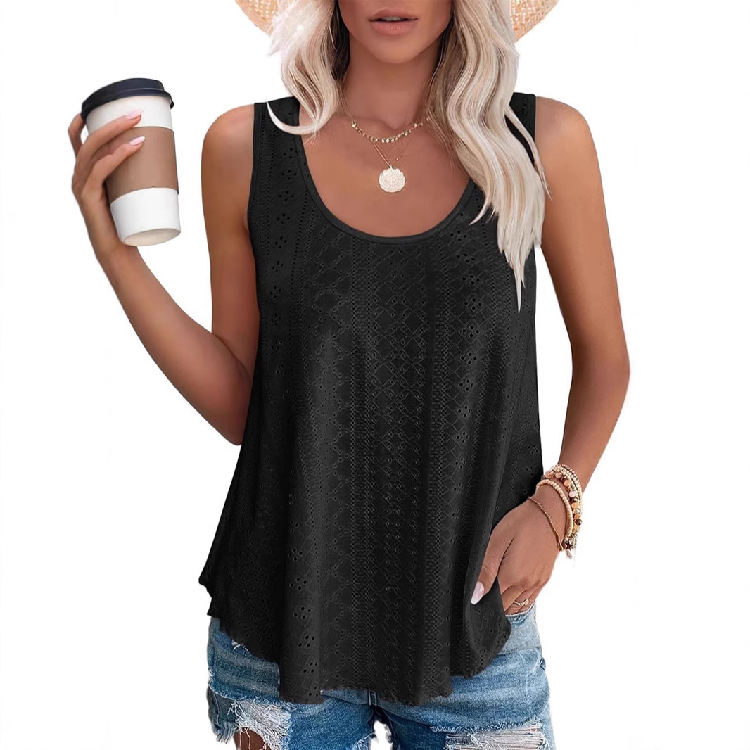 독립형 반팔 유럽 및 미국 해외 무역 2025 봄 여름 신상 라운드넥 루즈핏 민소매 여성 티셔츠 재고 있음