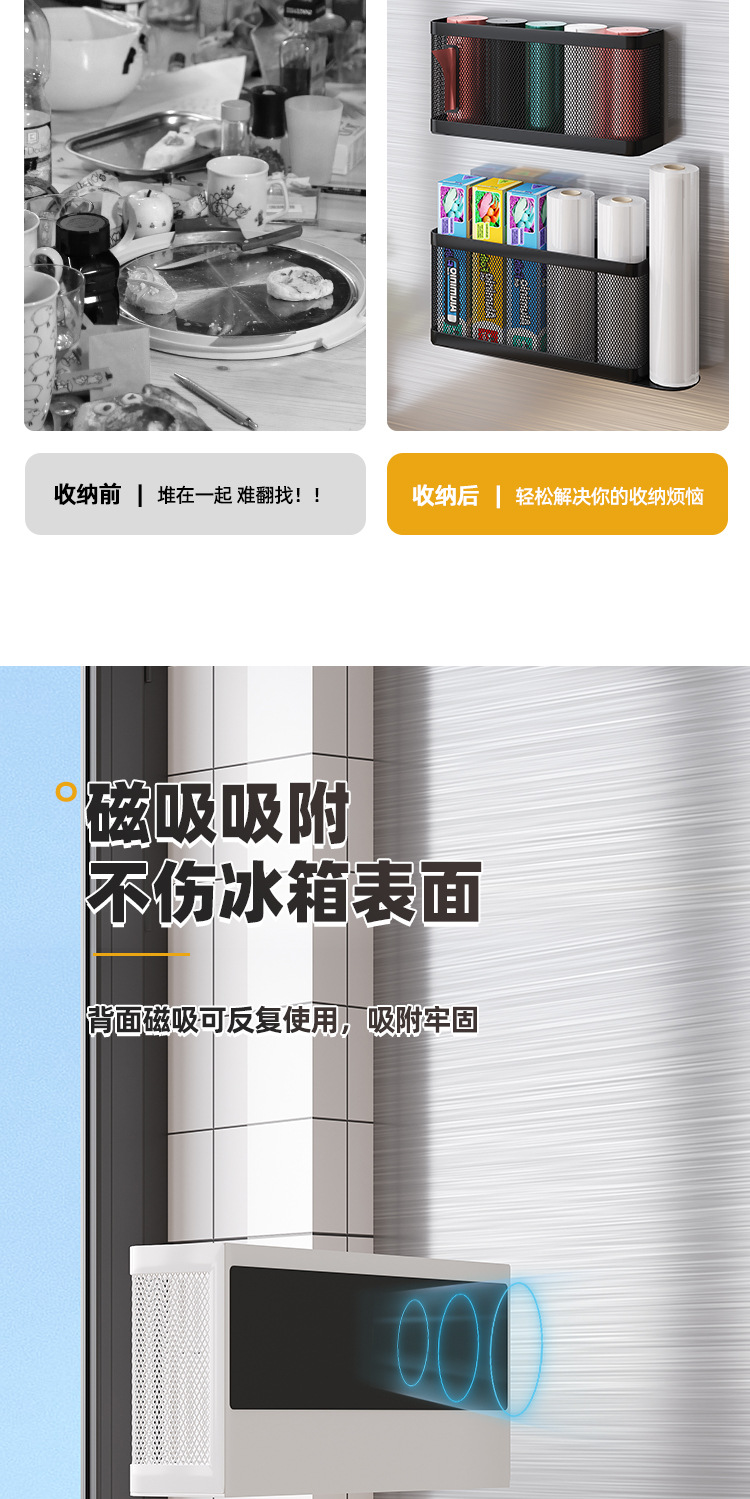 주방 자기 흡수 저장 랙 냉장고 자기 저장 상자 아티팩트 펀치 프리 필름 백 쓰레기 봉투 마무리 선반