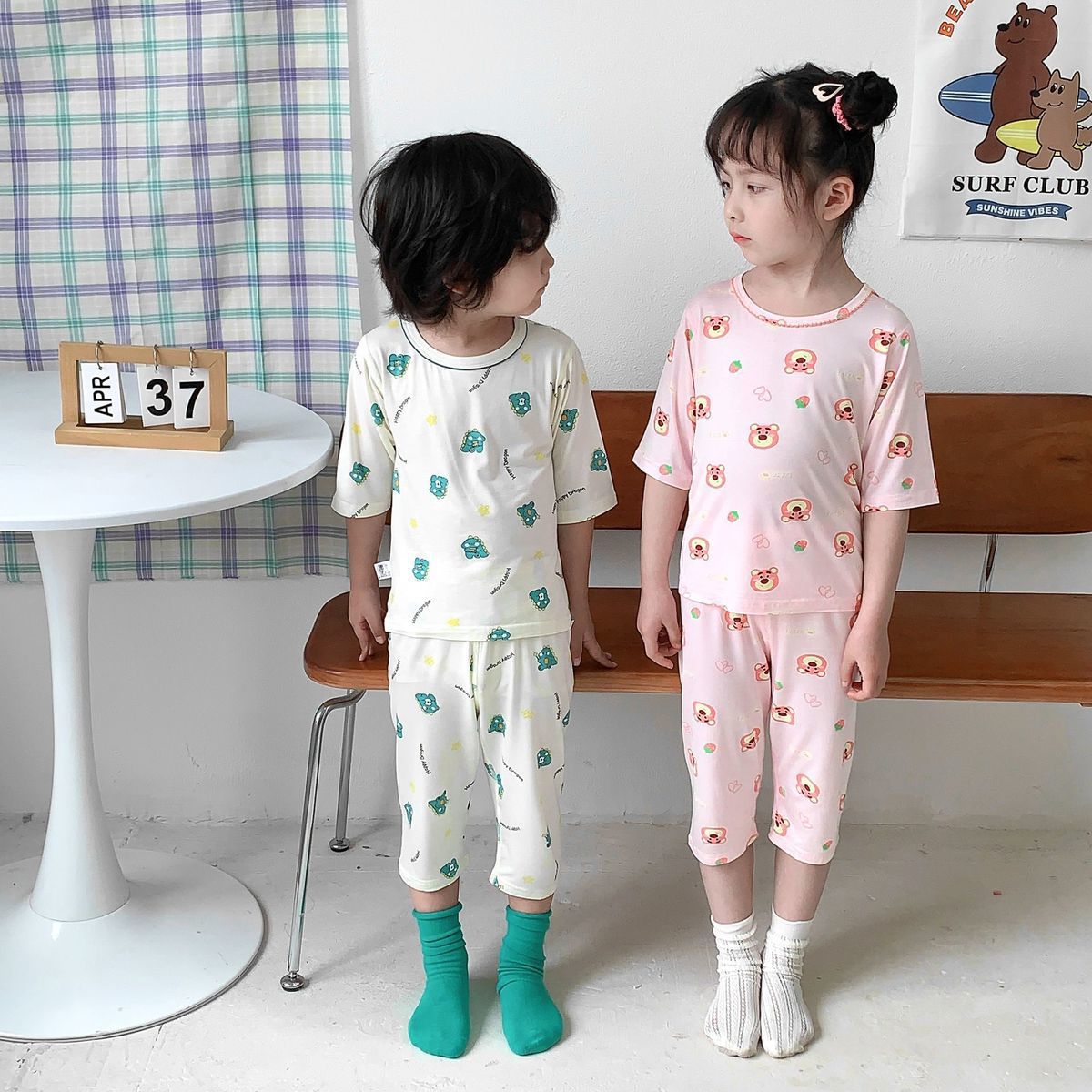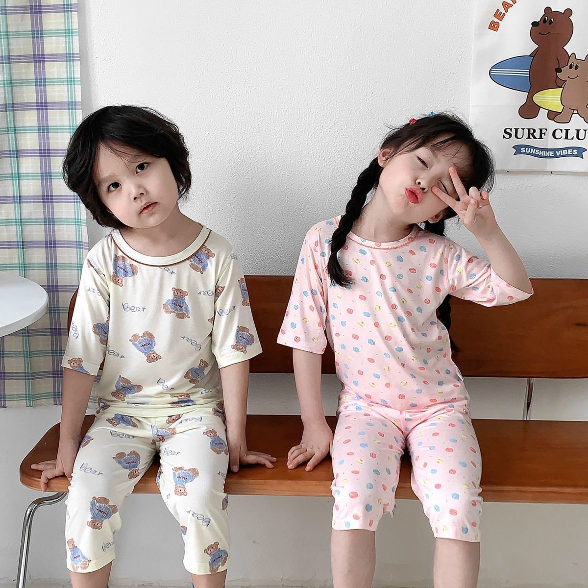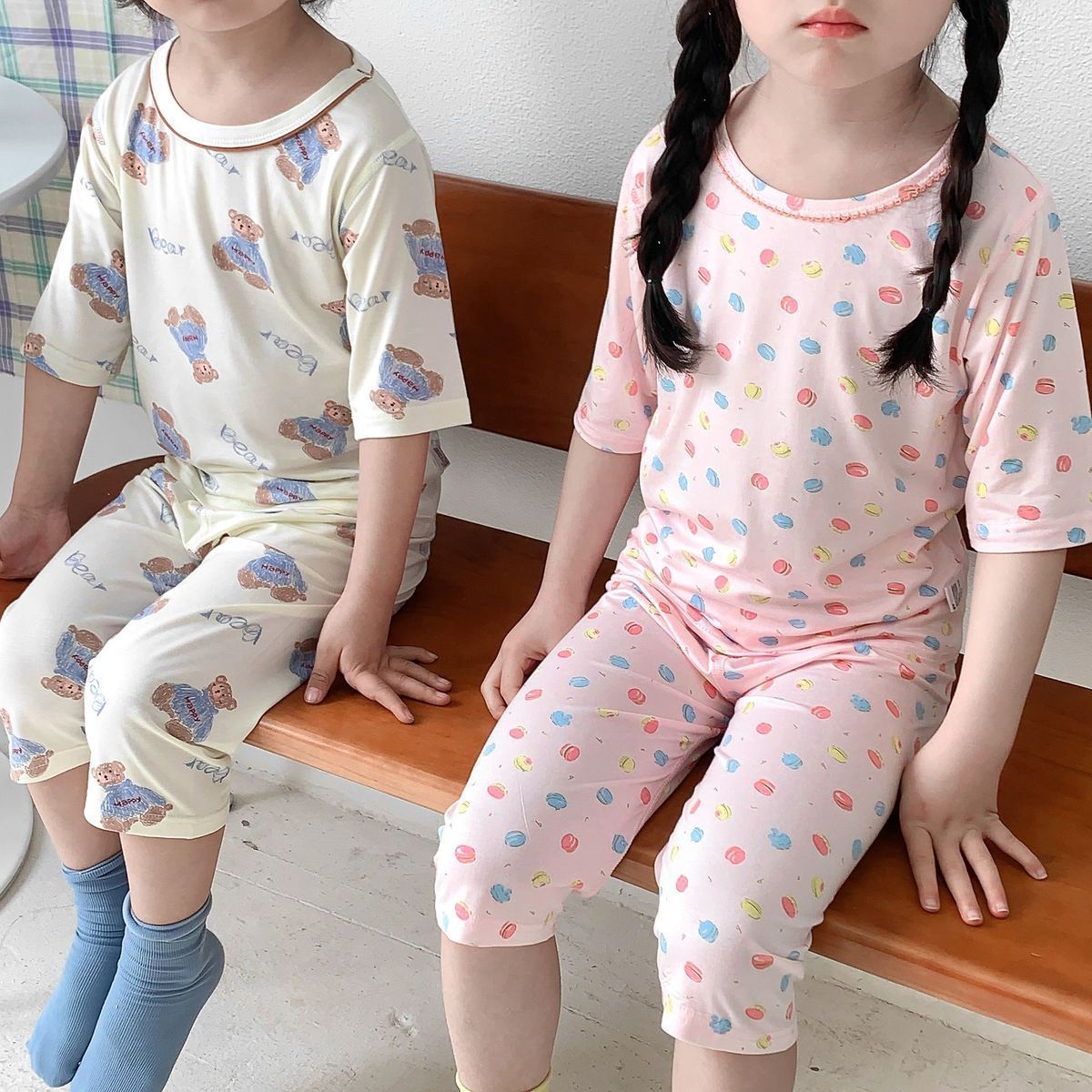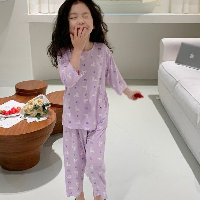 어린이 잠옷 여름 뼈없는 얇은 어린이 소년 7 점 아기 에어컨 여자 홈 의류 경량 세트스토어 가기