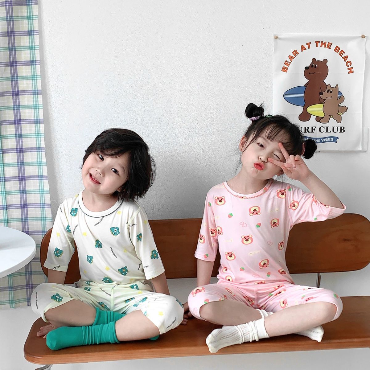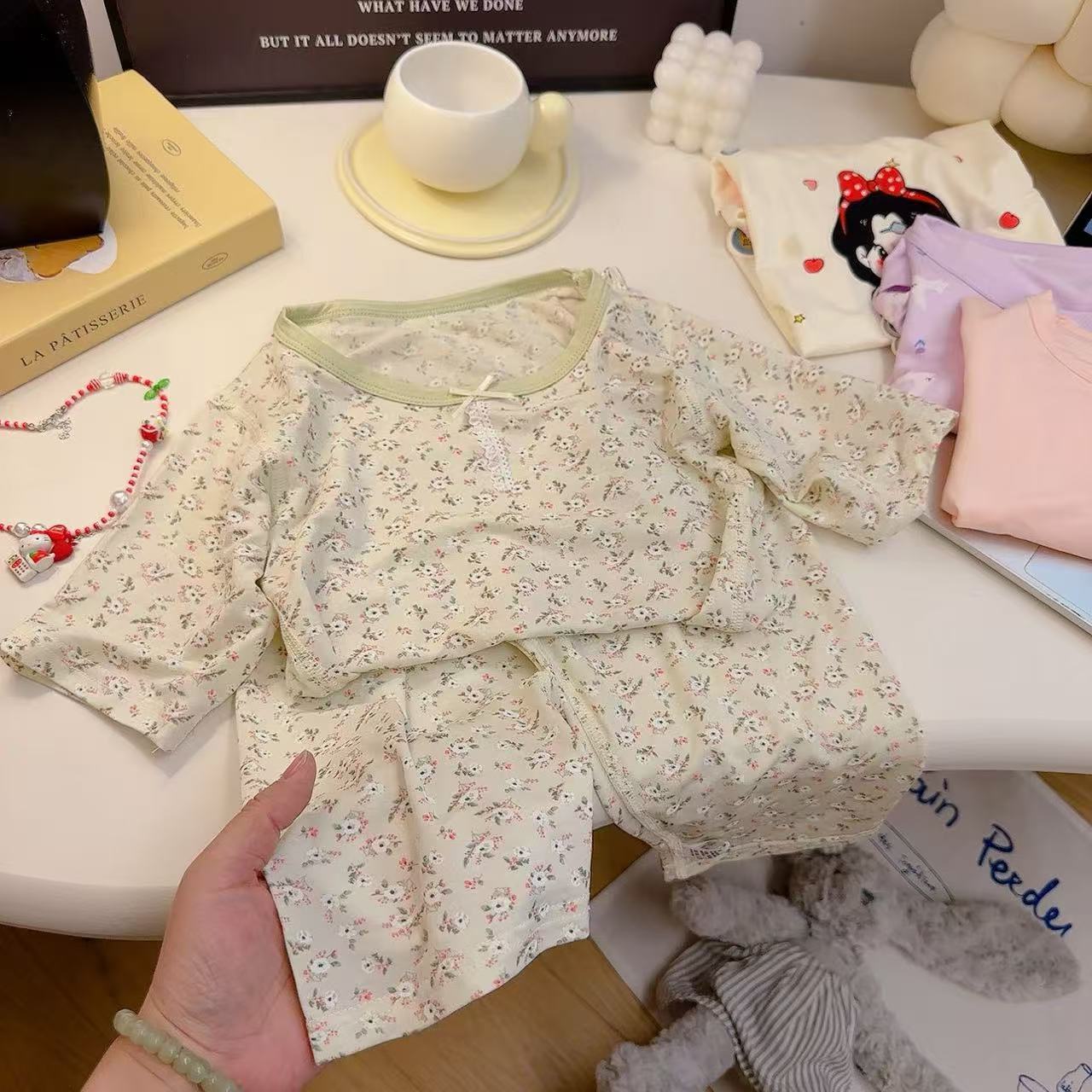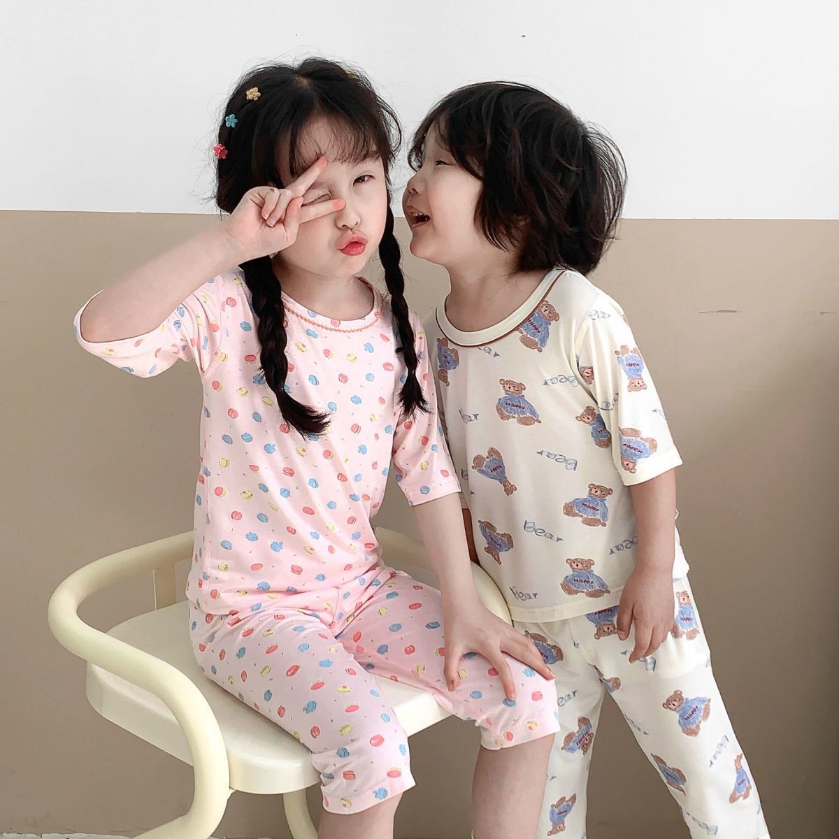 어린이 잠옷 여름 뼈없는 얇은 어린이 소년 7 점 아기 에어컨 여자 홈 의류 경량 세트스토어 가기