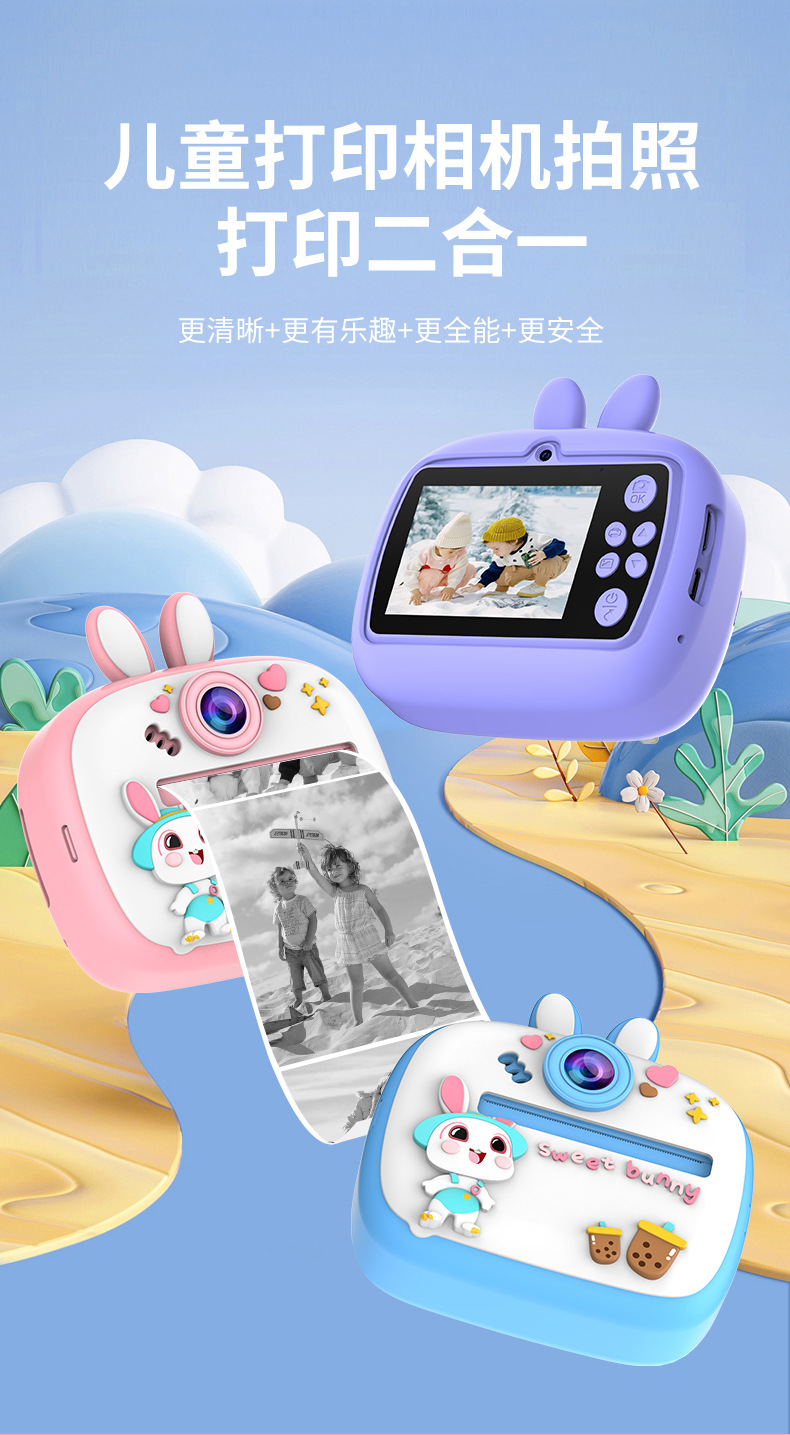 국경을 넘는 신형 어린이용 즉석 사진 인화 카메라, 고화질 듀얼 카메라, 비디오 촬영 가능, 어린이용 카메라, 공장 직판, 재고 있음