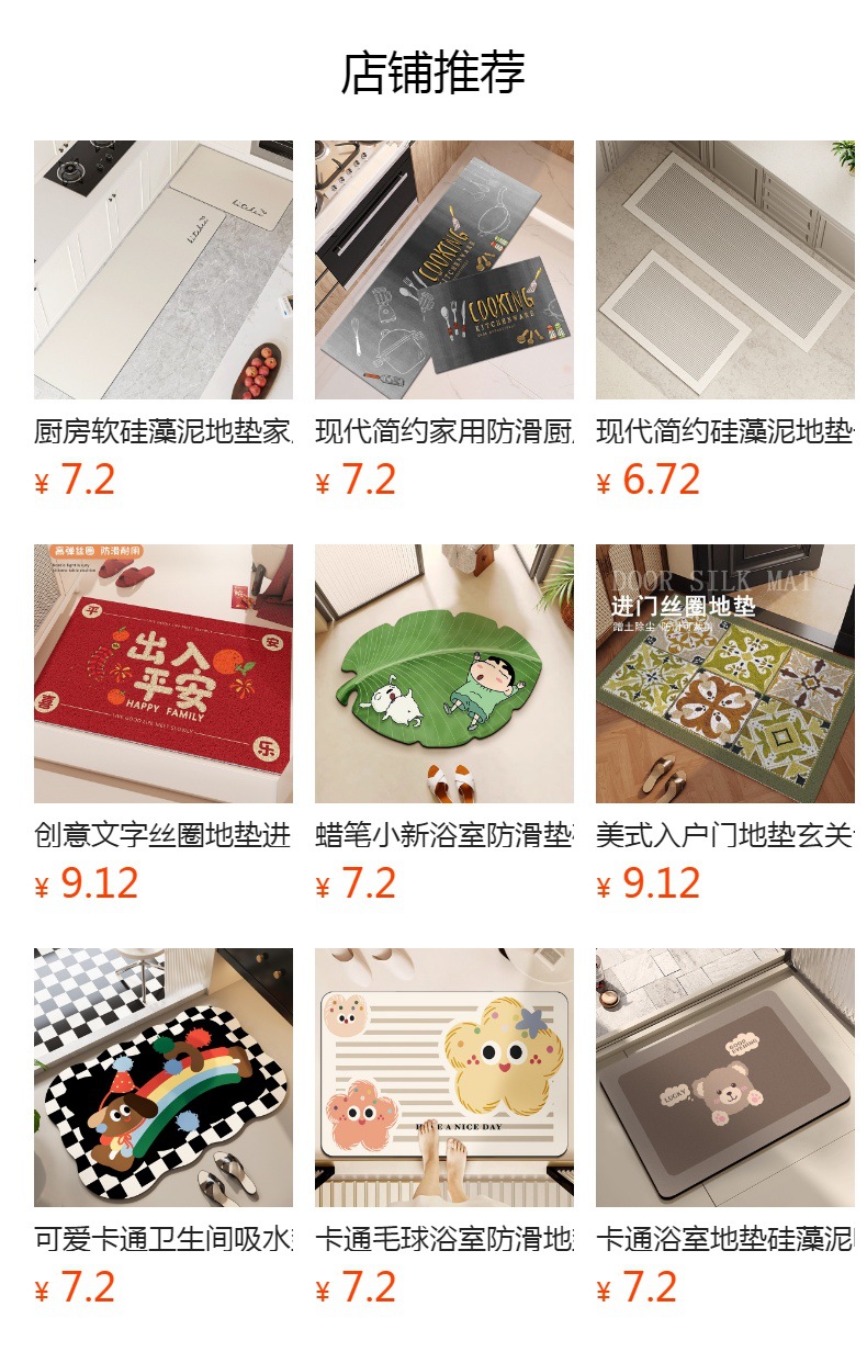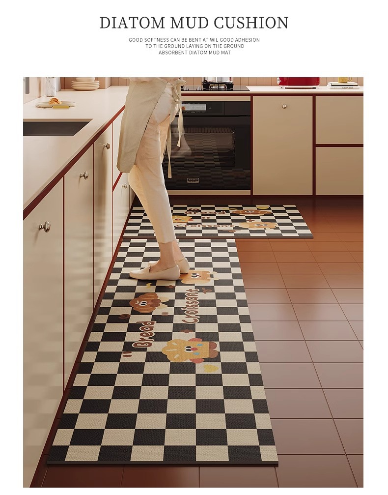 카툰 스타일 고급 규조토 바닥매트, 오염 방지 및 관리 용이, 긴 스트립형 가정용 발매트, 흡수성, 미끄럼 방지, 주방용 바닥매트스토어 가기