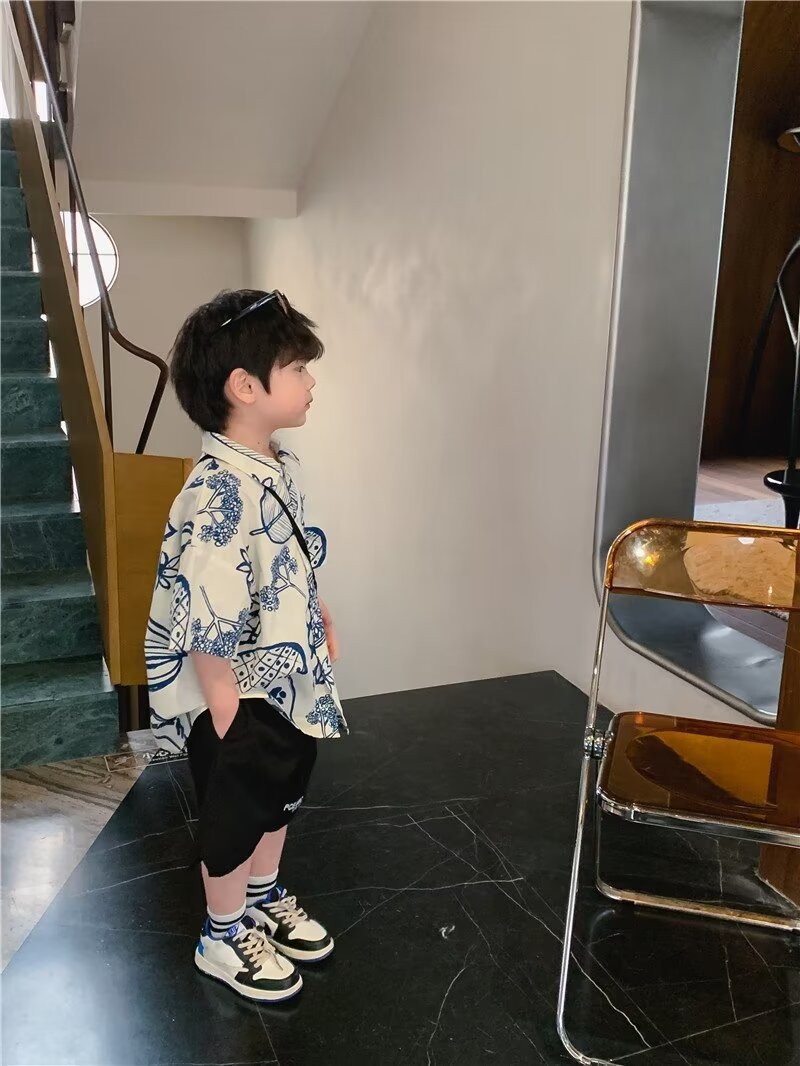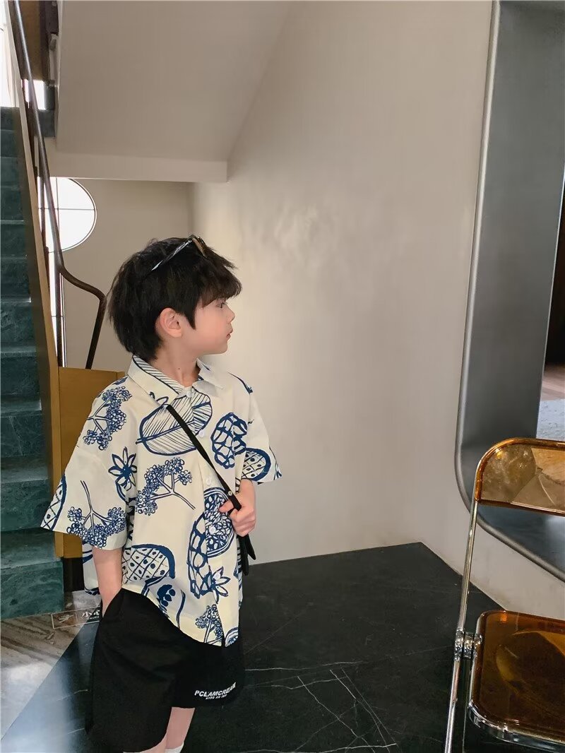 2025 여름 캐주얼 반팔 셔츠 소년 비치 꽃 셔츠 트렌디 브랜드 인치 셔츠 트렌디 다용도 루즈 셔츠스토어 가기