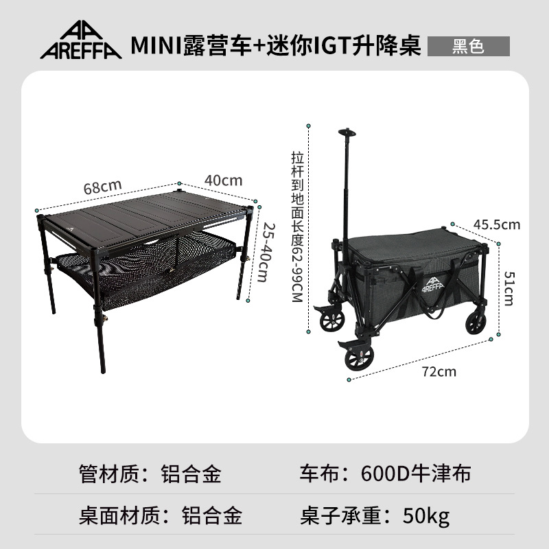 Areffa 야외 미니 캠핑카 캠핑 카트 트레일러 트롤리 경량 캠핑카 접이식 캠핑카