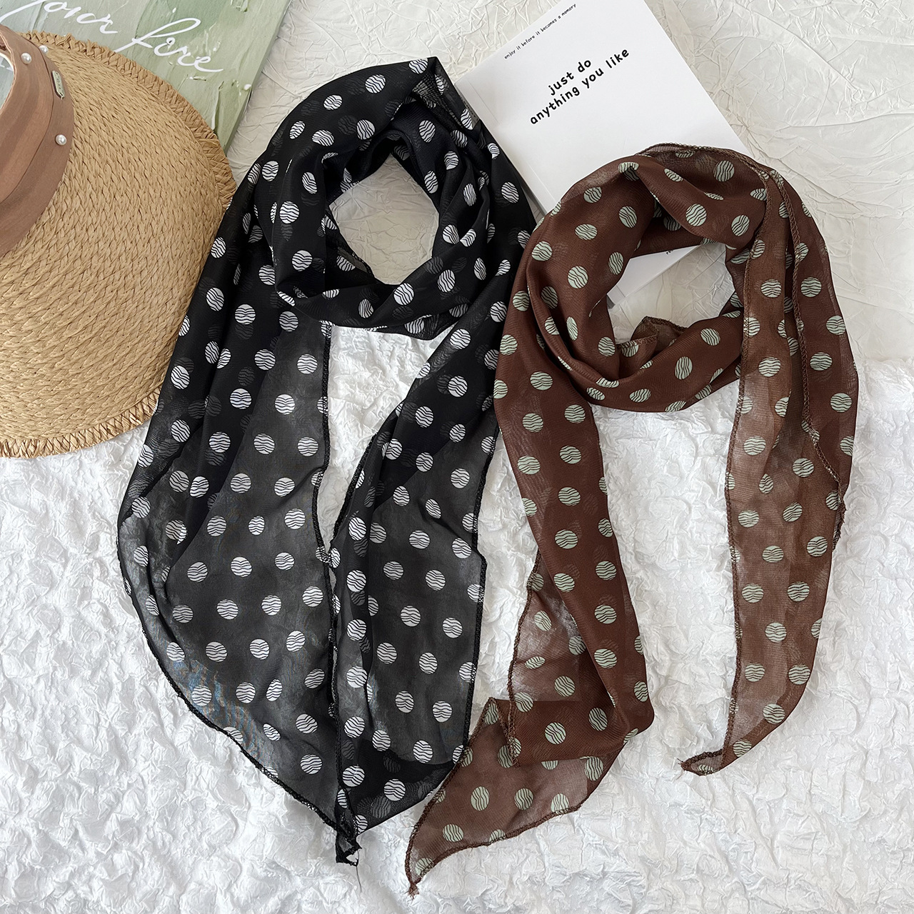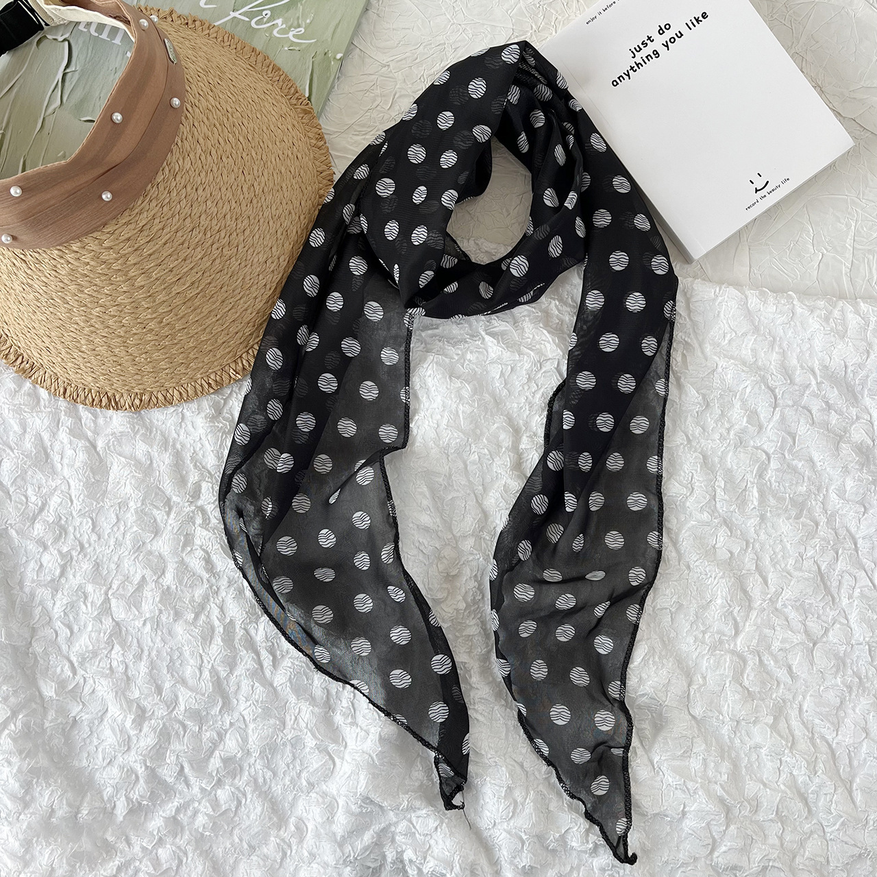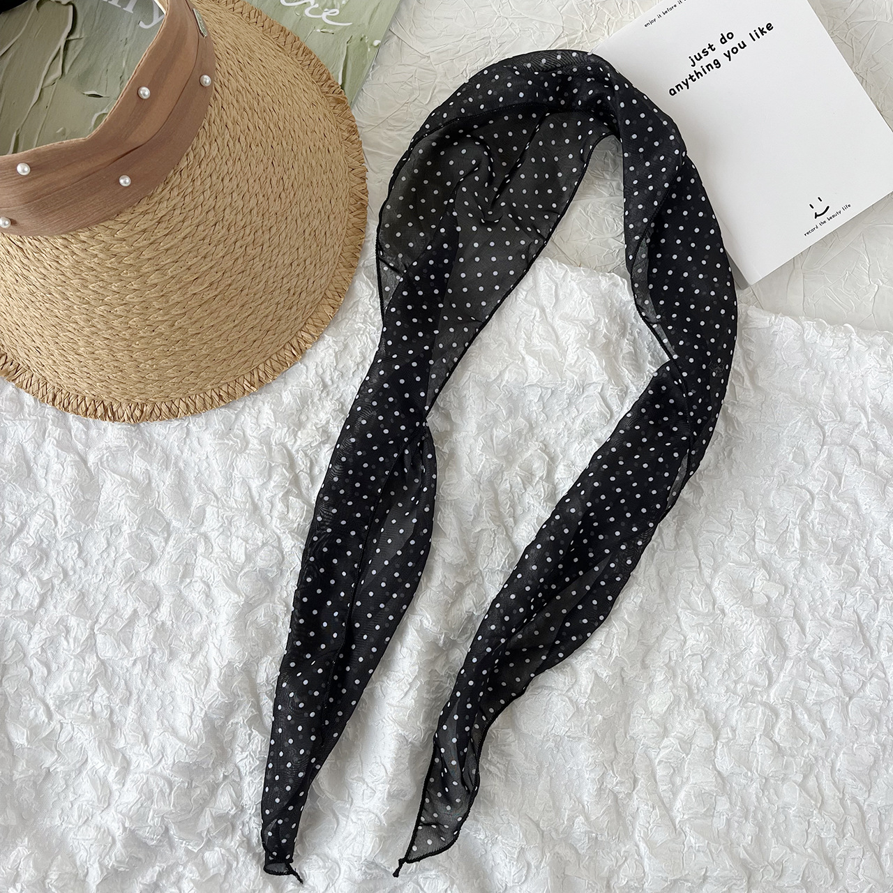패션 레트로 도트 날씬한 경량 실크 스카프 봄과 여름 하이 엔드 소녀의 올 매치 다목적 긴 작은 스카프