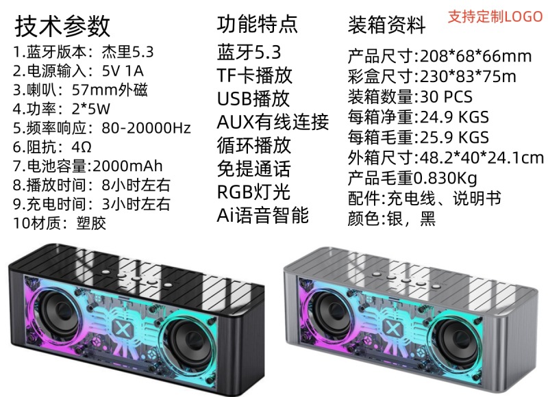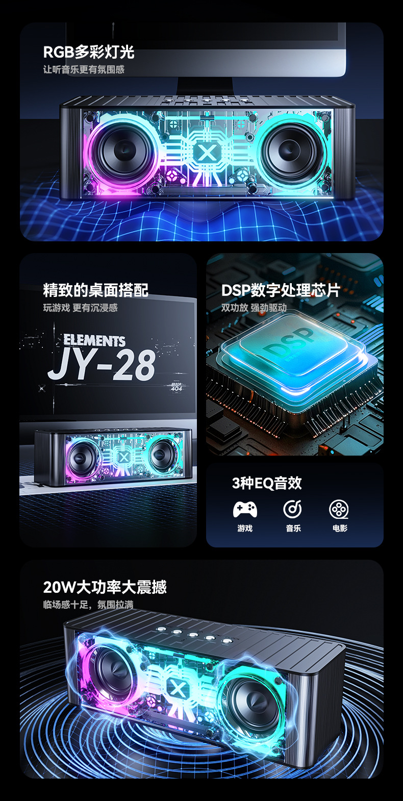 2025 국경 JY28pro 블루투스 스피커 서브 우퍼 RGB 빛 서브 우퍼 높은 음질 블루투스 오디오 높은 색상 값