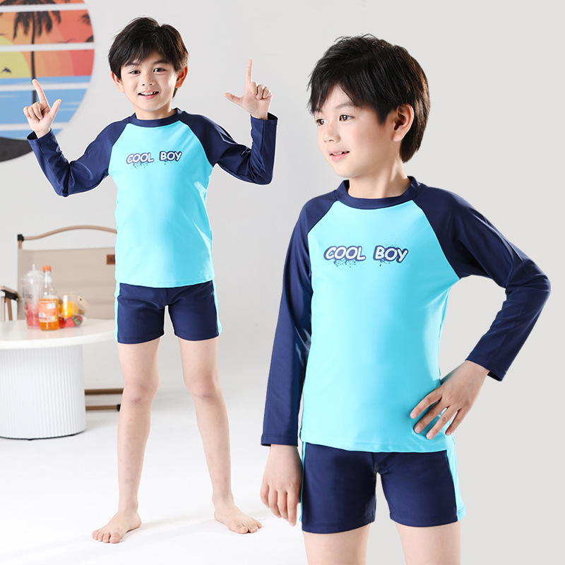 아동 수영복 속건성 스플릿 소년 수영복 긴팔 2025 새로운 수영 소년 수영복 중대형 어린이를위한 수영복스토어 가기