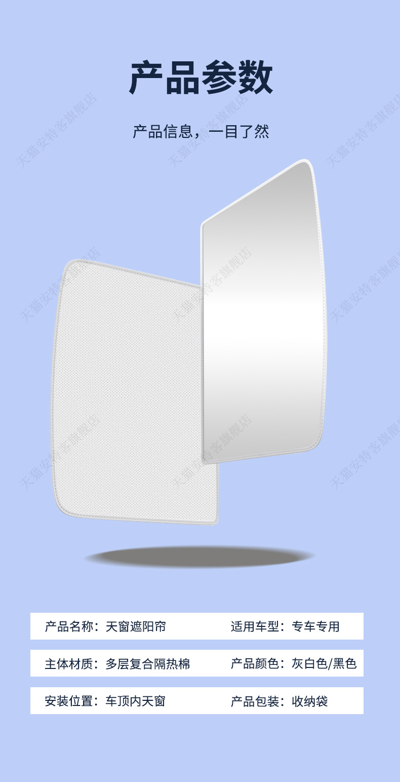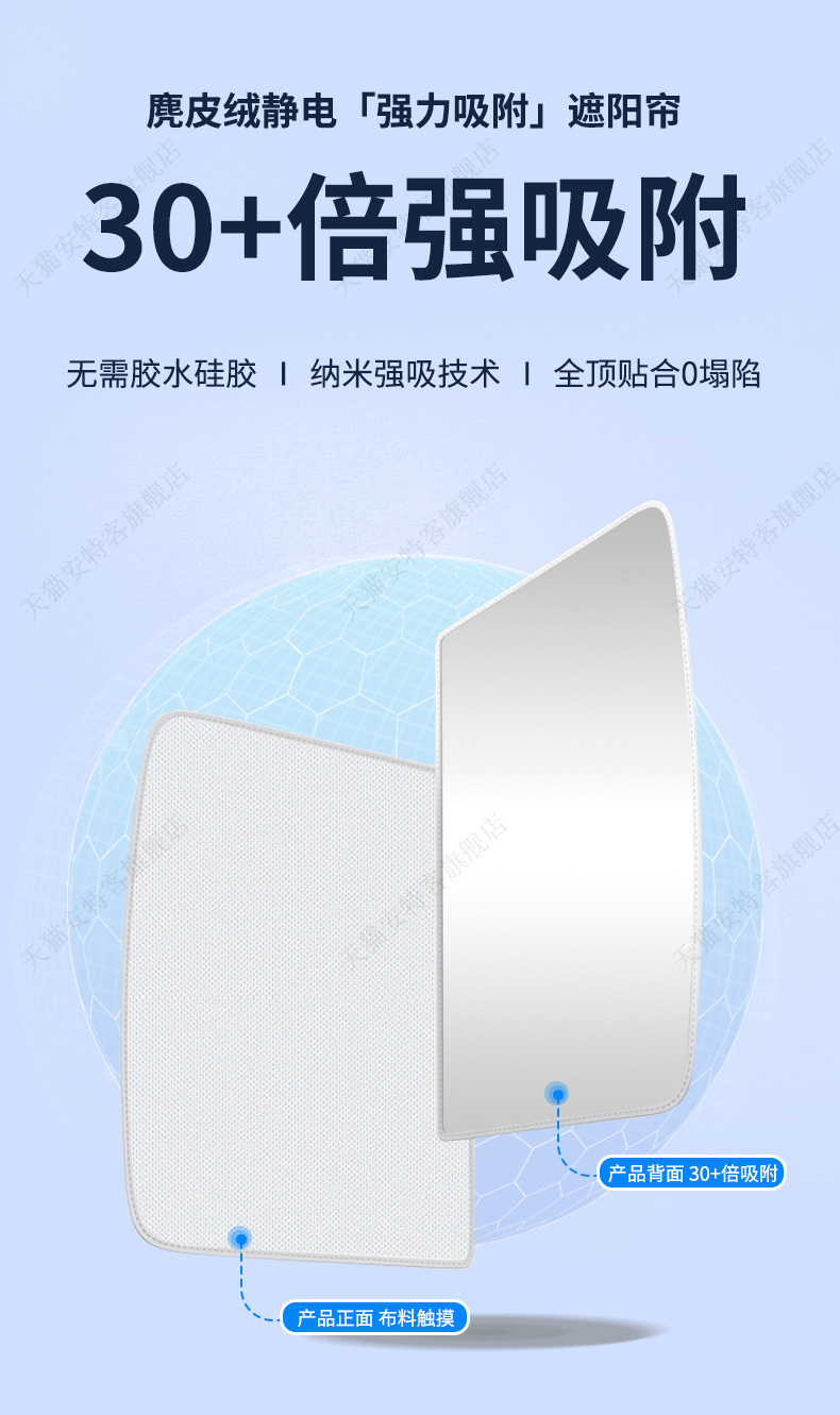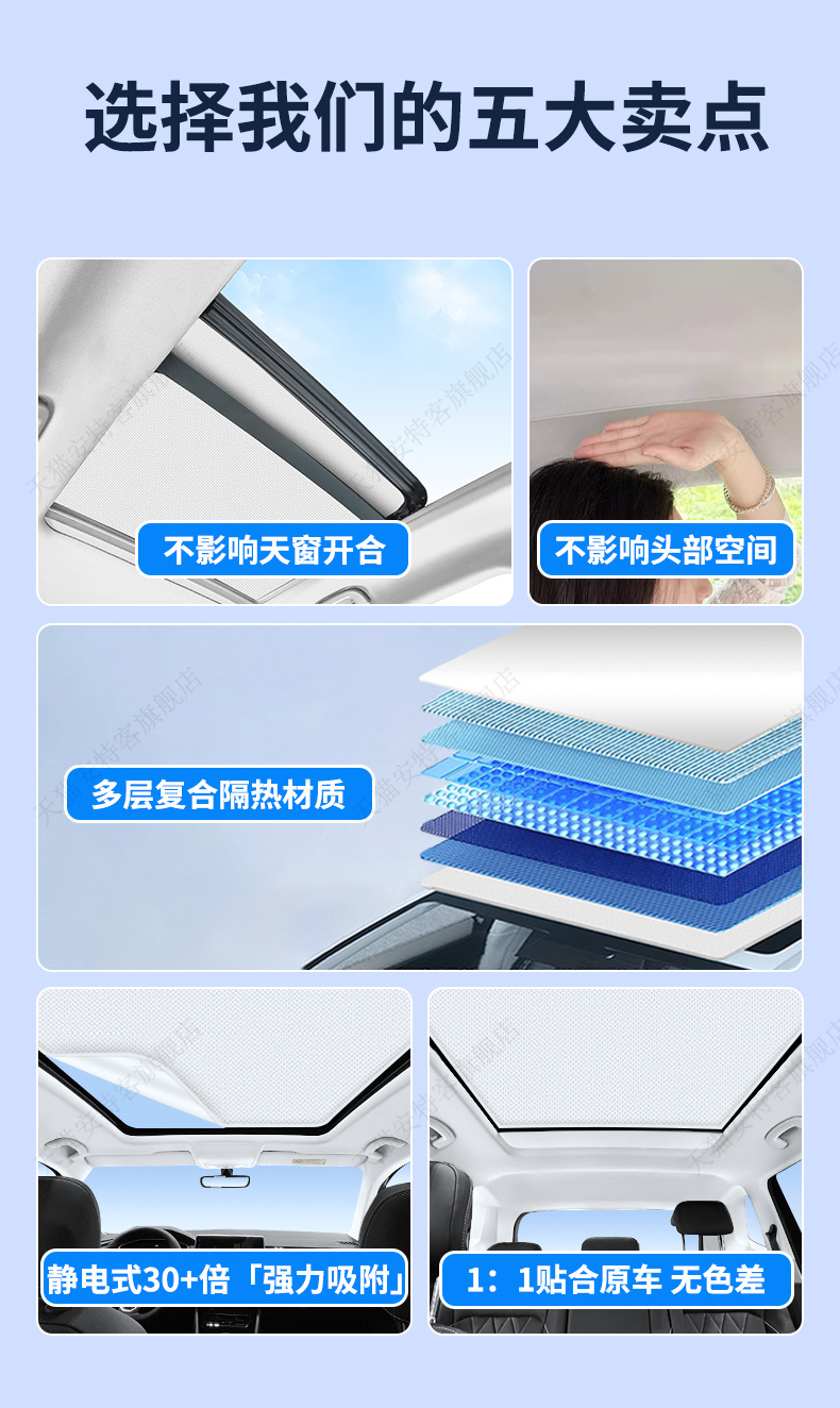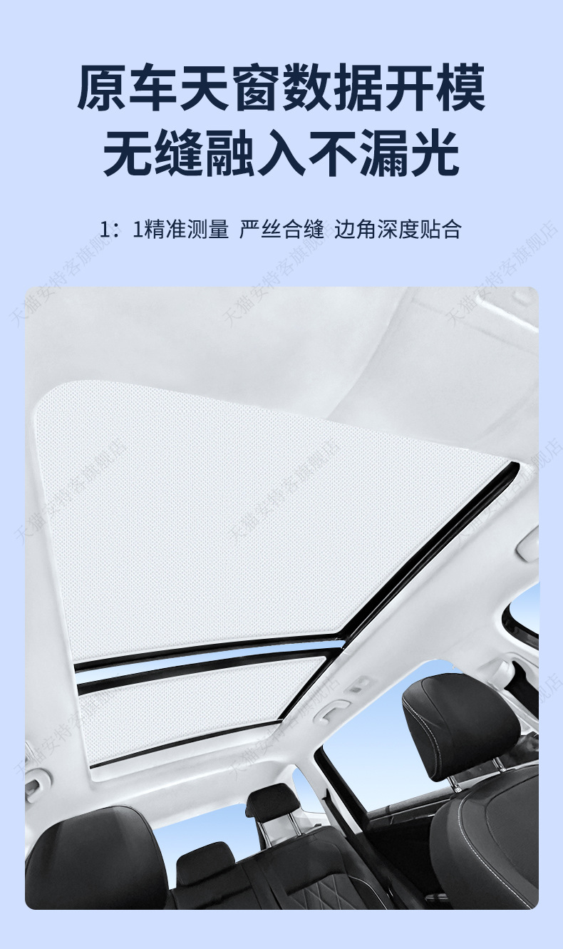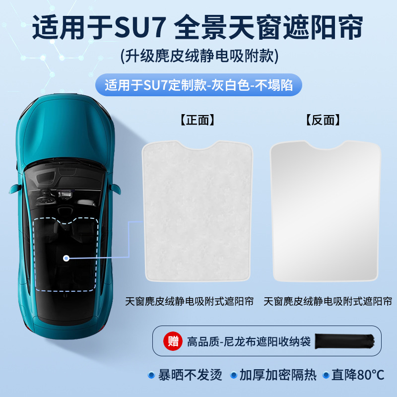 SU7 스웨이드 선루프에 적합 정전기 흡착 차양 지붕 태양 보호 단열 차양 캐노피 차양