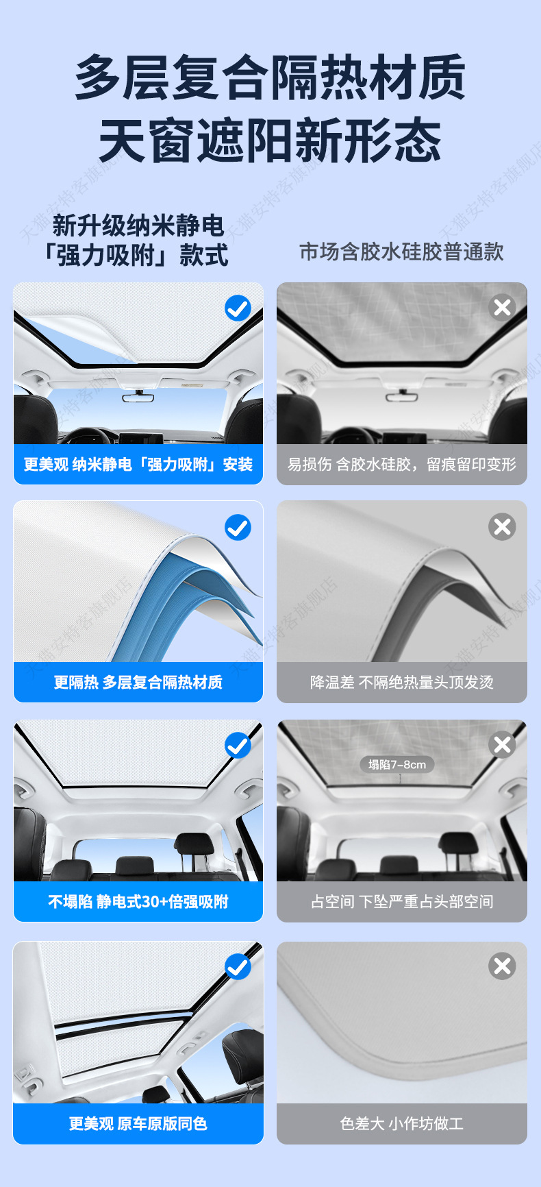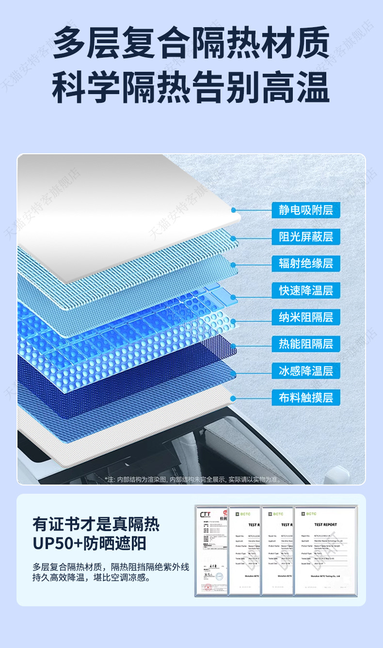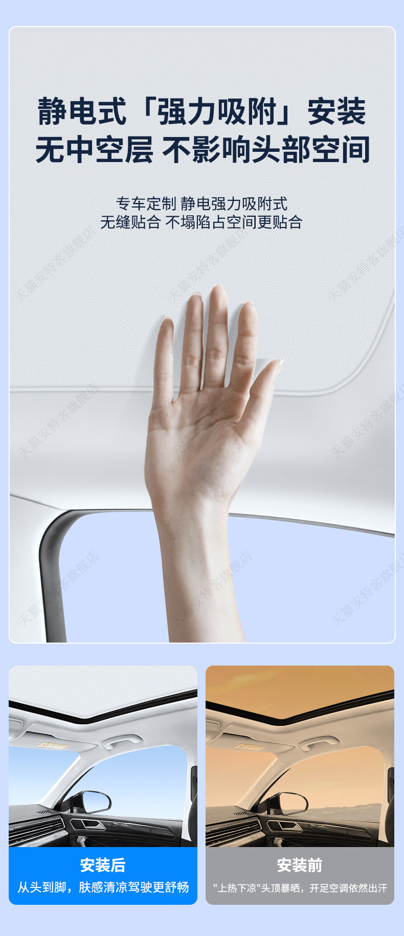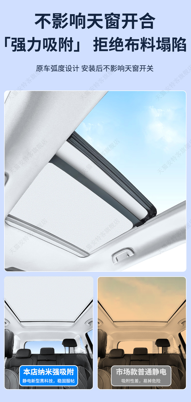 SU7 스웨이드 선루프에 적합 정전기 흡착 차양 지붕 태양 보호 단열 차양 캐노피 차양