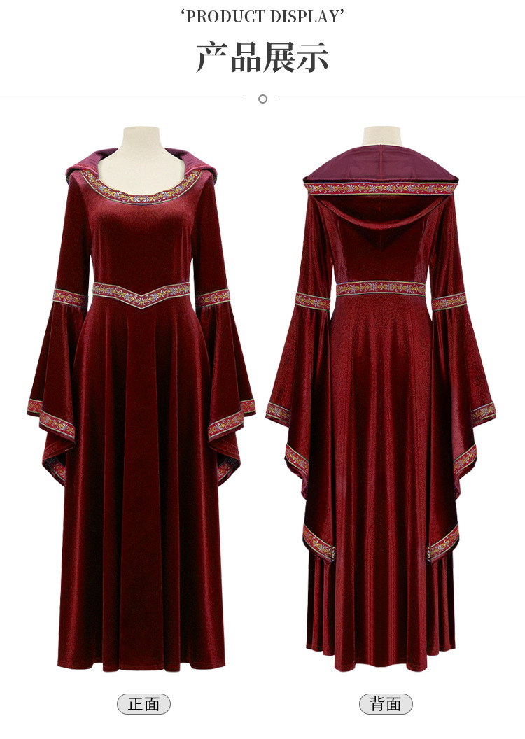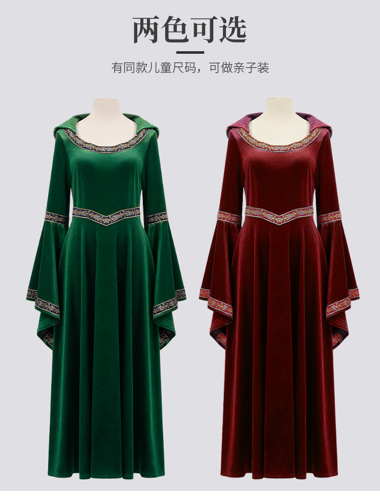중세 의상 빅토리아 의상 코트 마녀 예술적 녹색 빈티지 버건디 원피스