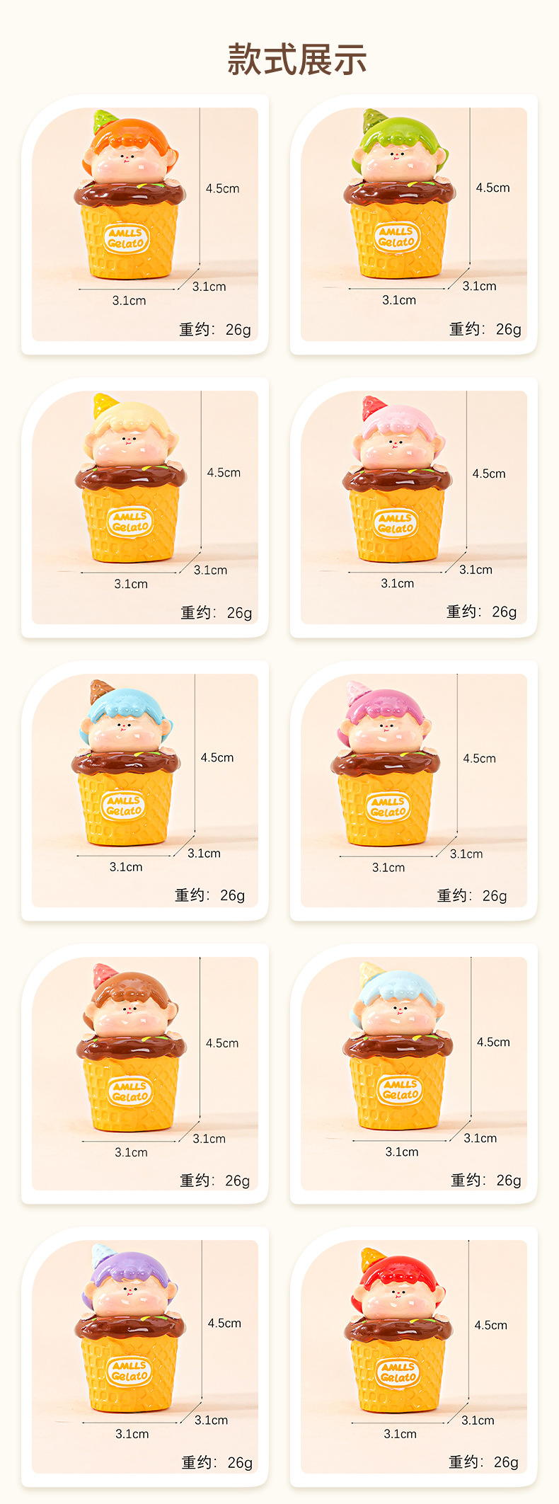 아이스크림 아기 귀여운 인형 수지 공예 데스크탑 작은 장식품 거실 장식 작은 장식품 라이브 블라인드 가방스토어 가기